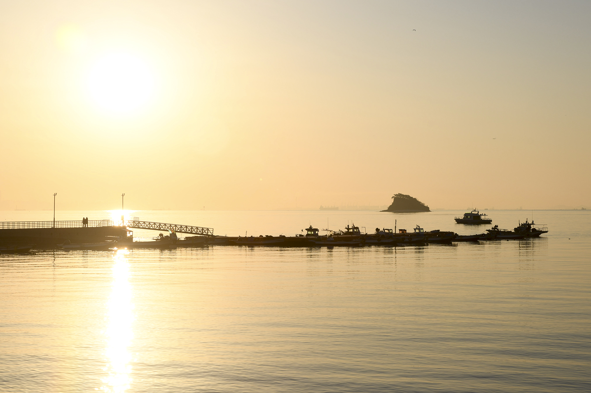 매도랑의 일출 촬영은 보통 영종도의 거잠포선착장에서 이루어진다.