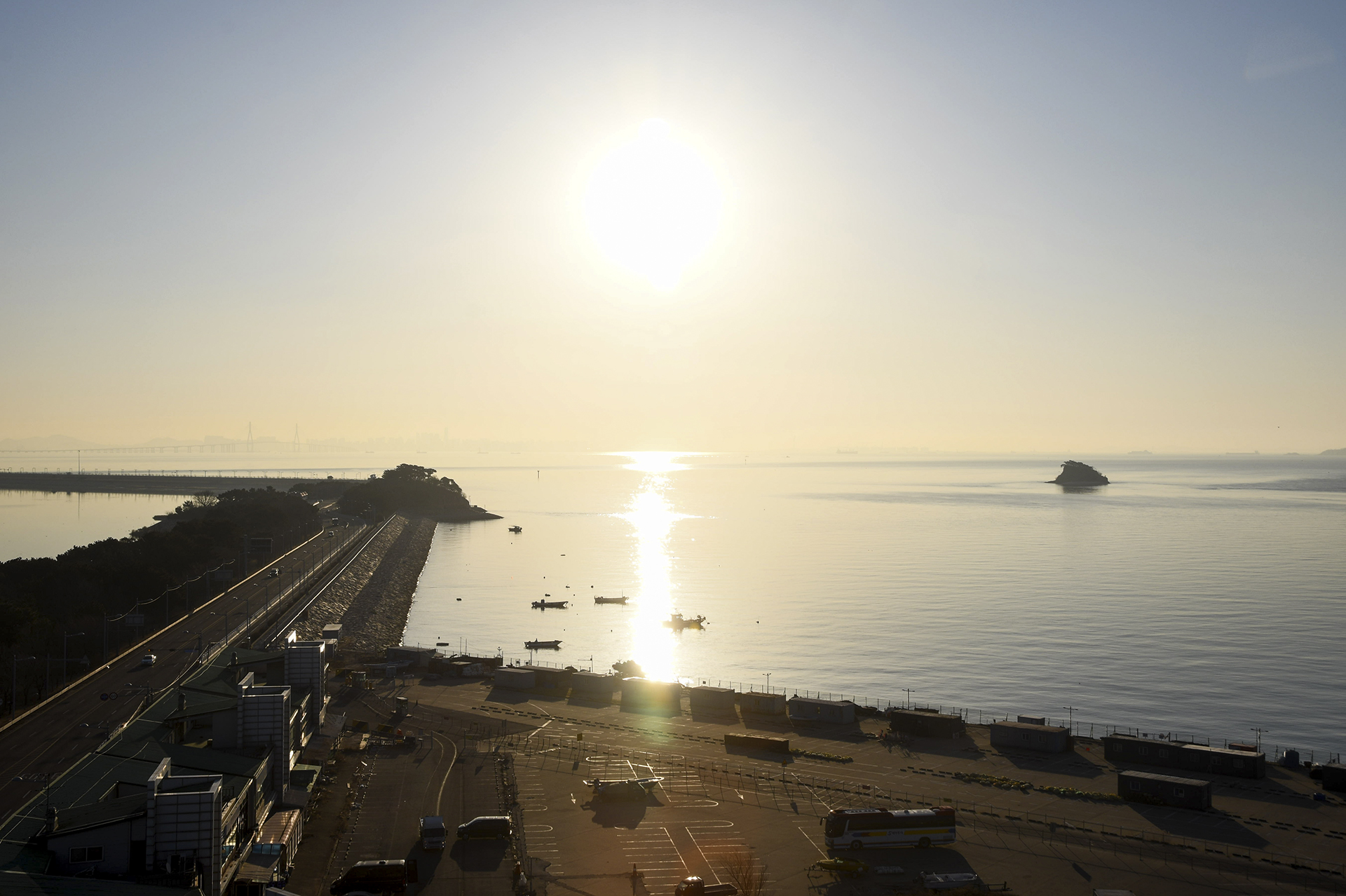 인천대교의 모습도 보이는데, 바다 위로 연무가 낀듯하다.