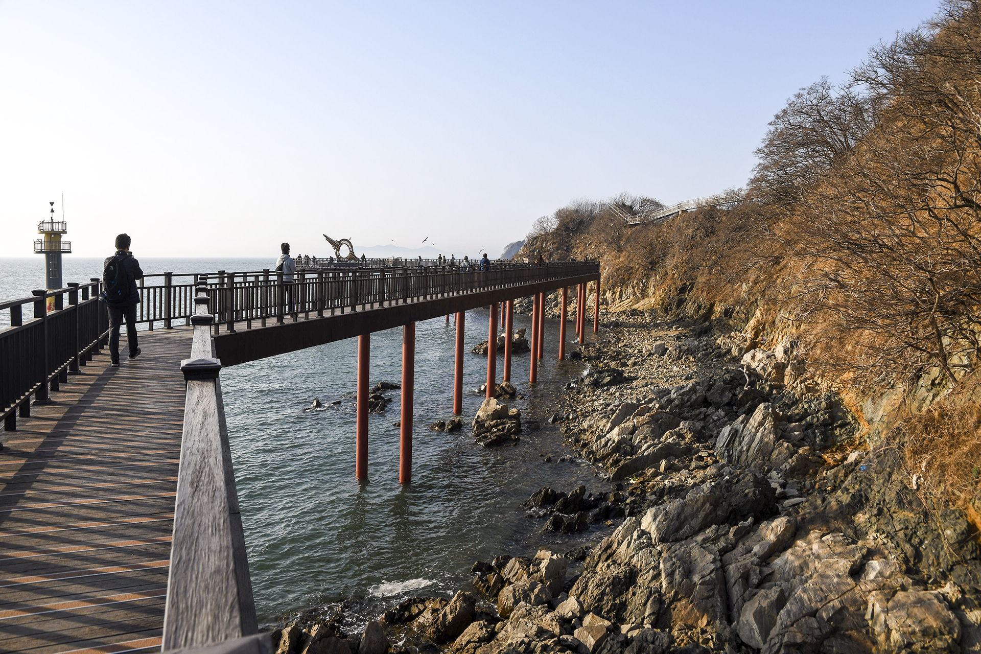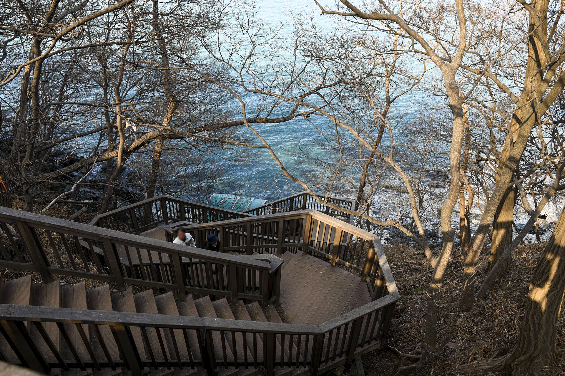 바람막이 하나 걸친 상태지만 앉아서 기다리자니 바닷바람에 추워지기 시작해 데크길을 왔다 갔다 해야만 했다.