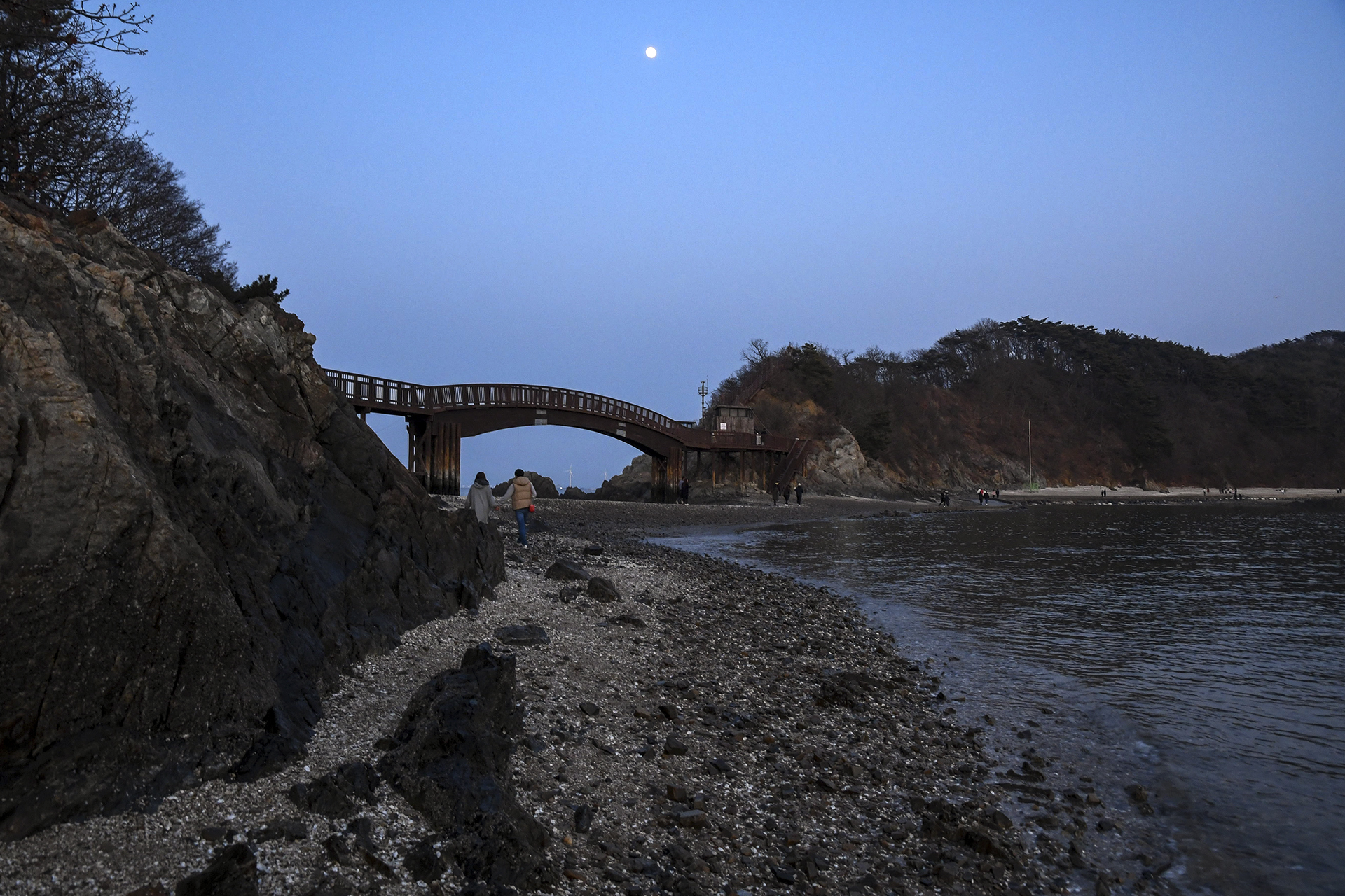 다시 개미허리 인도교에 도착, 하늘에는 둥근 달이 대신하고,