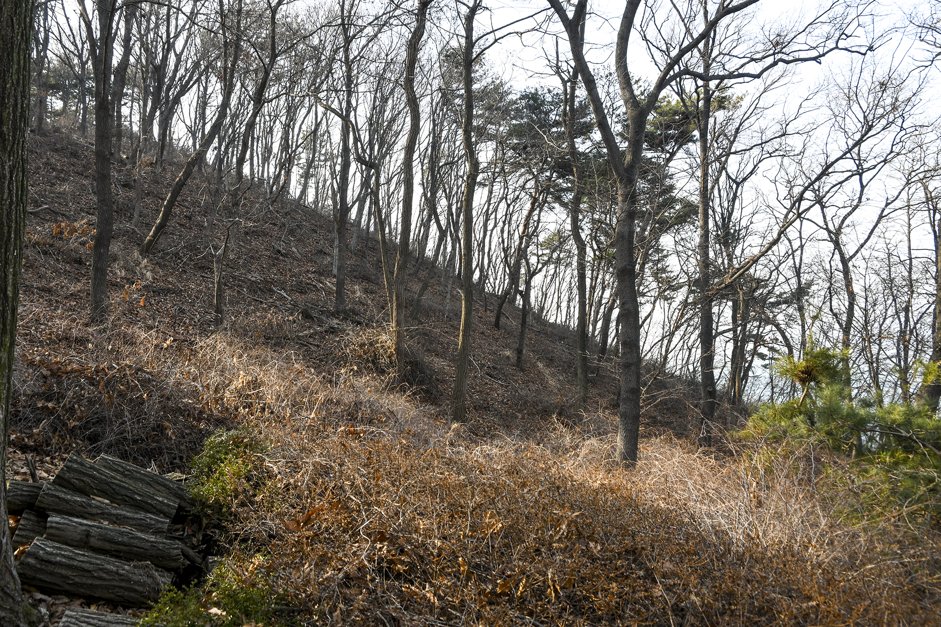 벌목작업을 했는지 잘려나간 나뭇가지가 여기저기 널부러져 있고, 곳곳에 노루귀가 파헤쳐진 흔적이 가득하다.