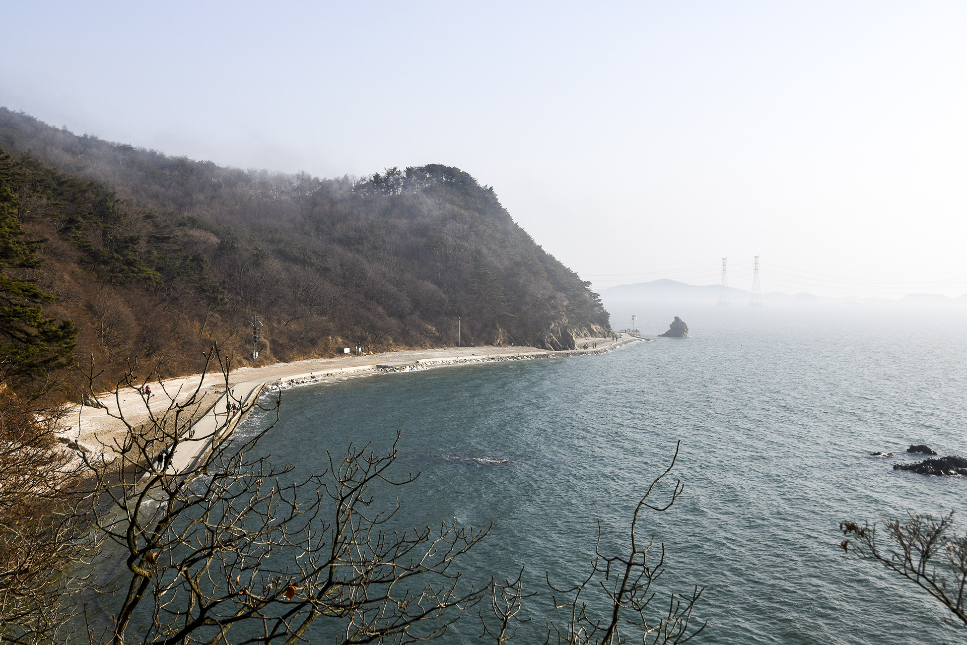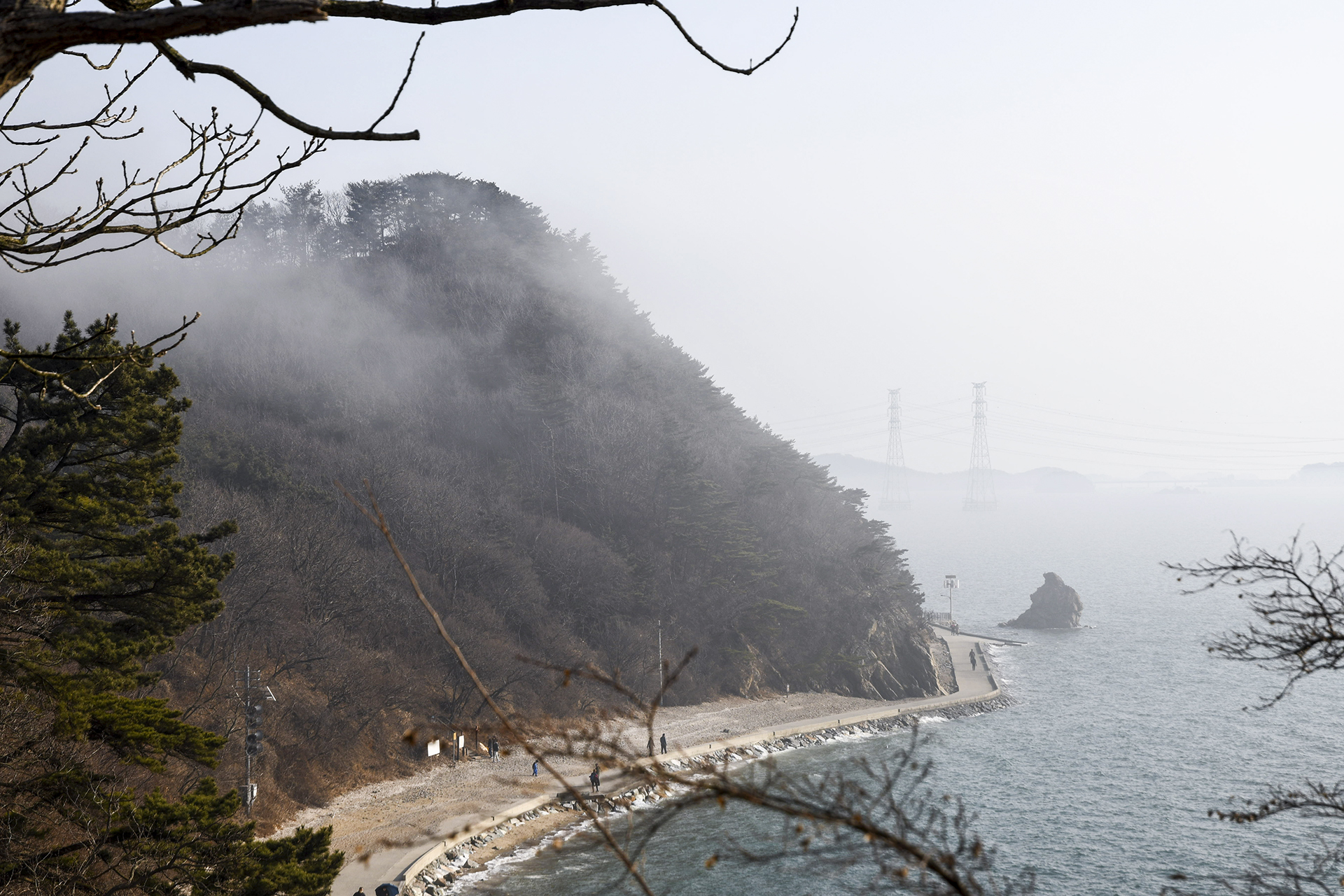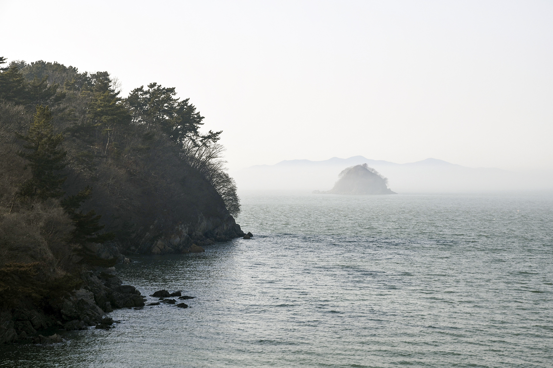 안개는 금새 줄어들었지만 바다에는 아직 연무가 남아있는 상태.