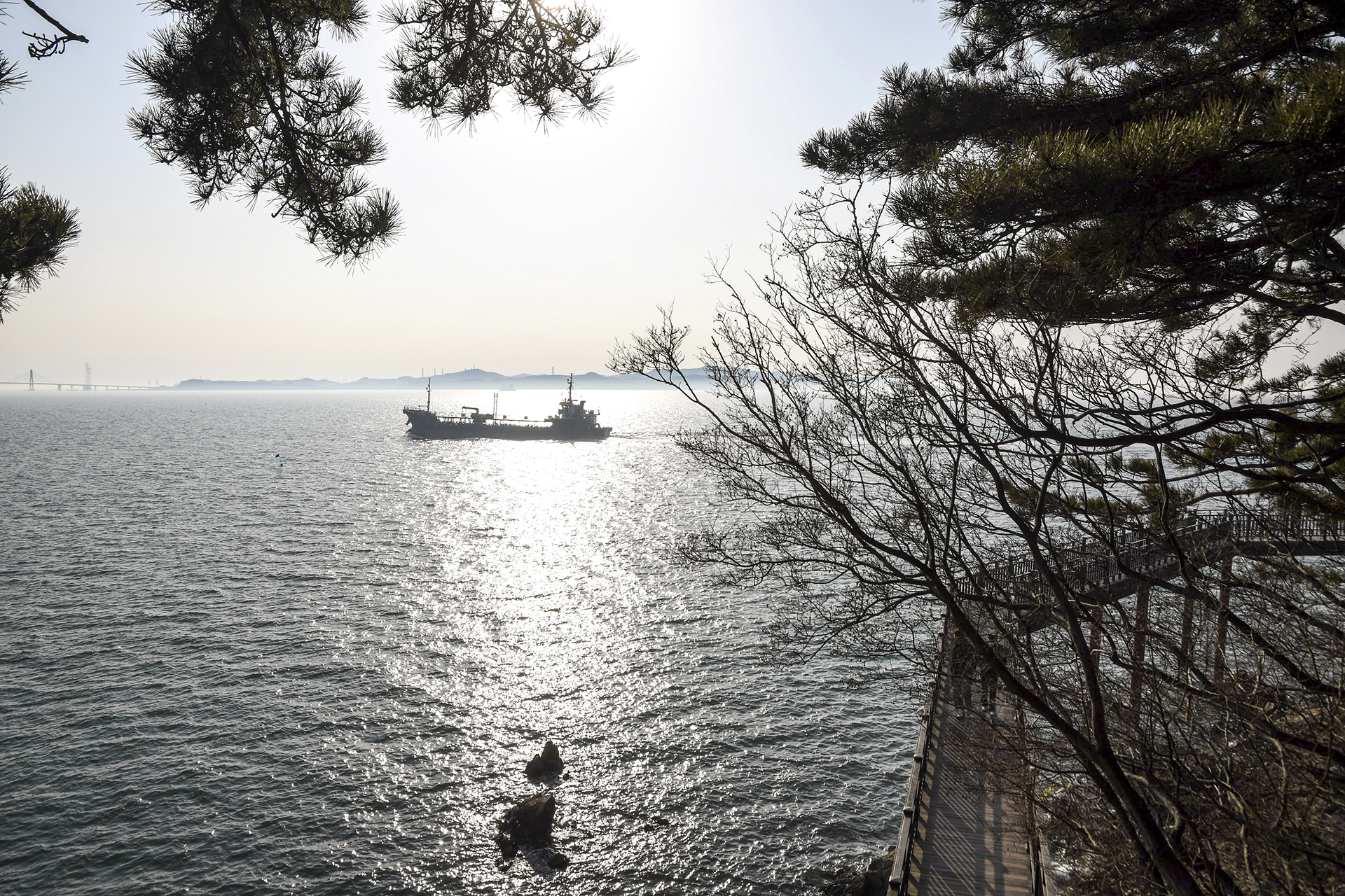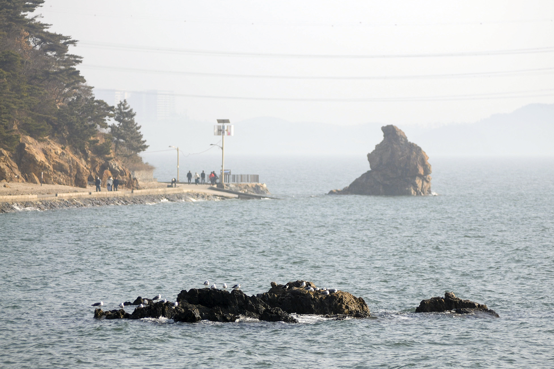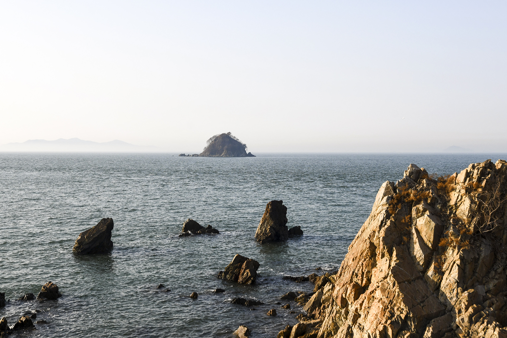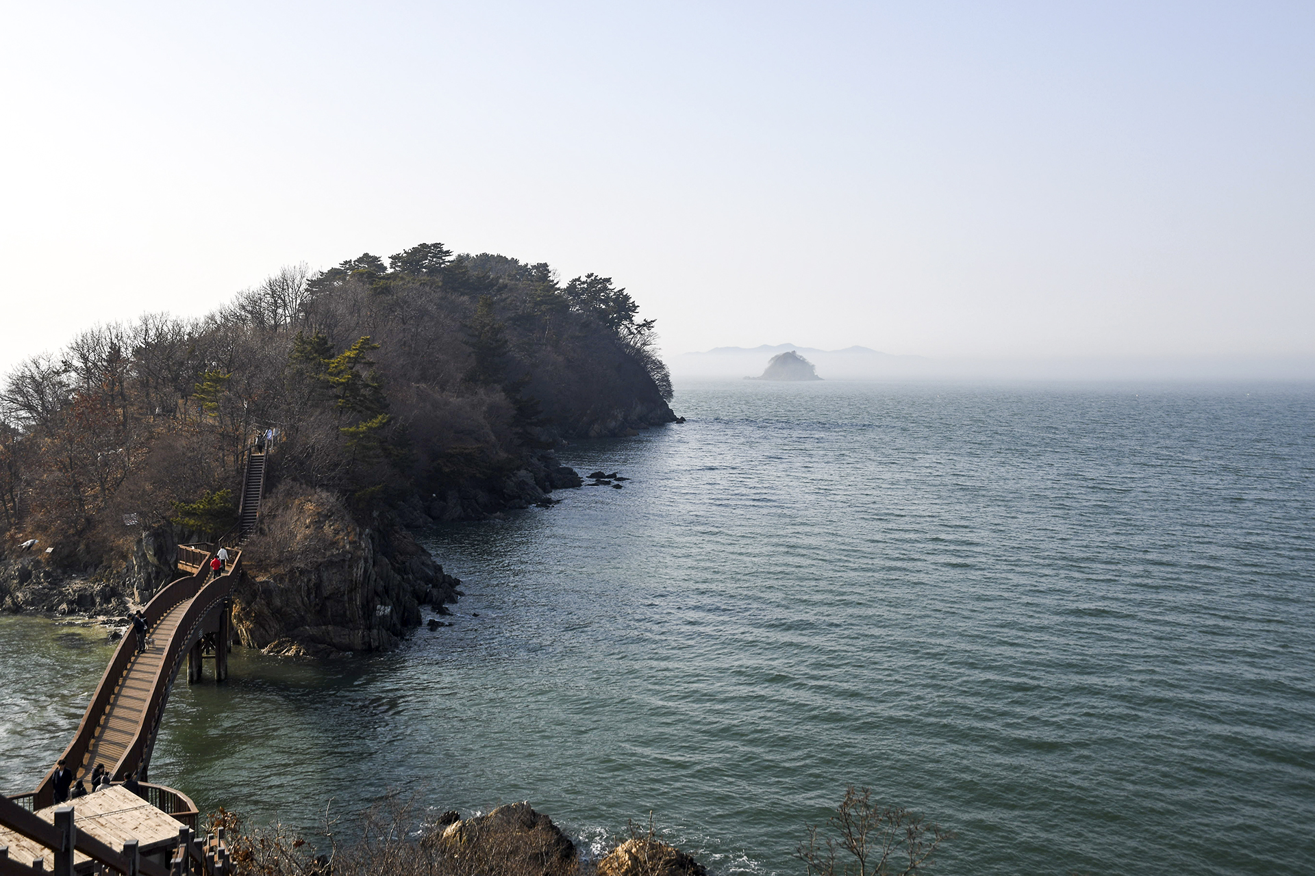 안개는 금새 줄어들었지만 바다에는 아직 연무가 남아있는 상태.