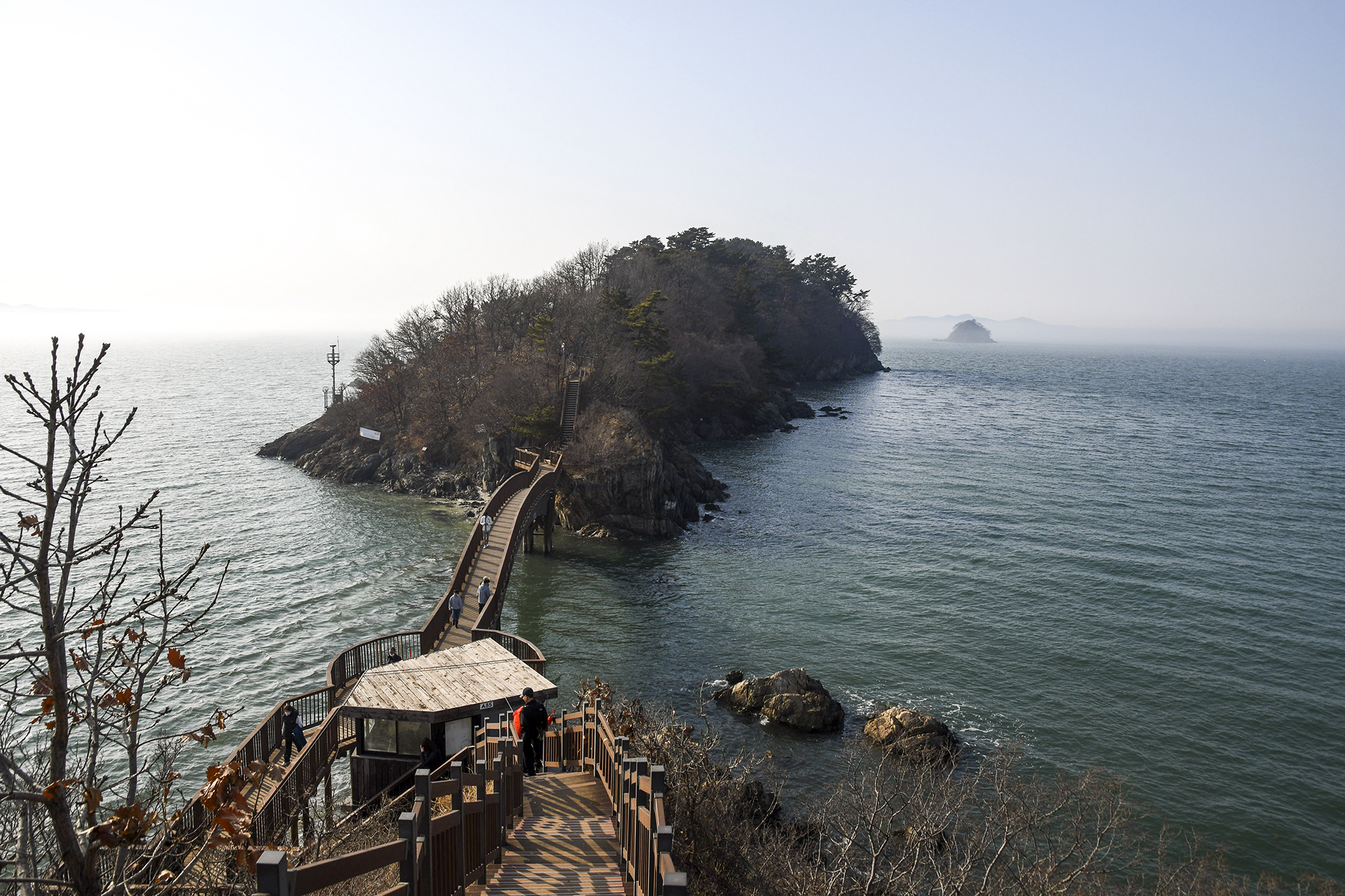 구봉도 끝자락과 똥섬으로 불리는 변도가 뿌연 안개속에 모습을 드러낸다.
