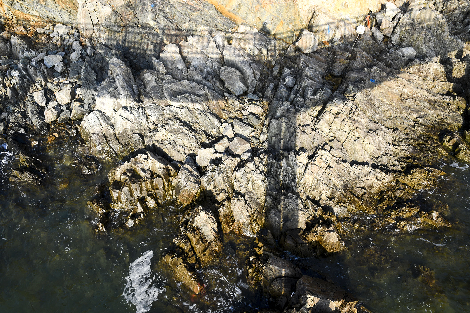 바위 위에까지 젖어 있는걸 보니 물이 엄청 빠졌다는걸 알수 있다.