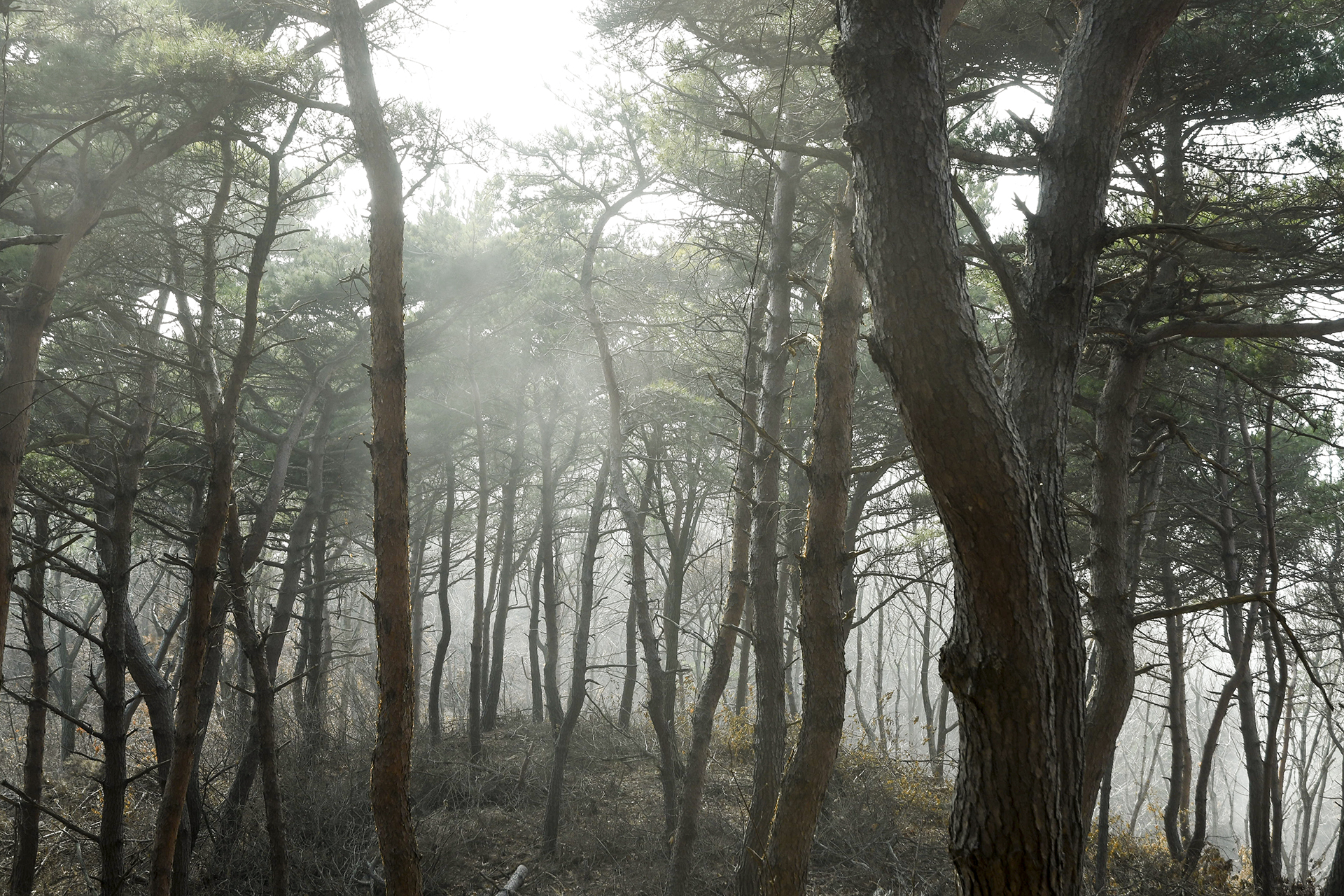 산으로도 연기 같은 바다안개가 휙휙 넘어가는 중이다.