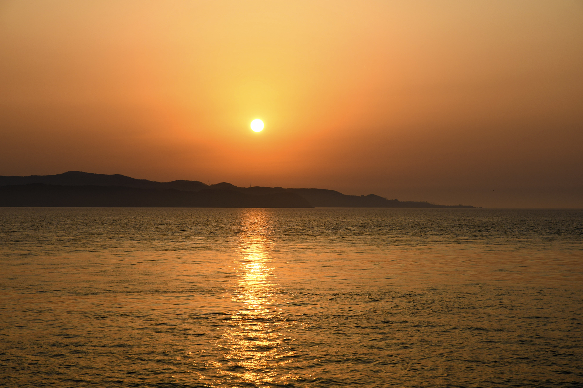 구름 한점 없는 하늘에 은은한 빛을 남기며 조용히 가라앉는다.