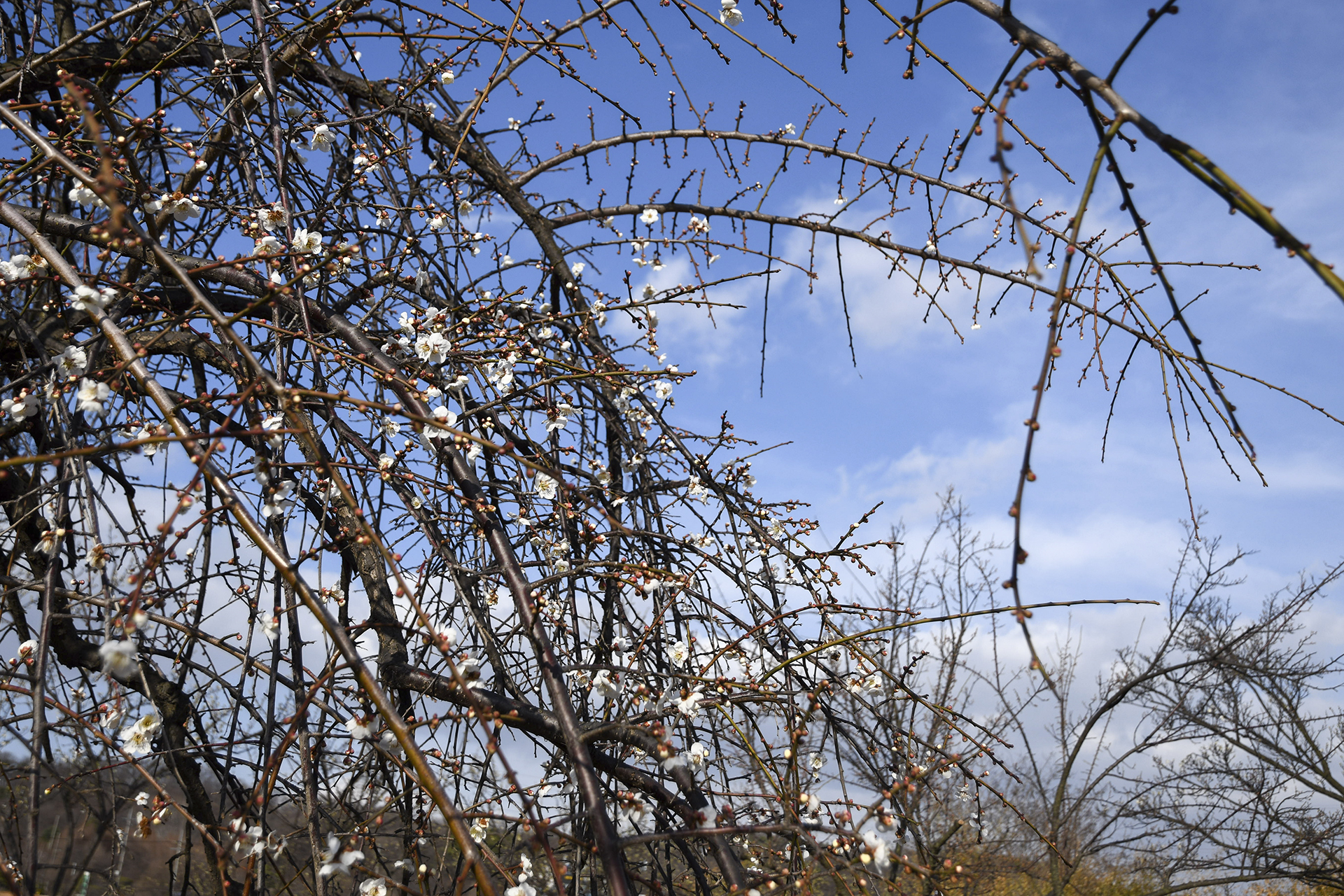 수양버들처럼 가지가 늘어지며 자라는 수양매화는 이미 꽃이 떨어진건지 풍성한 가지에 비해 남아있는 꽃봉오리가 너무 없다.