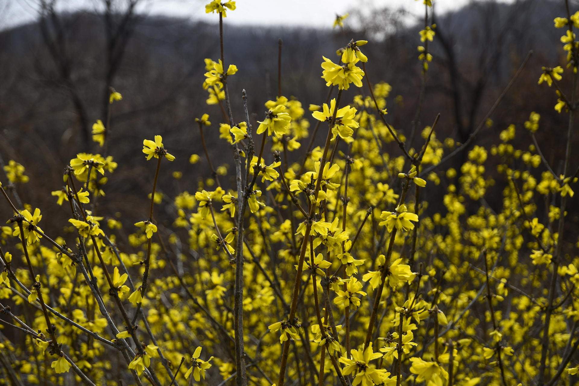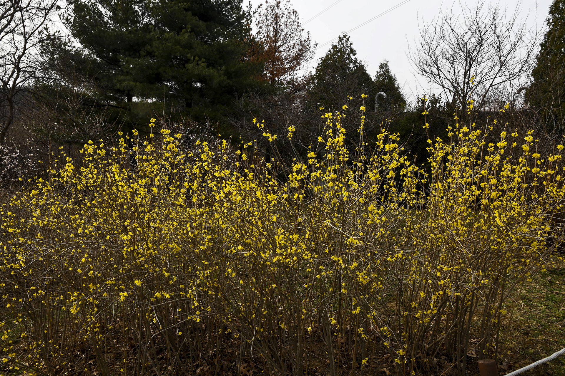 개나리처럼 생겼는데 개나리보다는 내한성이 강해 추위에 견디는 힘이 강하고, 반음지에서도 잘 자란다고 한다.