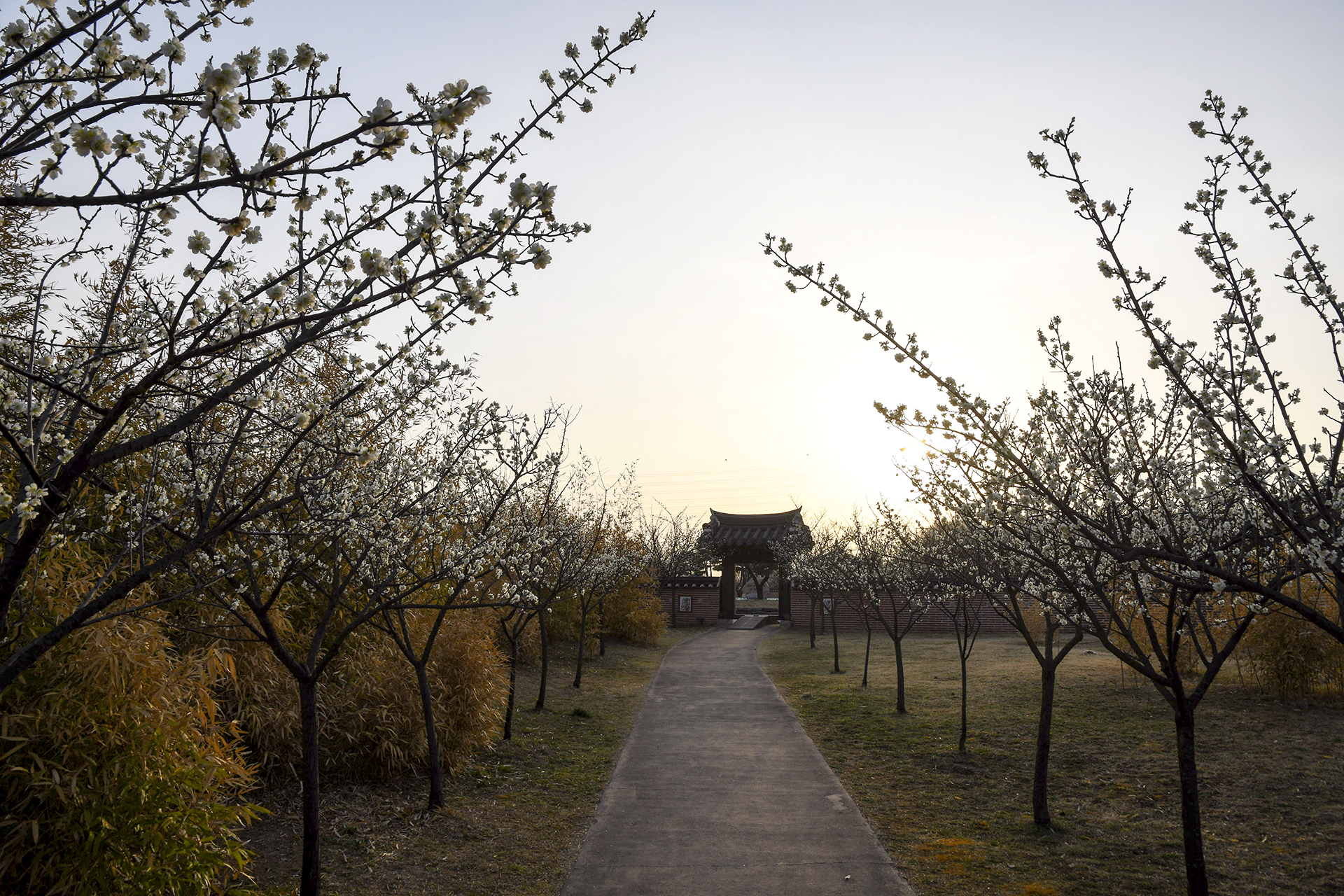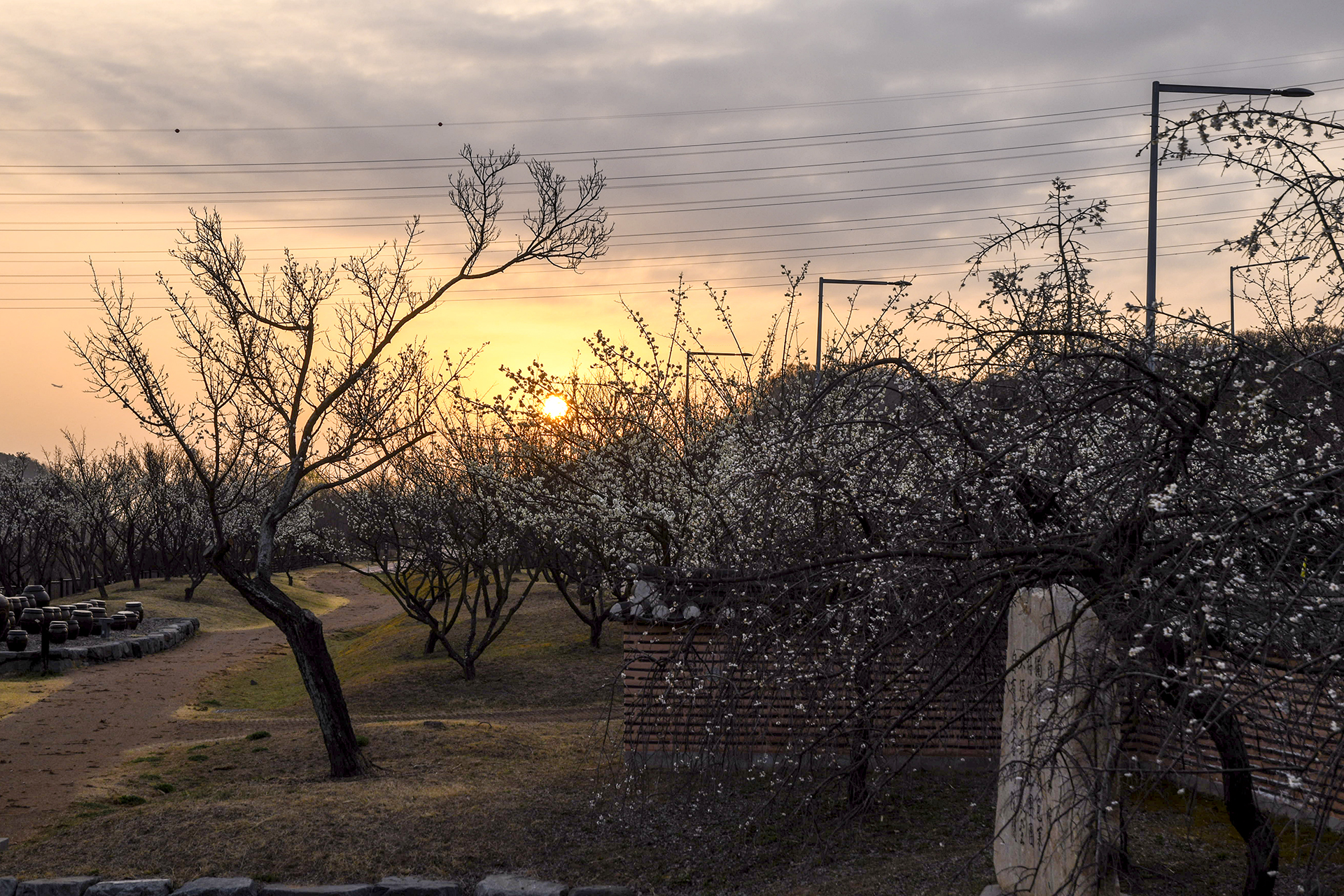 안쪽으로 이동하면서 우선 해뜨는 매화동산의 풍경을 담아본다.