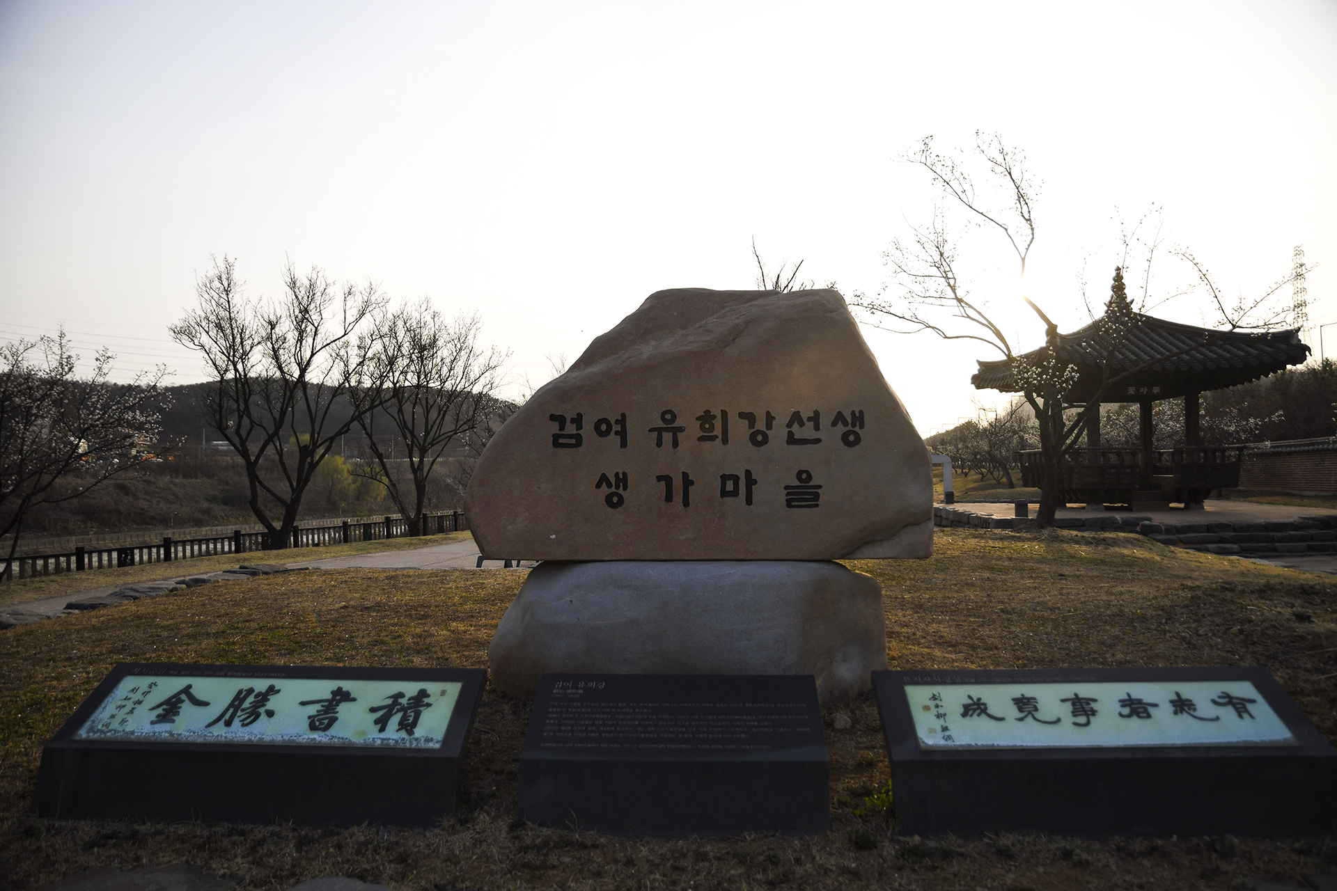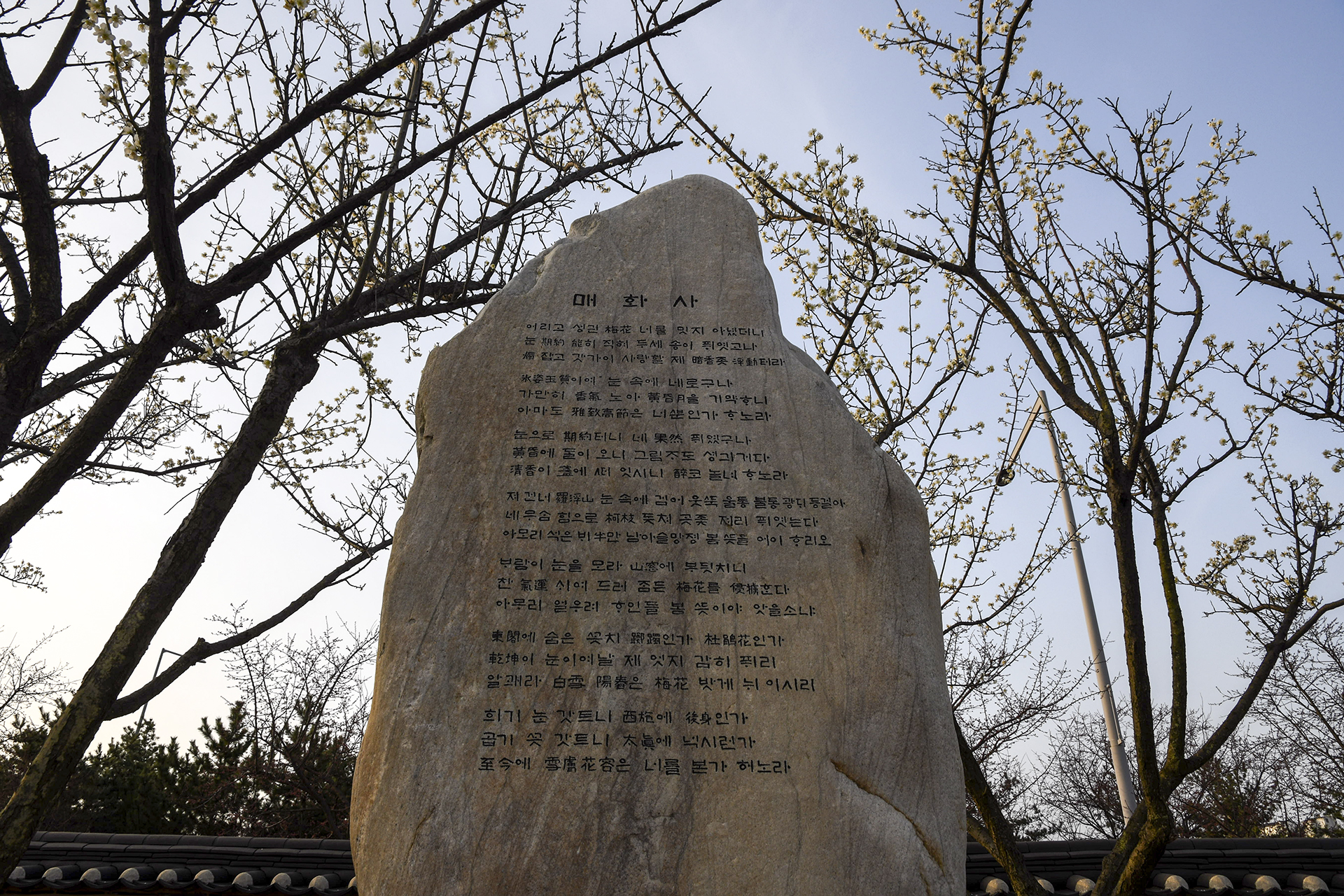 하늘 높이 피어난 매화 아래 시비가 참 잘 어울리는 풍경이다.