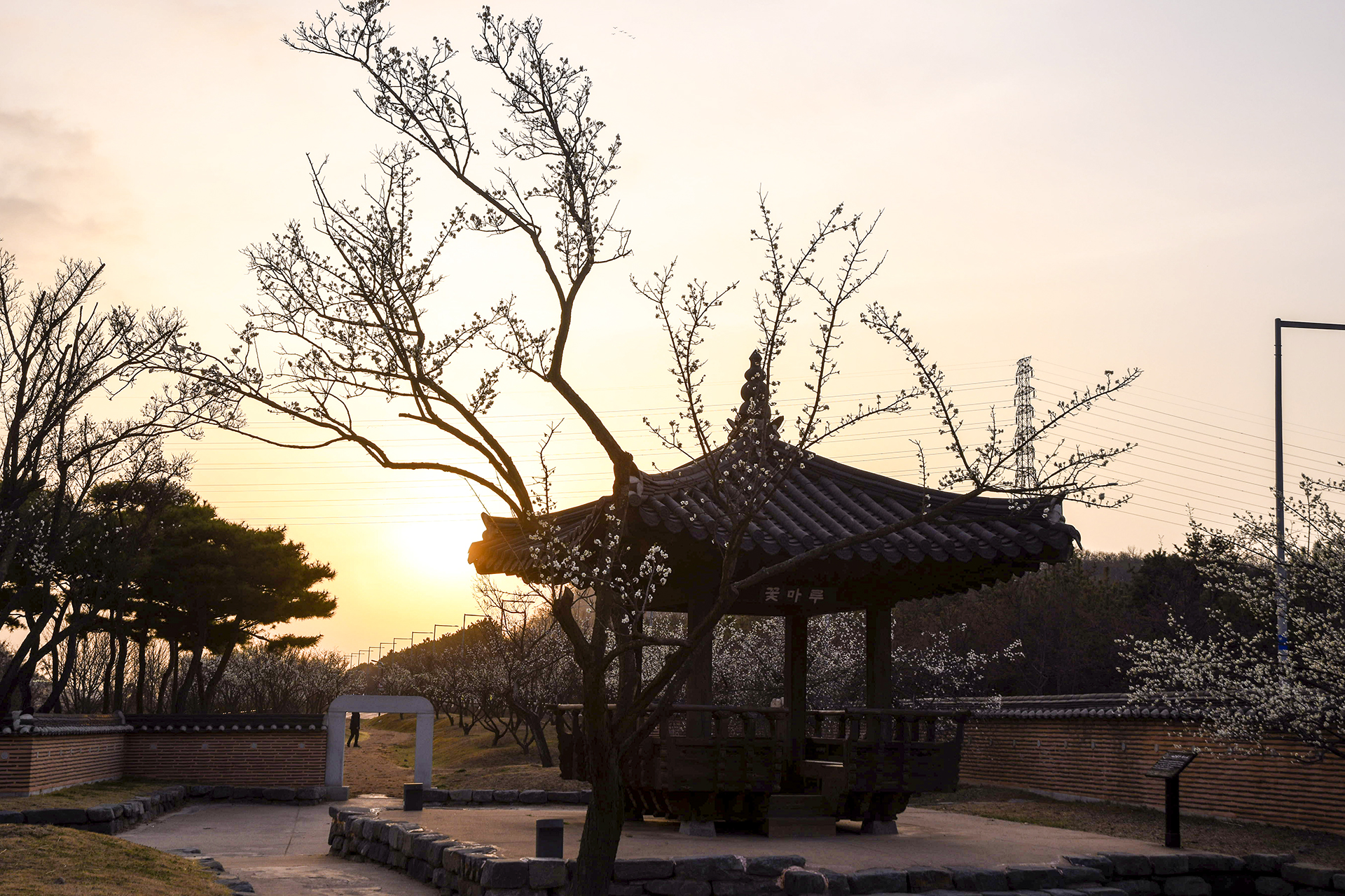 일출 빛이 서서히 누그러지고 다시 천천히 매화를 만나보자
