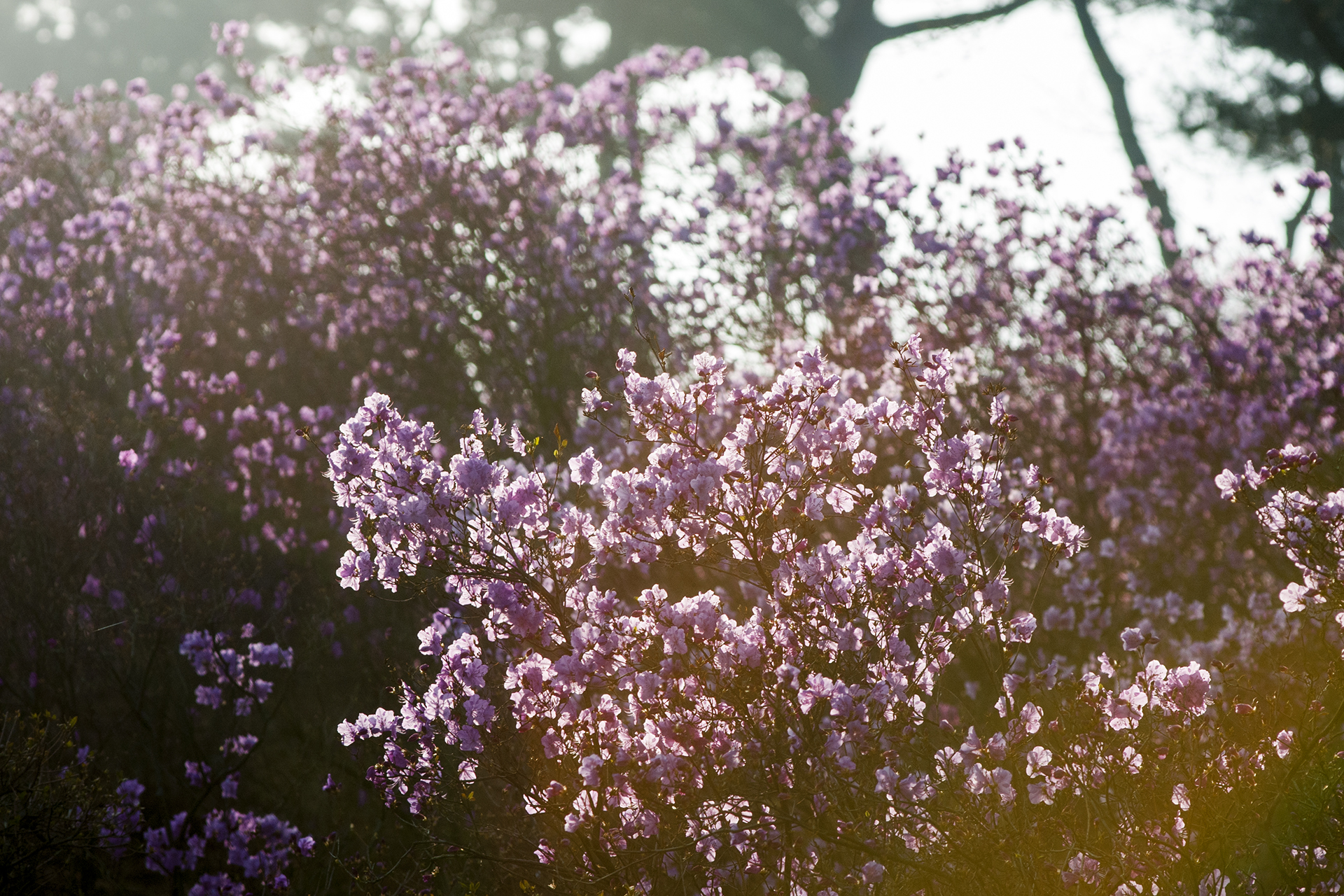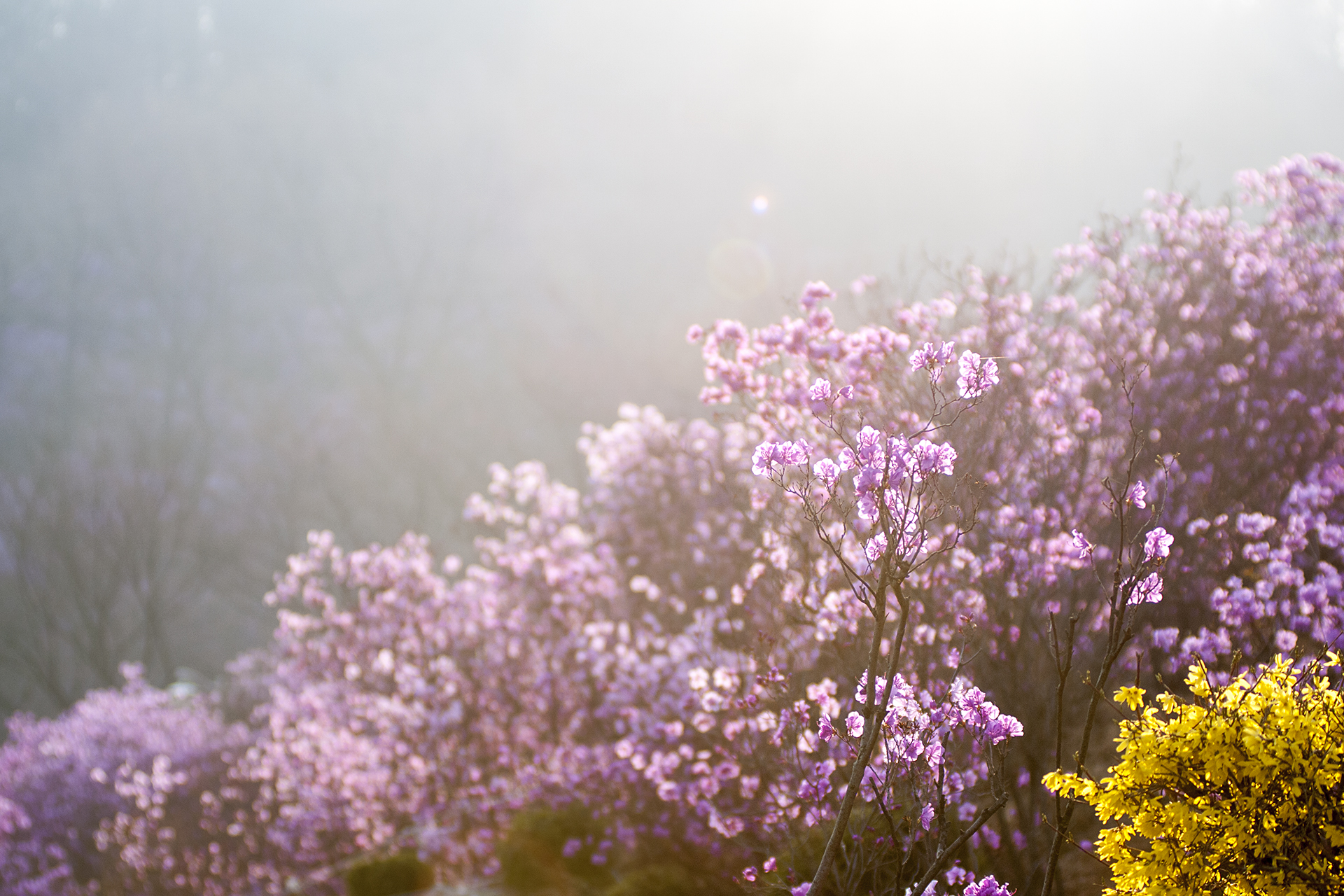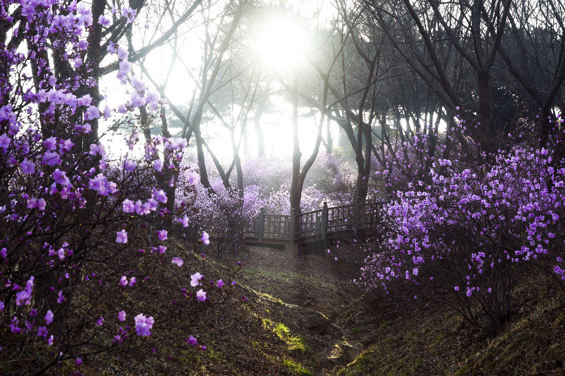 아직 해가 들지 않을 때의 사진이지만 진달래가 만발해 멋진 모습을 보여준다.