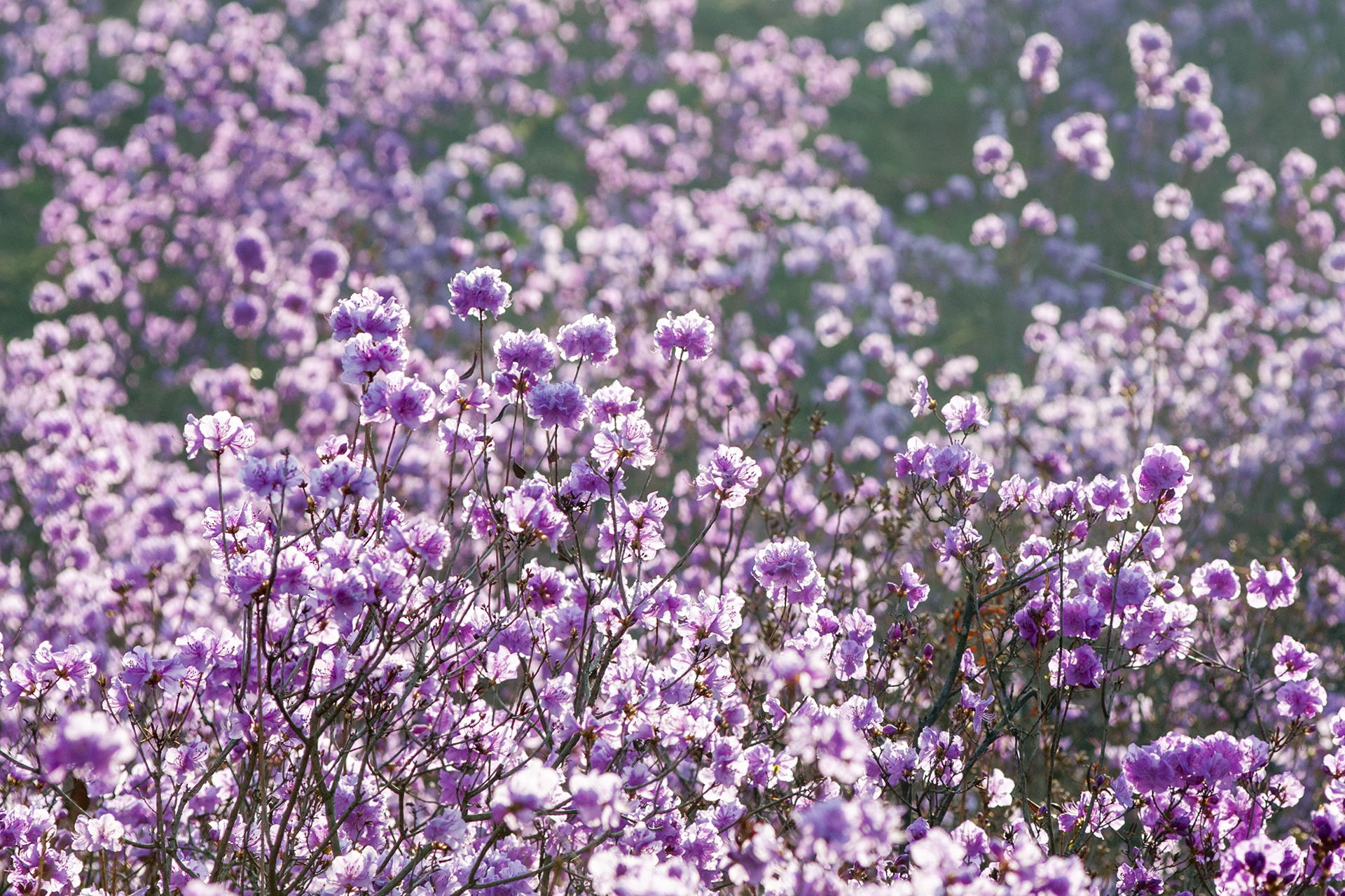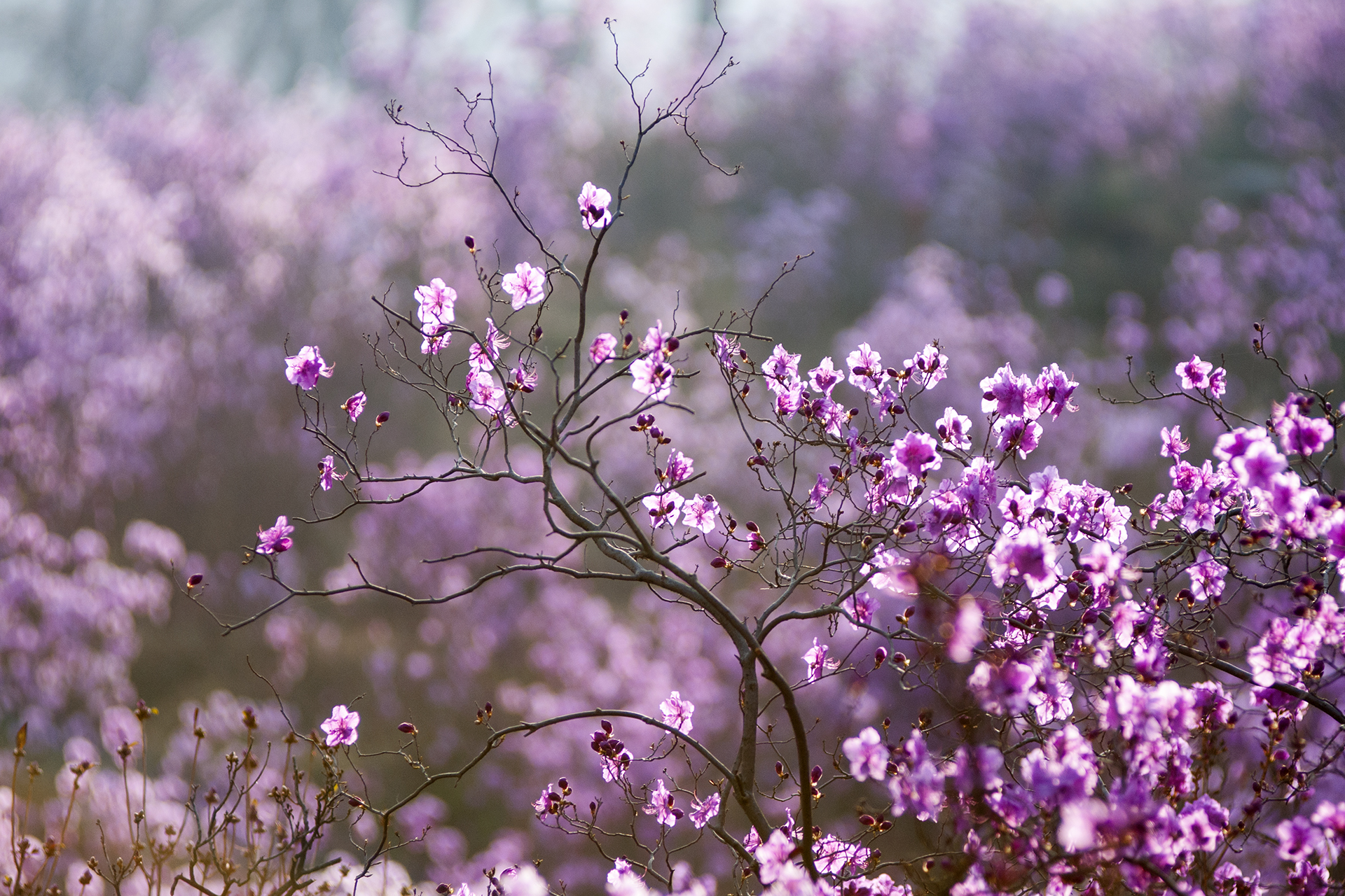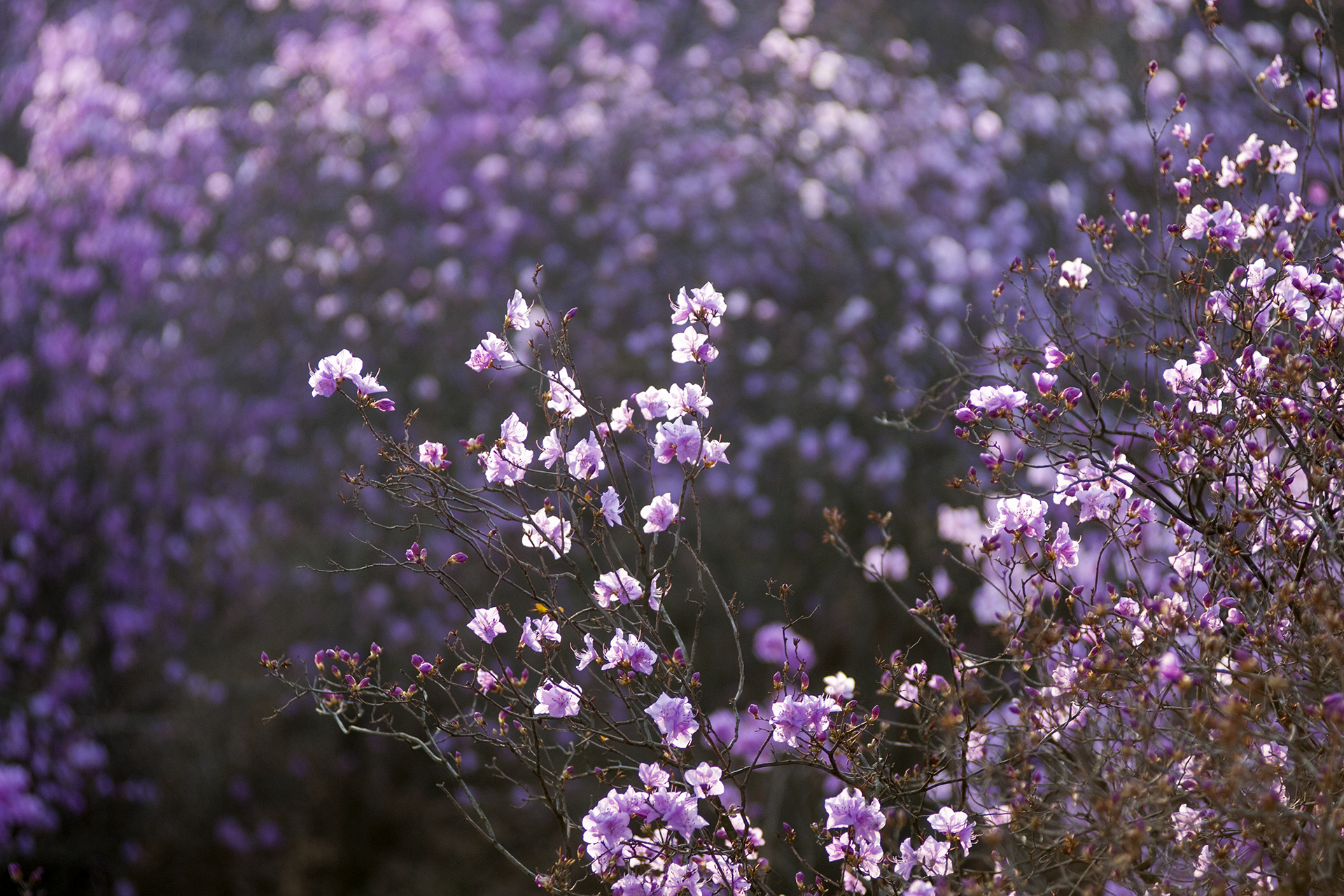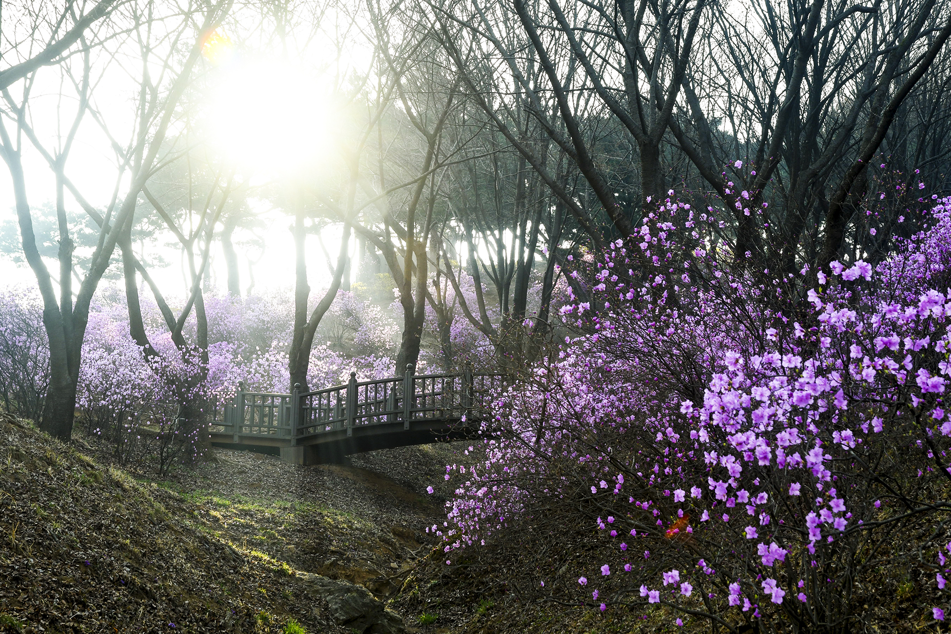 아직 해가 들지 않을 때의 사진이지만 진달래가 만발해 멋진 모습을 보여준다.