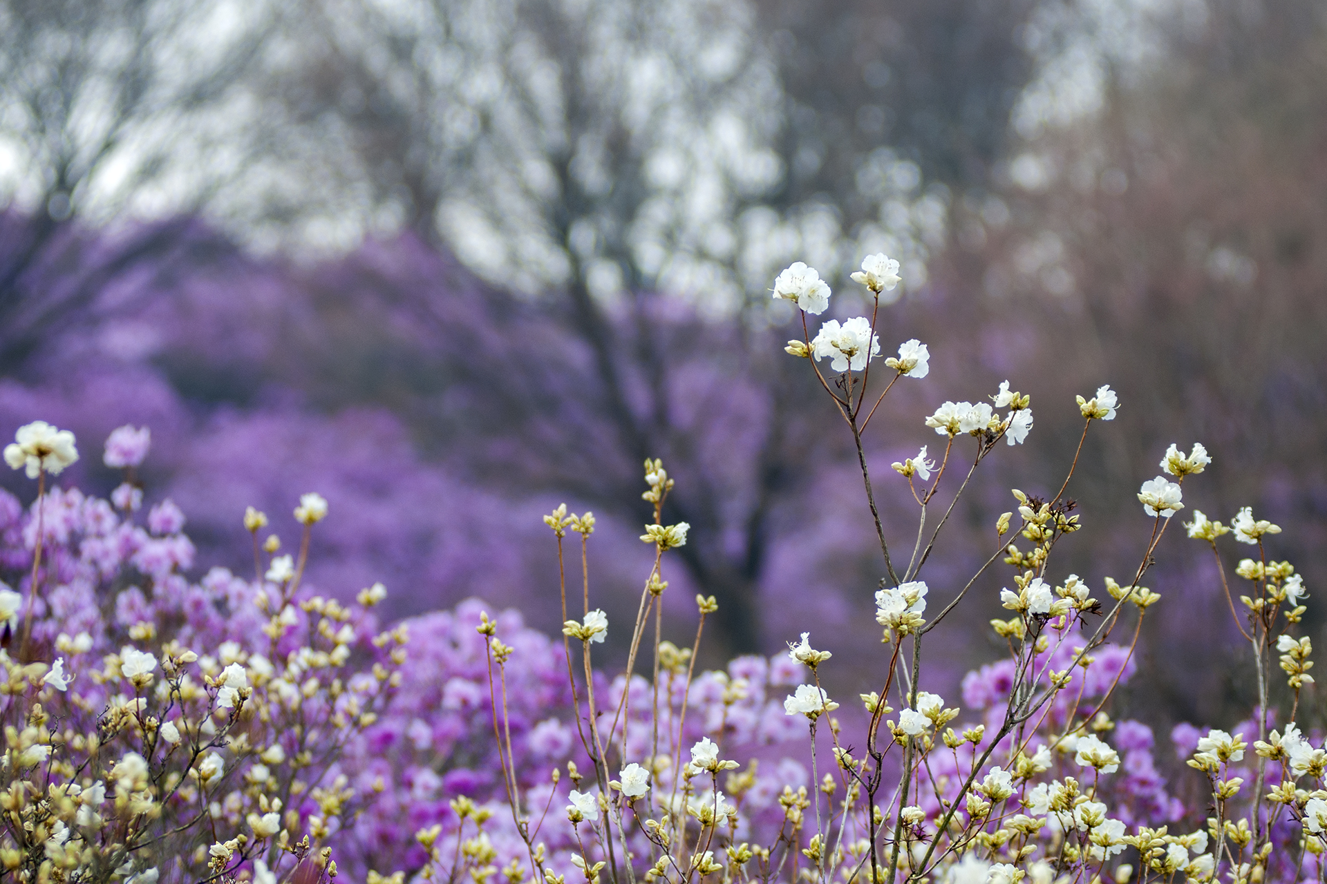 좀처럼 만나기 힘들어 조금은 특별해 보이는 흰진달래,