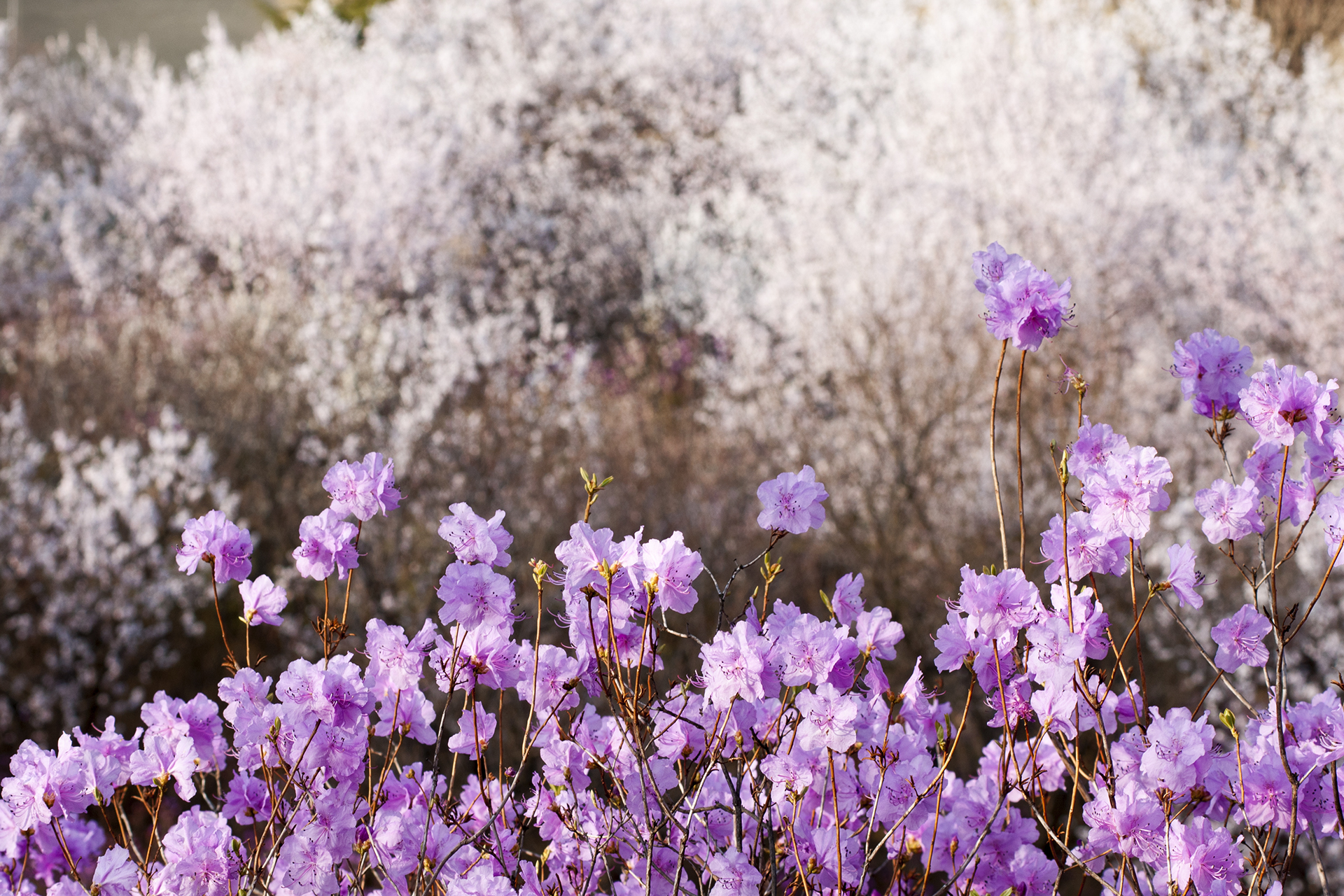 어제까지만 해도 수수해 보이던 매화를 만나다가 이렇게 진달래를 보니 진달래가 이렇게 화려한 꽃이었나 싶다.