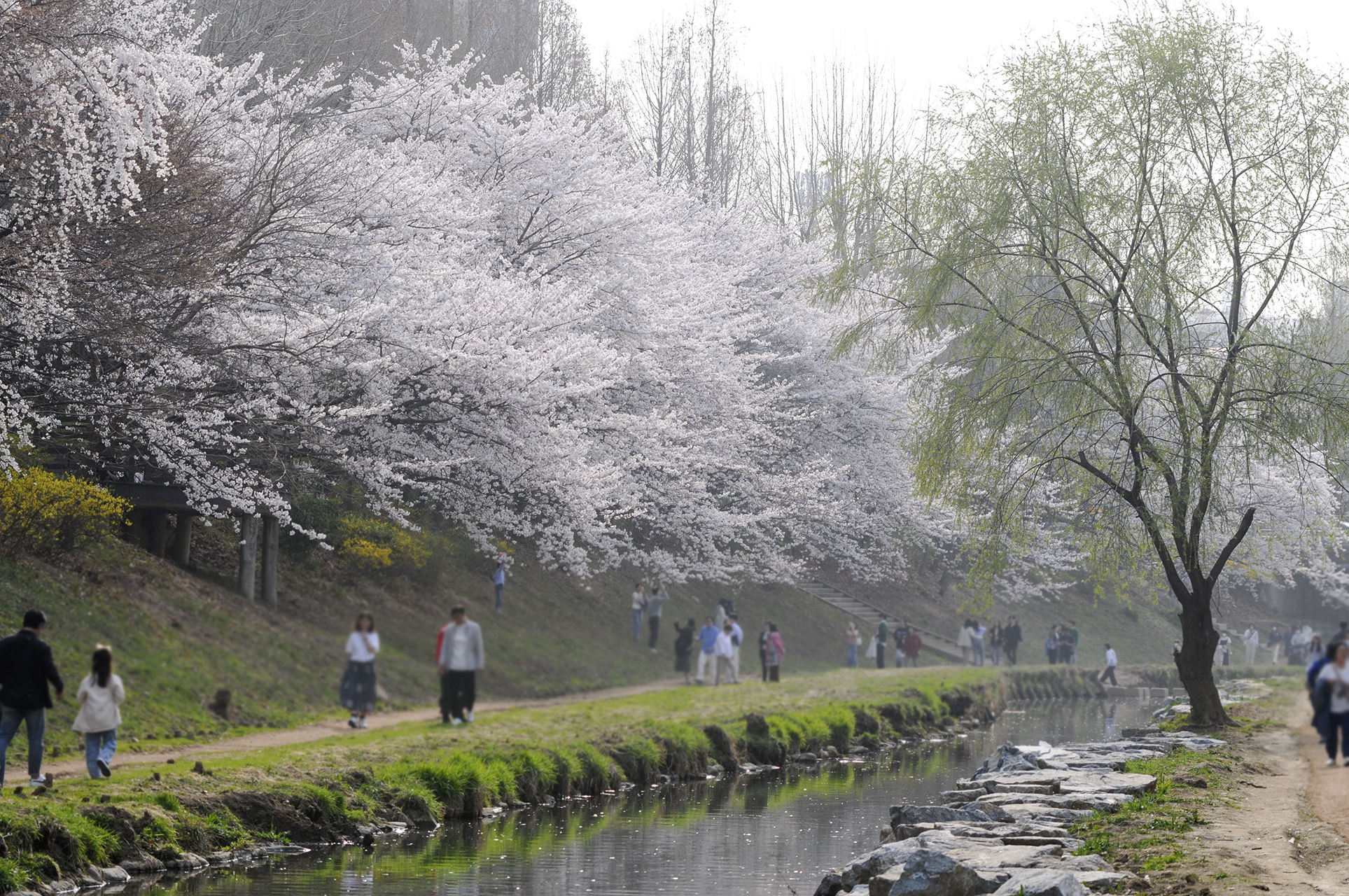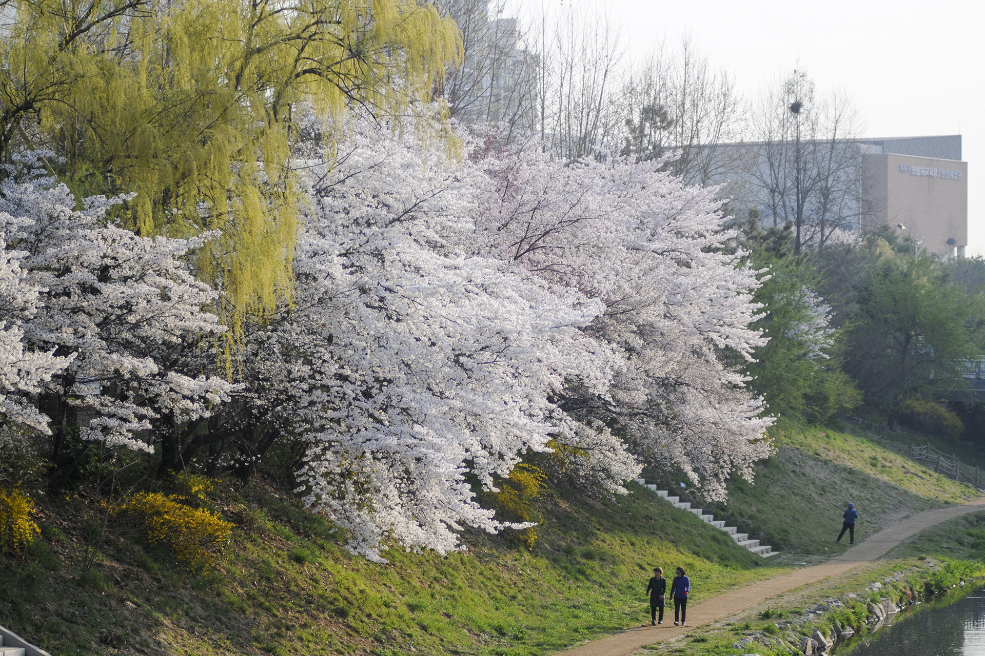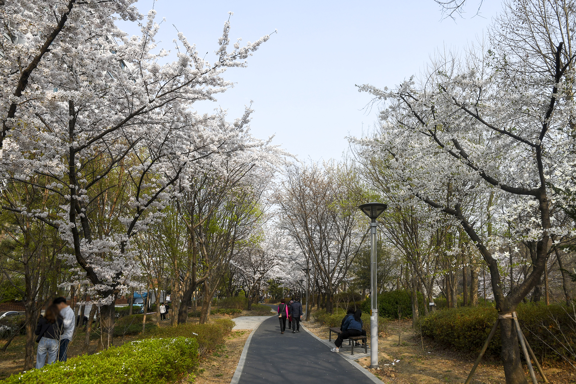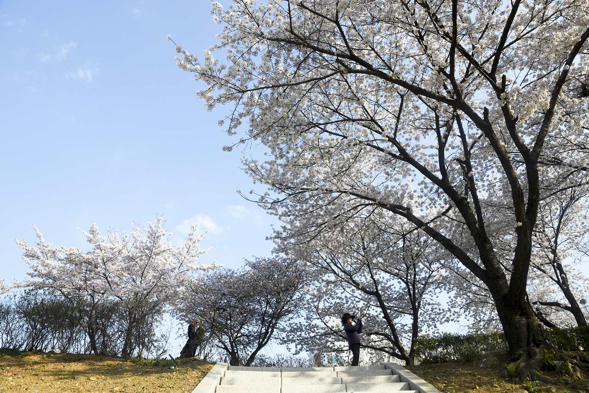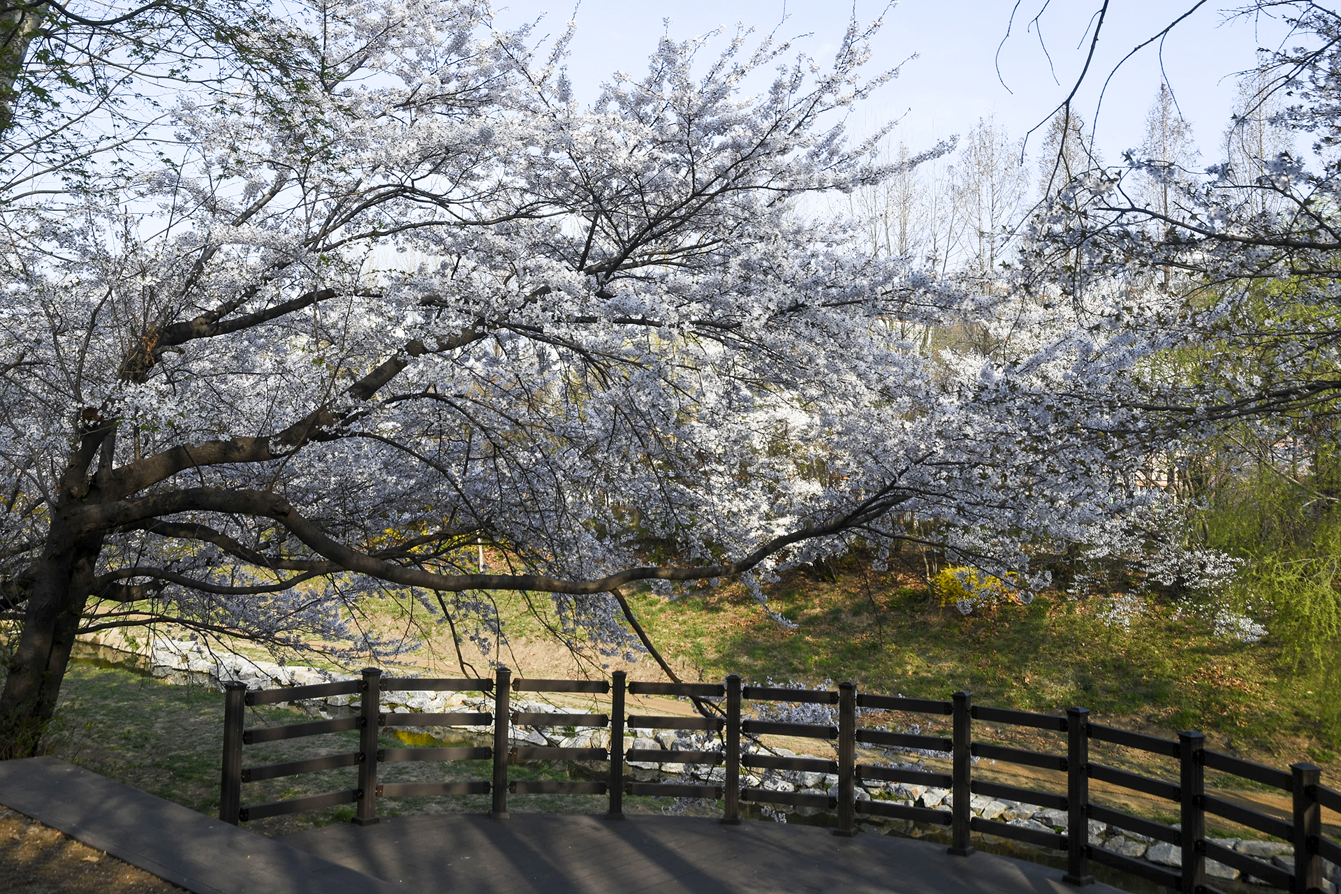 이제 막 꽃망울을 터트리는 나무도 있지만 대부분은 만개한 상태이다.