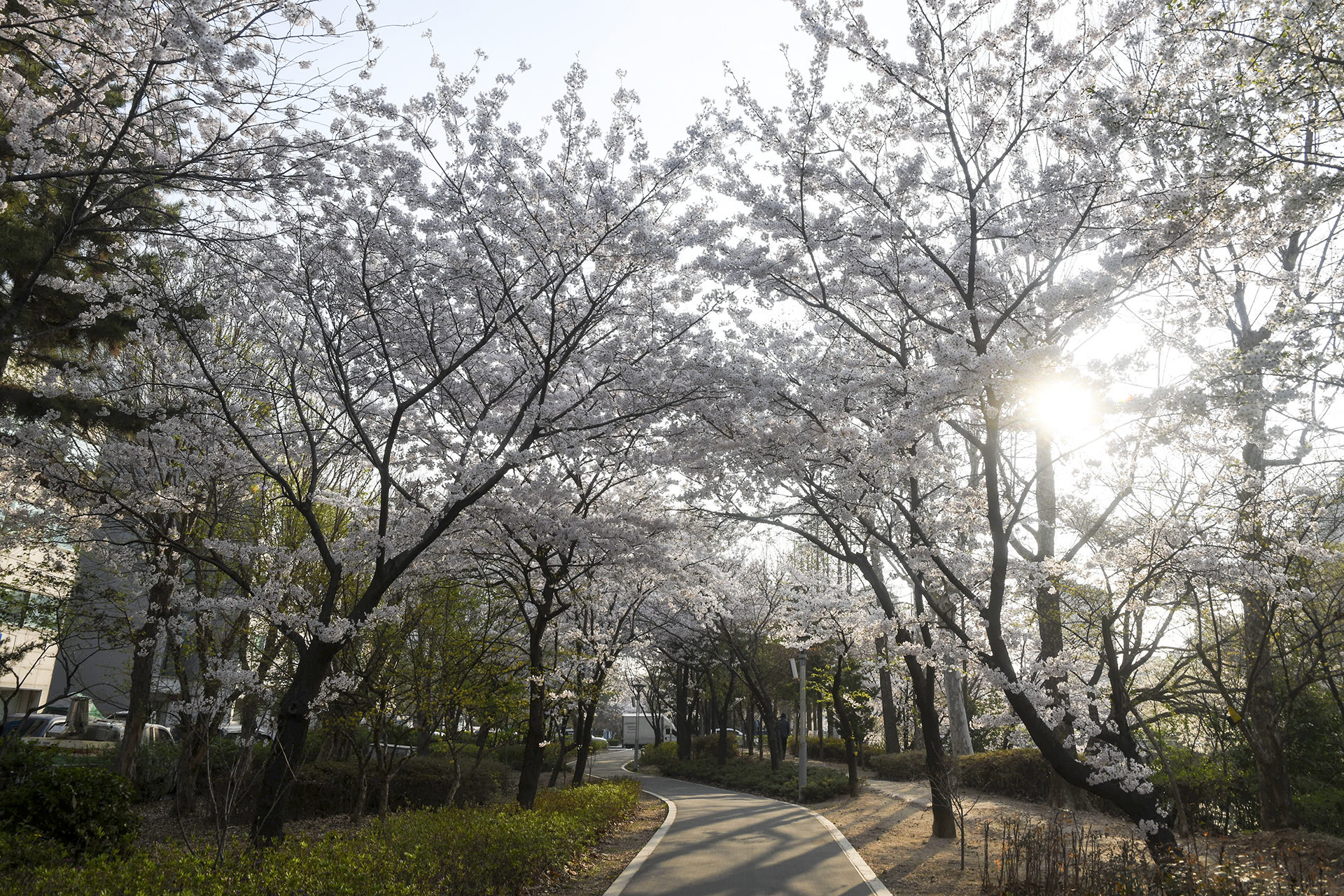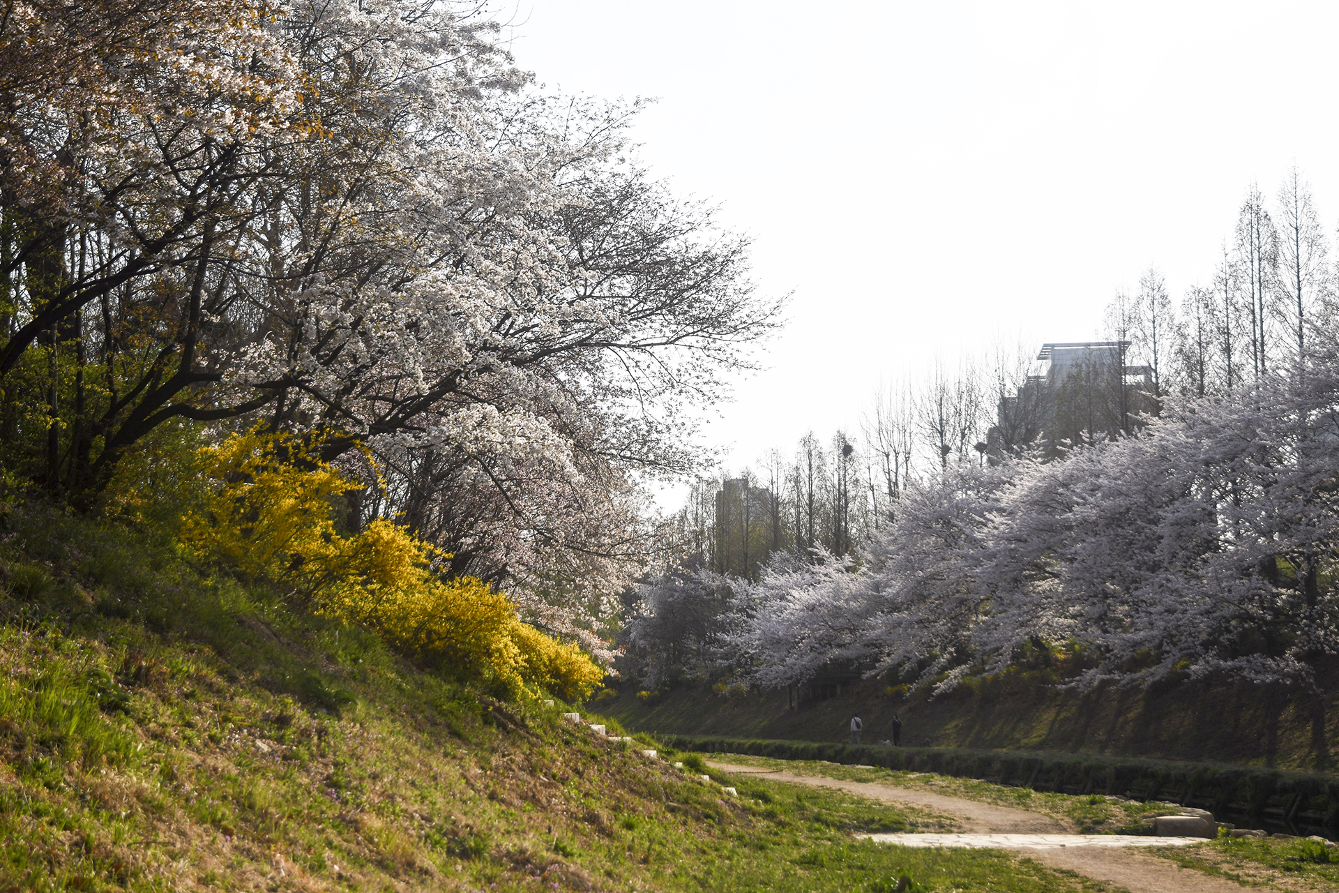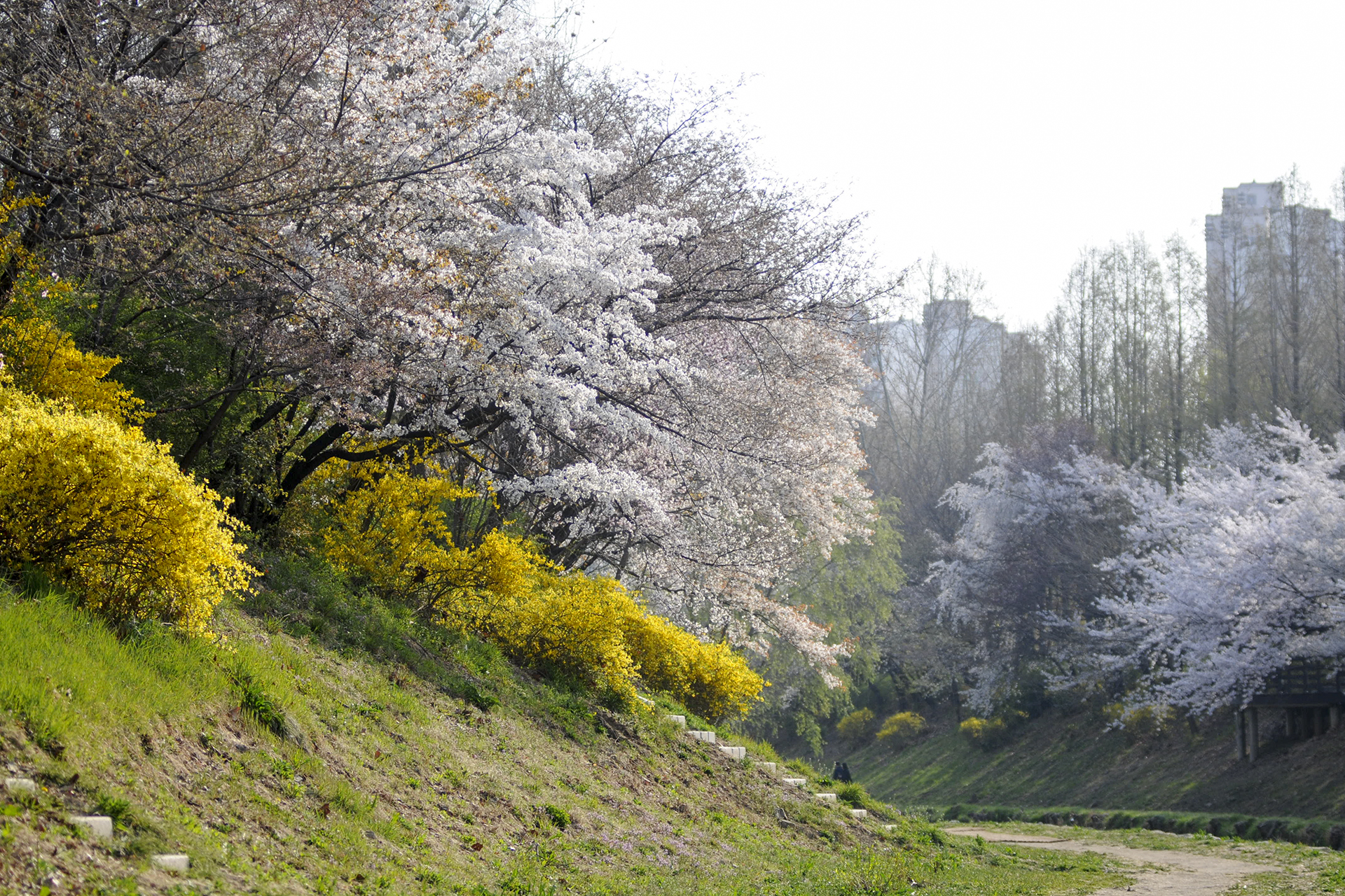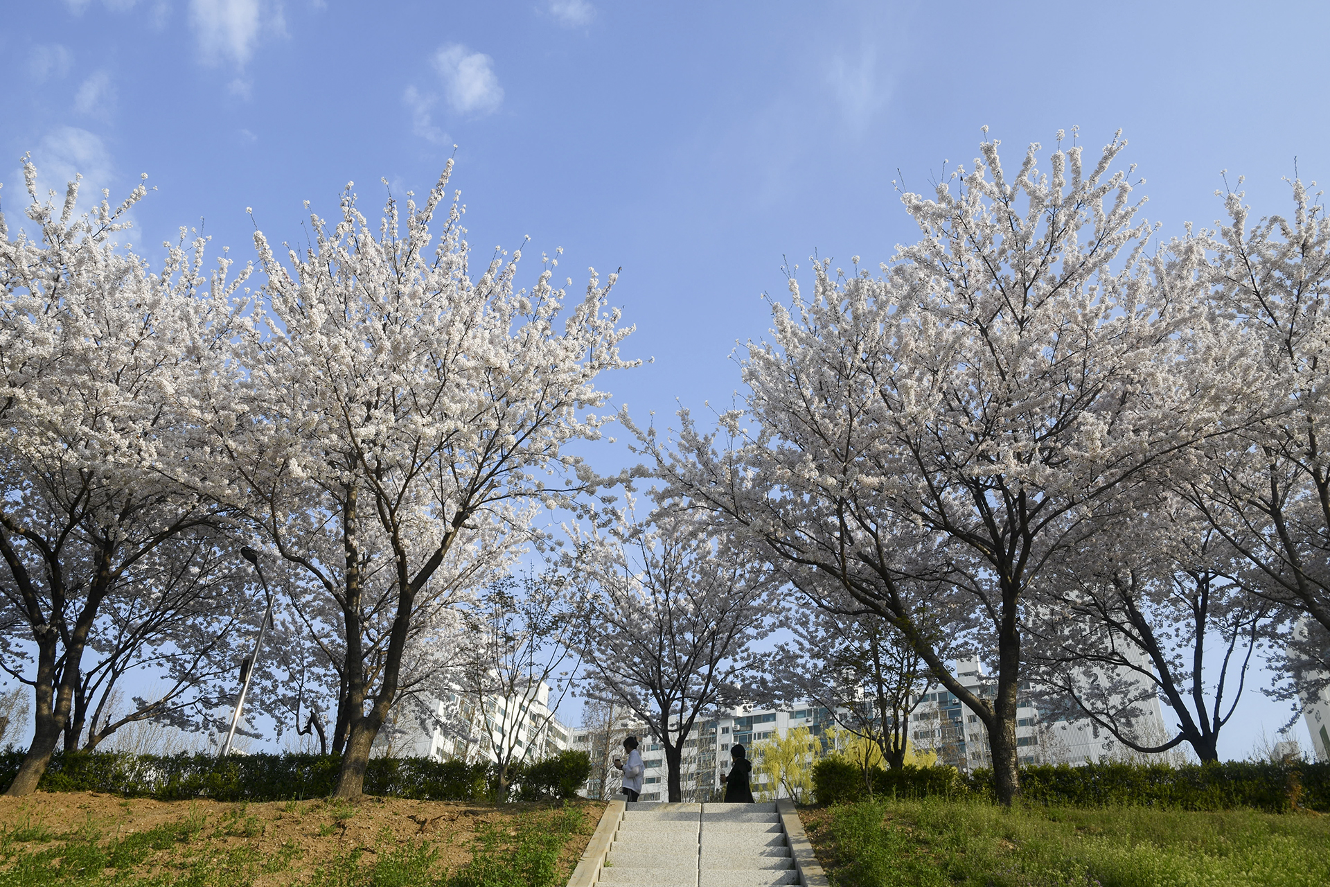 이제 막 꽃망울을 터트리는 나무도 있지만 대부분은 만개한 상태이다.