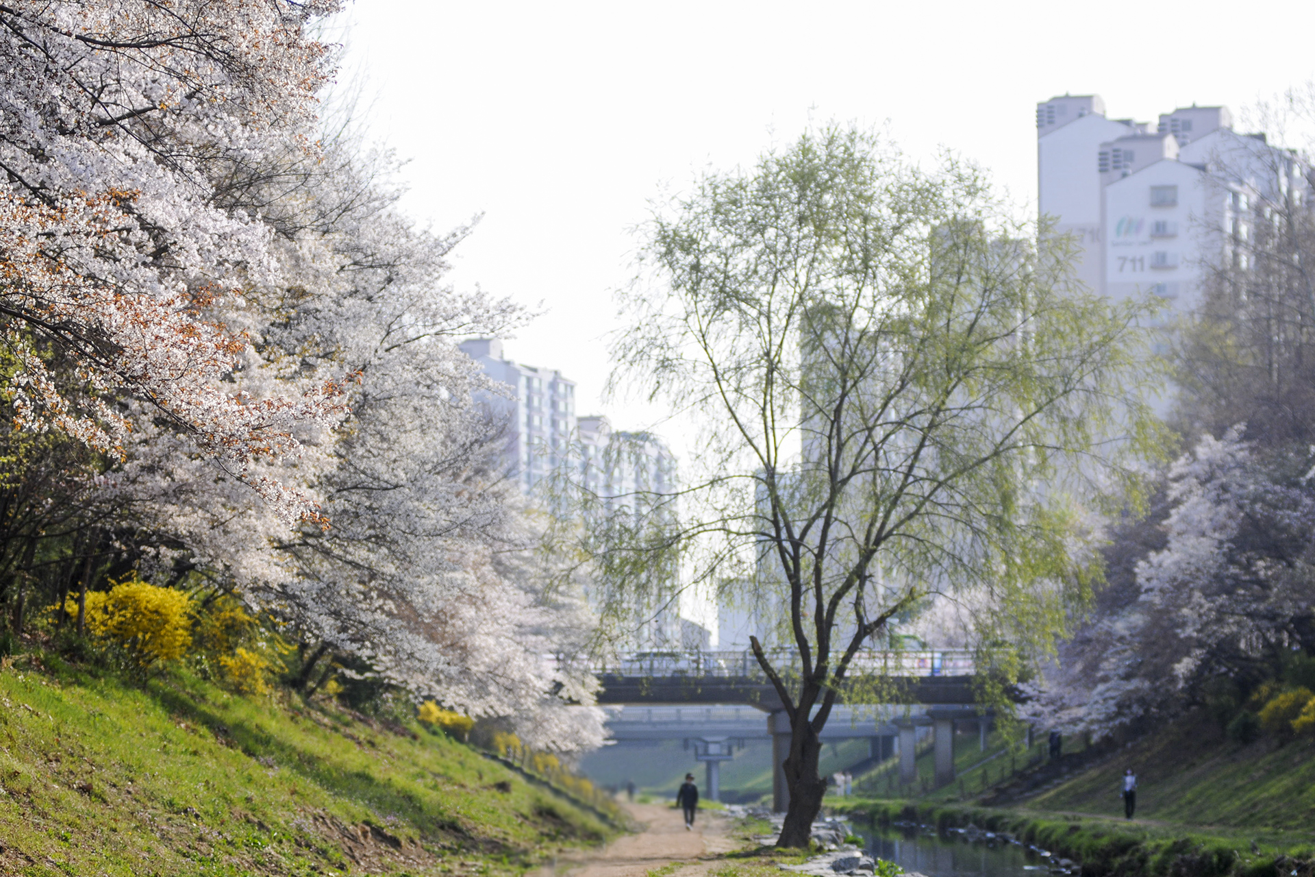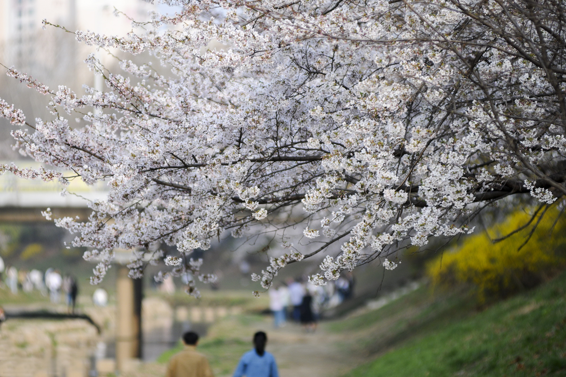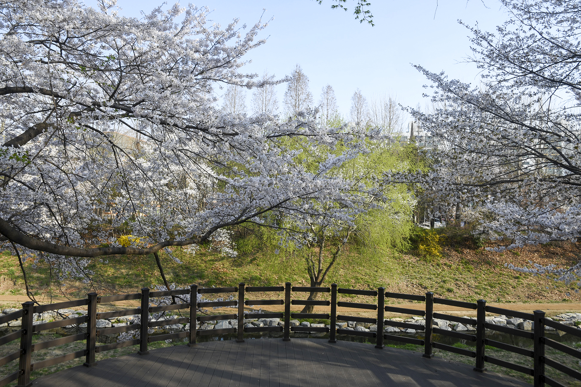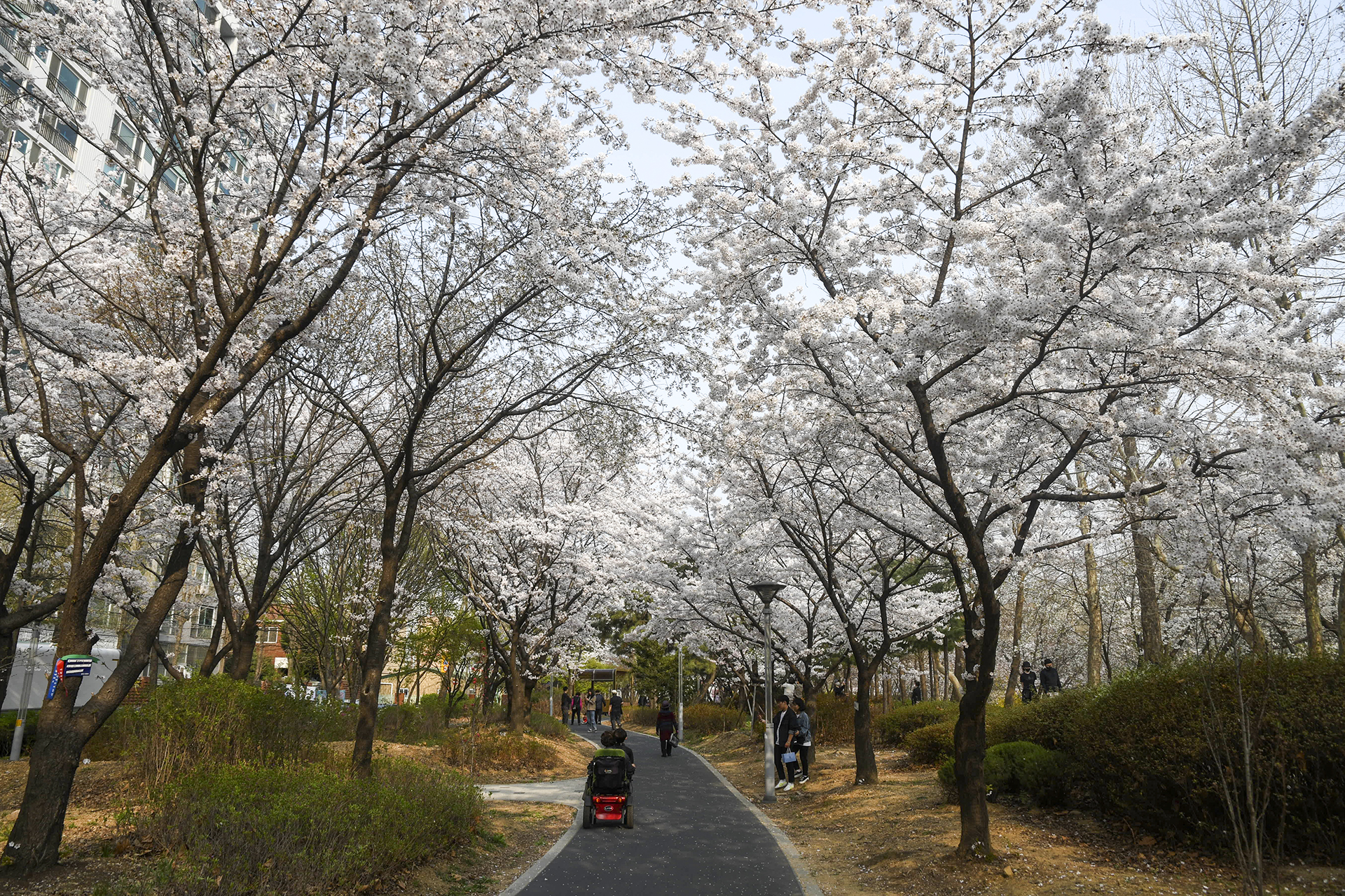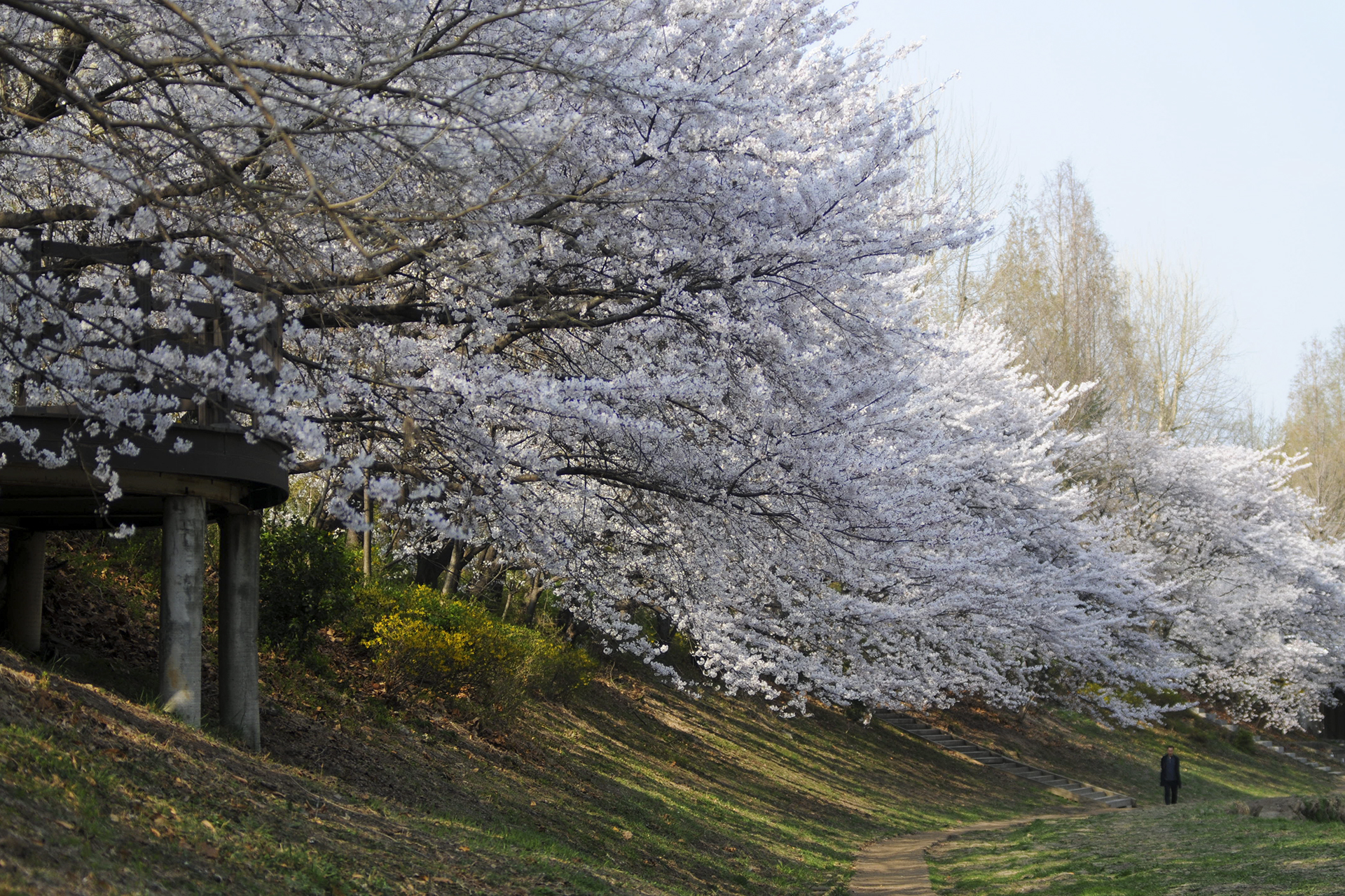 이제 막 꽃망울을 터트리는 나무도 있지만 대부분은 만개한 상태이다.