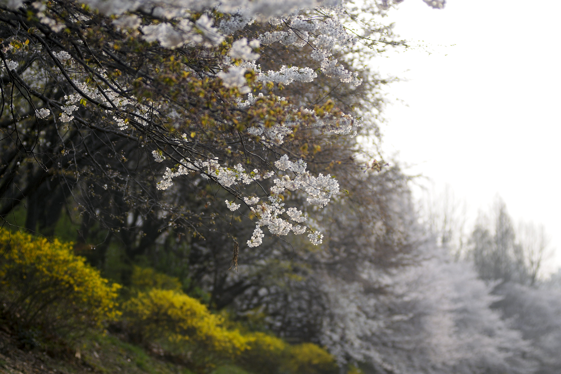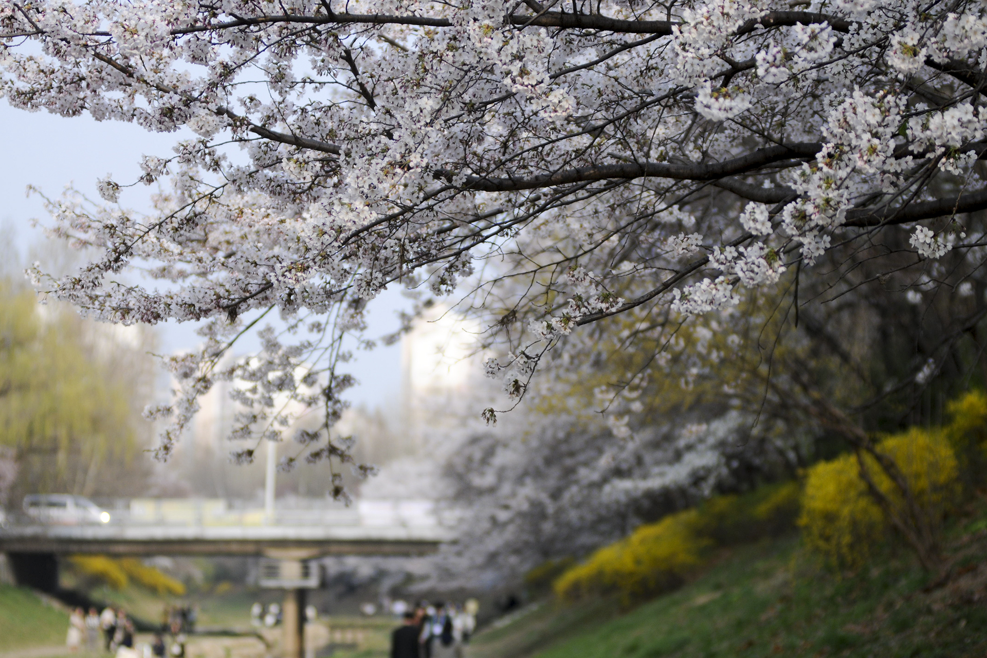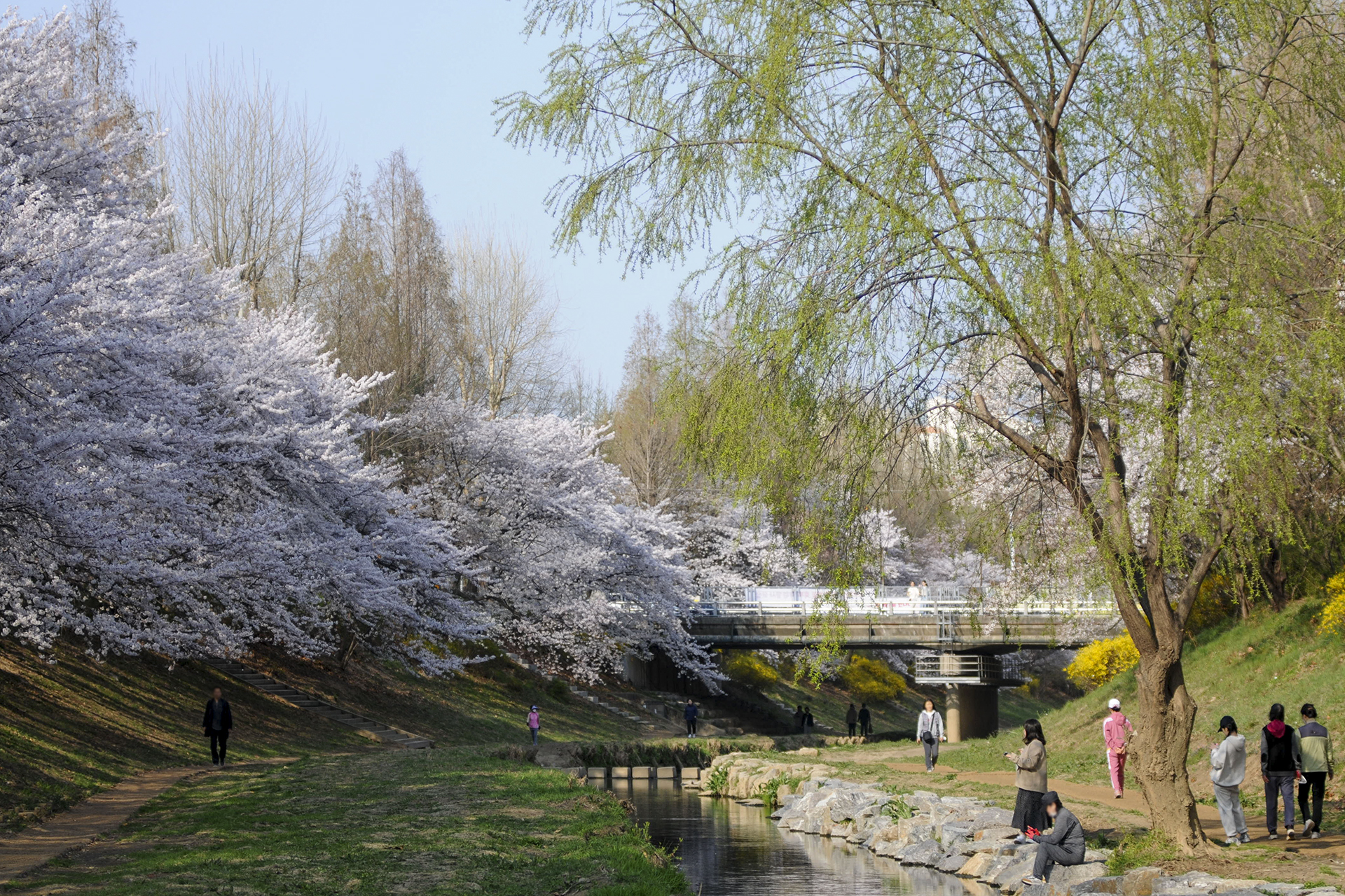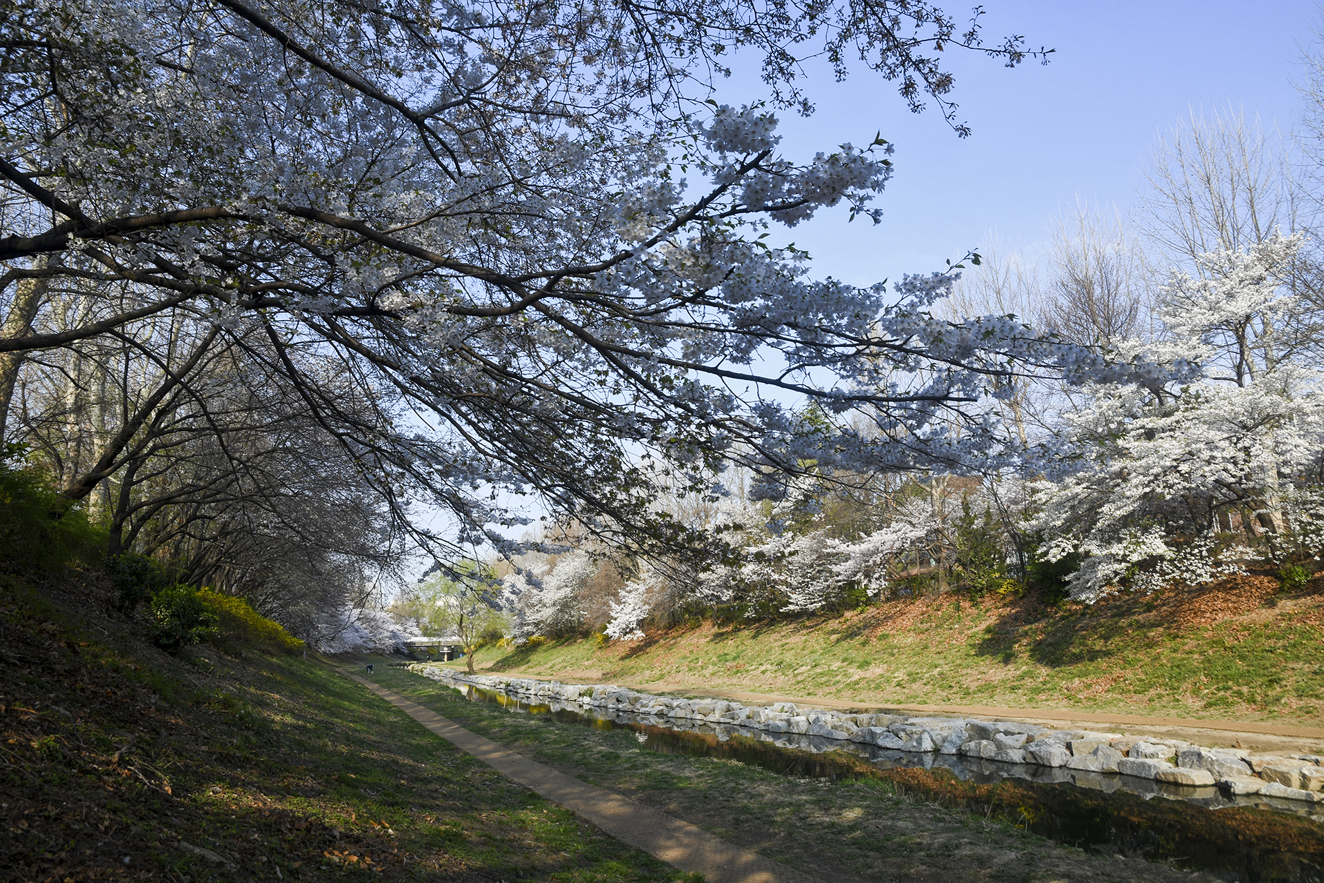 이제 막 꽃망울을 터트리는 나무도 있지만 대부분은 만개한 상태이다.