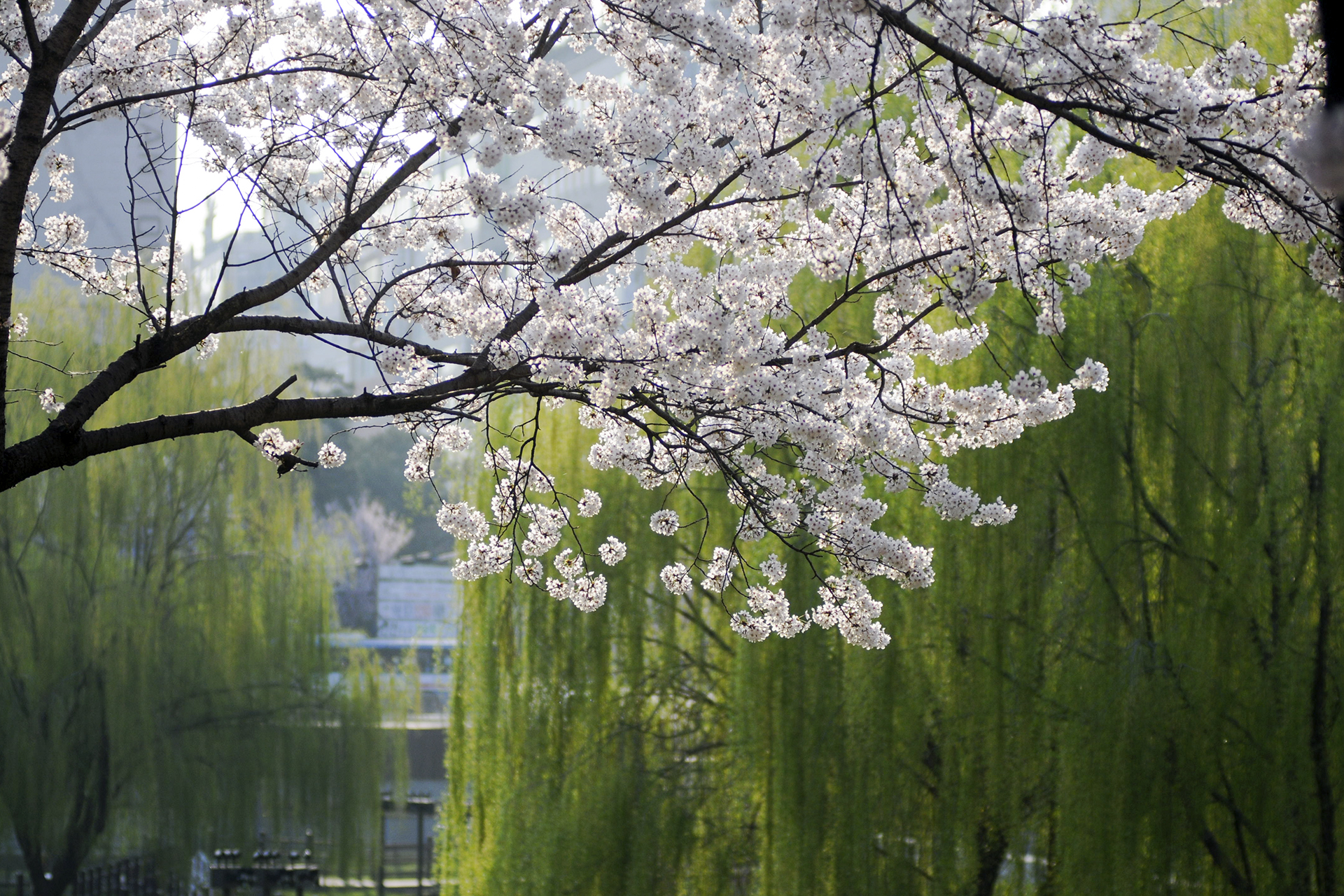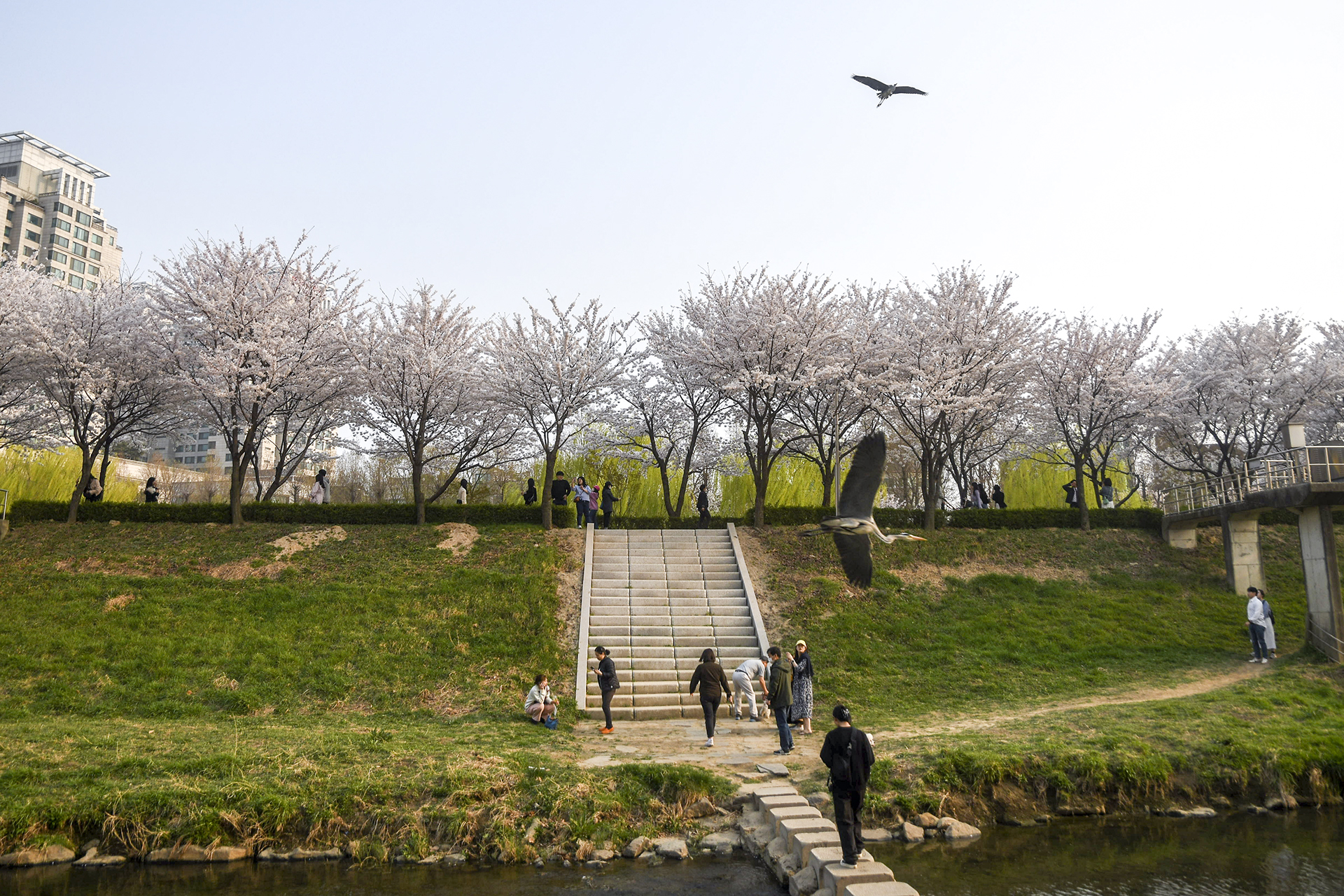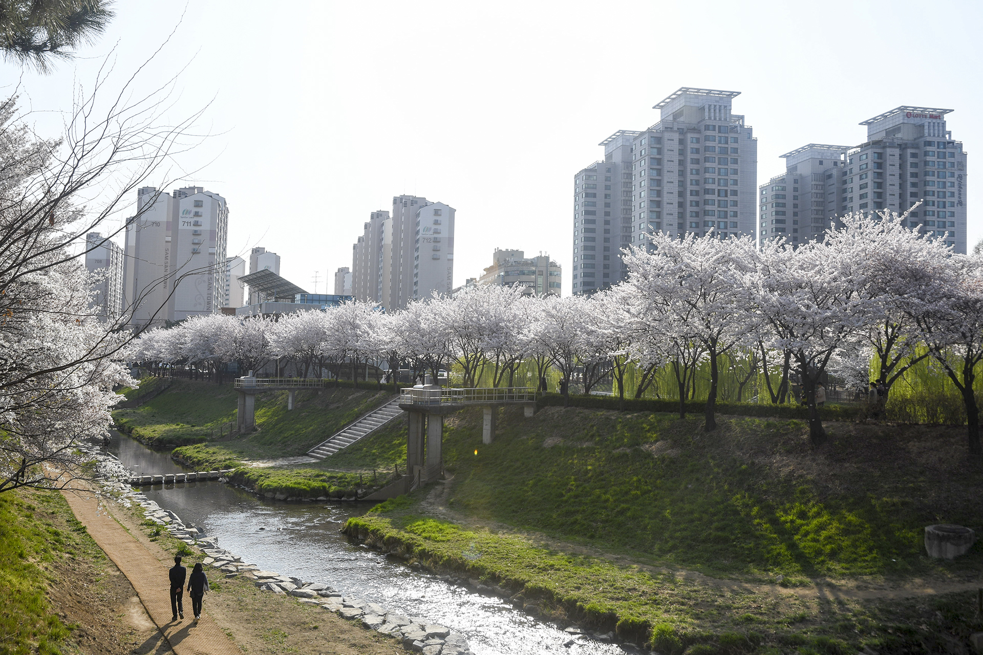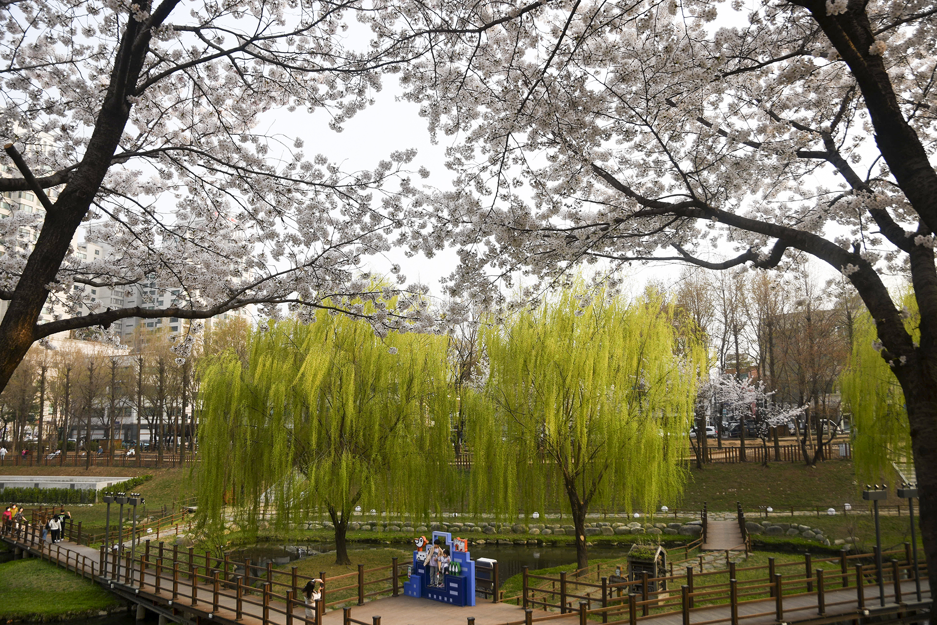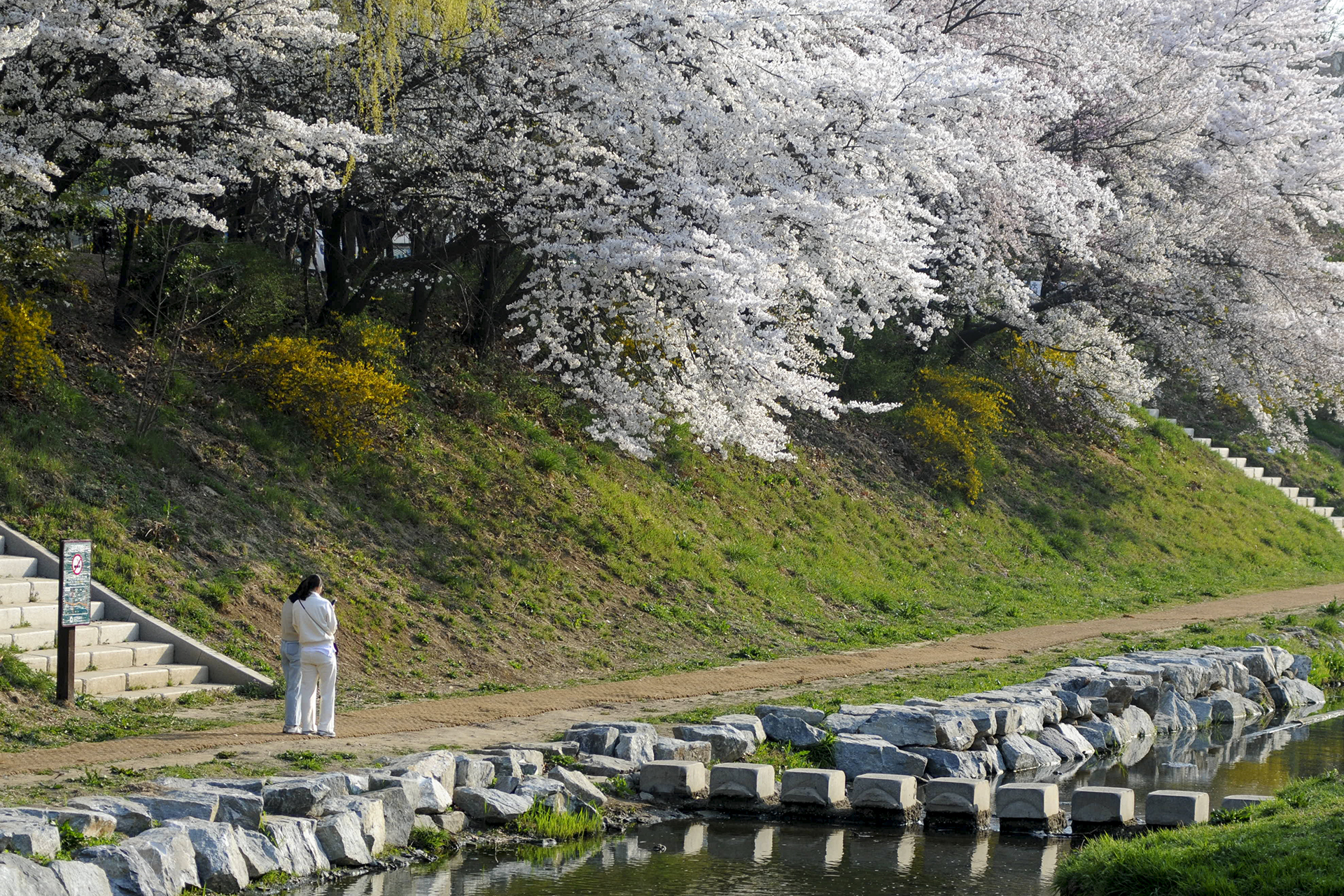 이제 막 꽃망울을 터트리는 나무도 있지만 대부분은 만개한 상태이다.