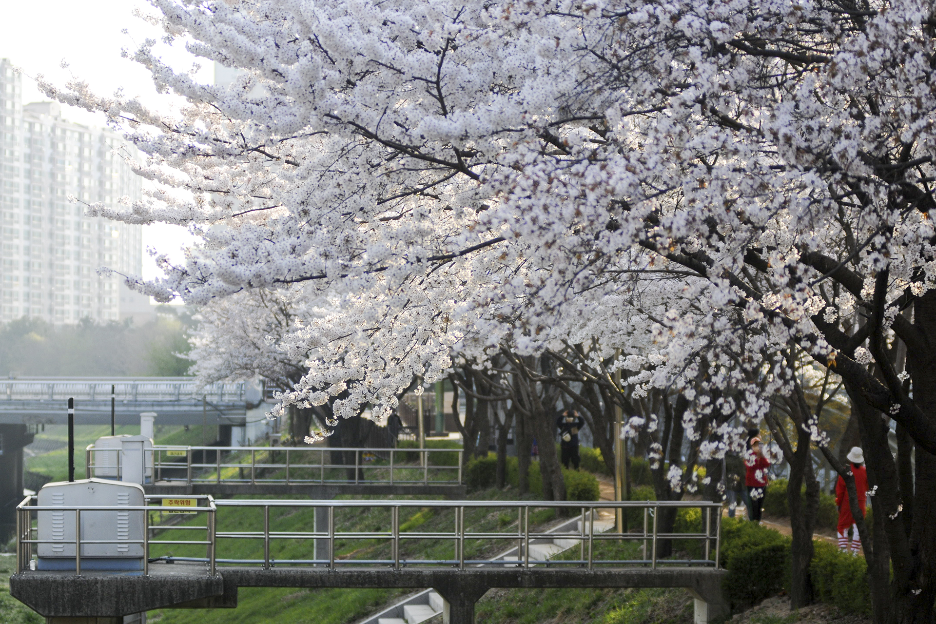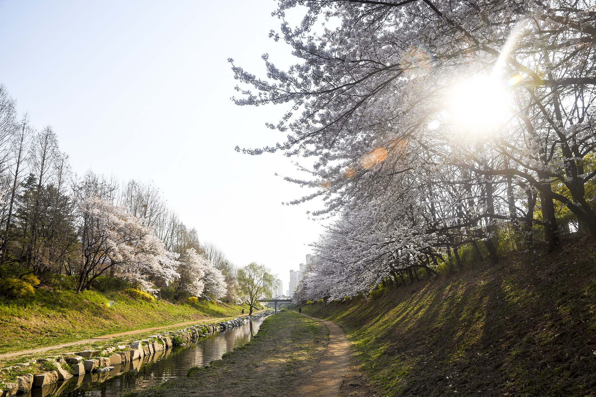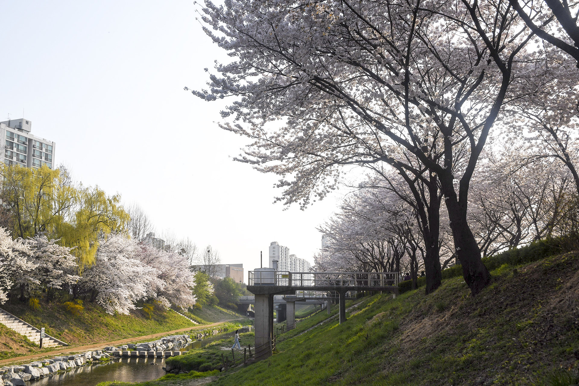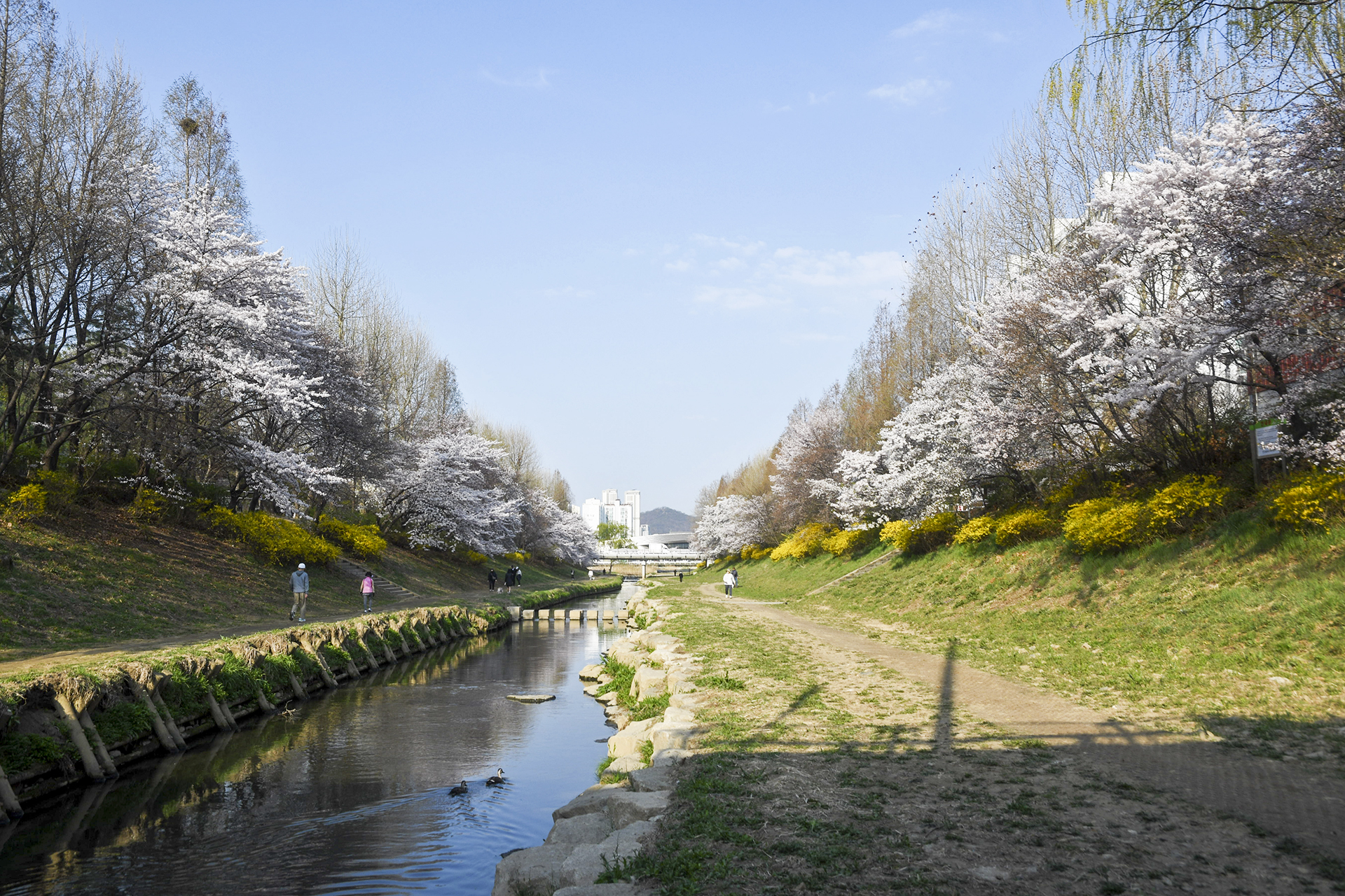굴포천 벚꽃길은 부평 굴포누리 기후변화체험관에서 부평구청 아래 습지까지 이어진다.