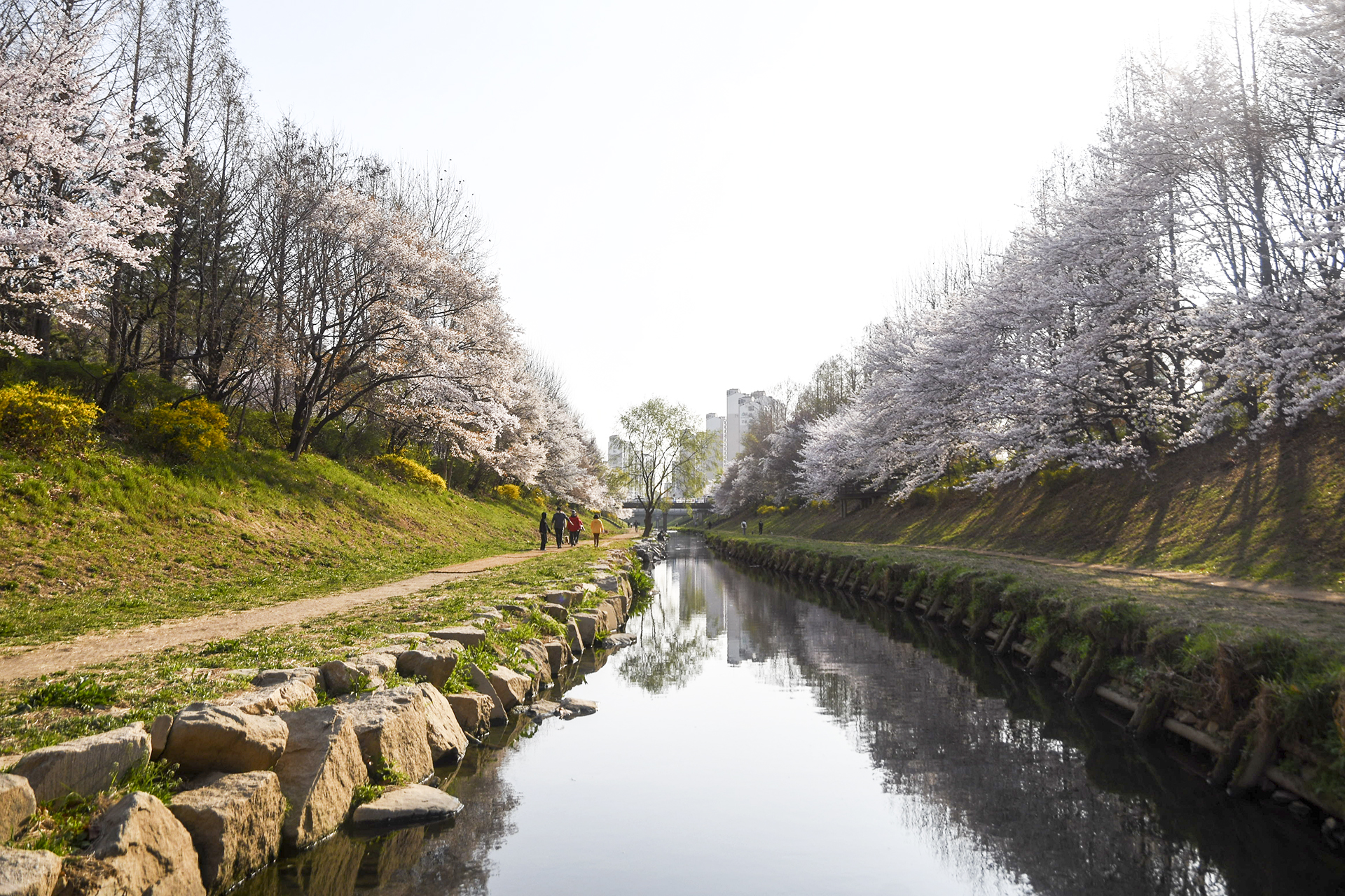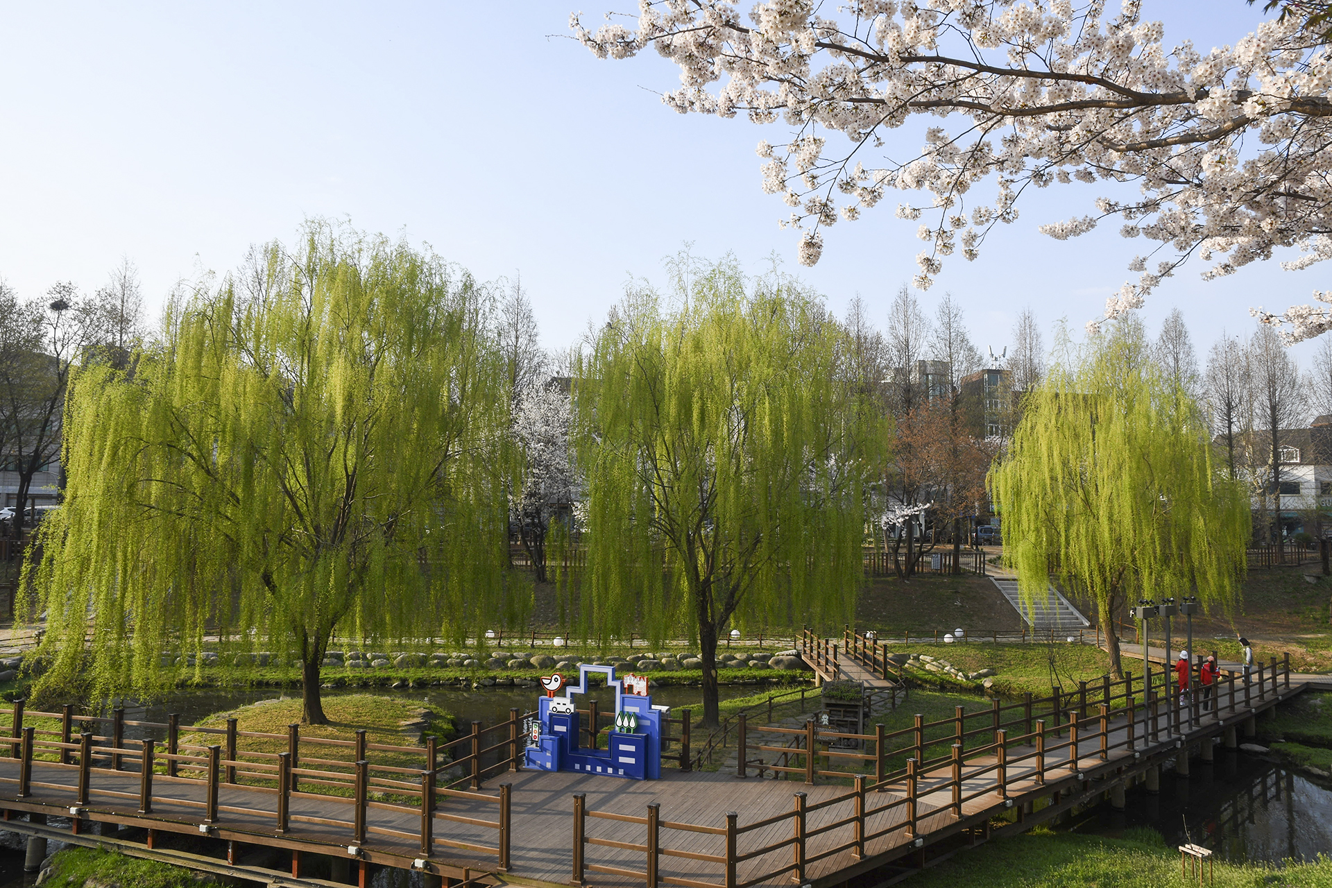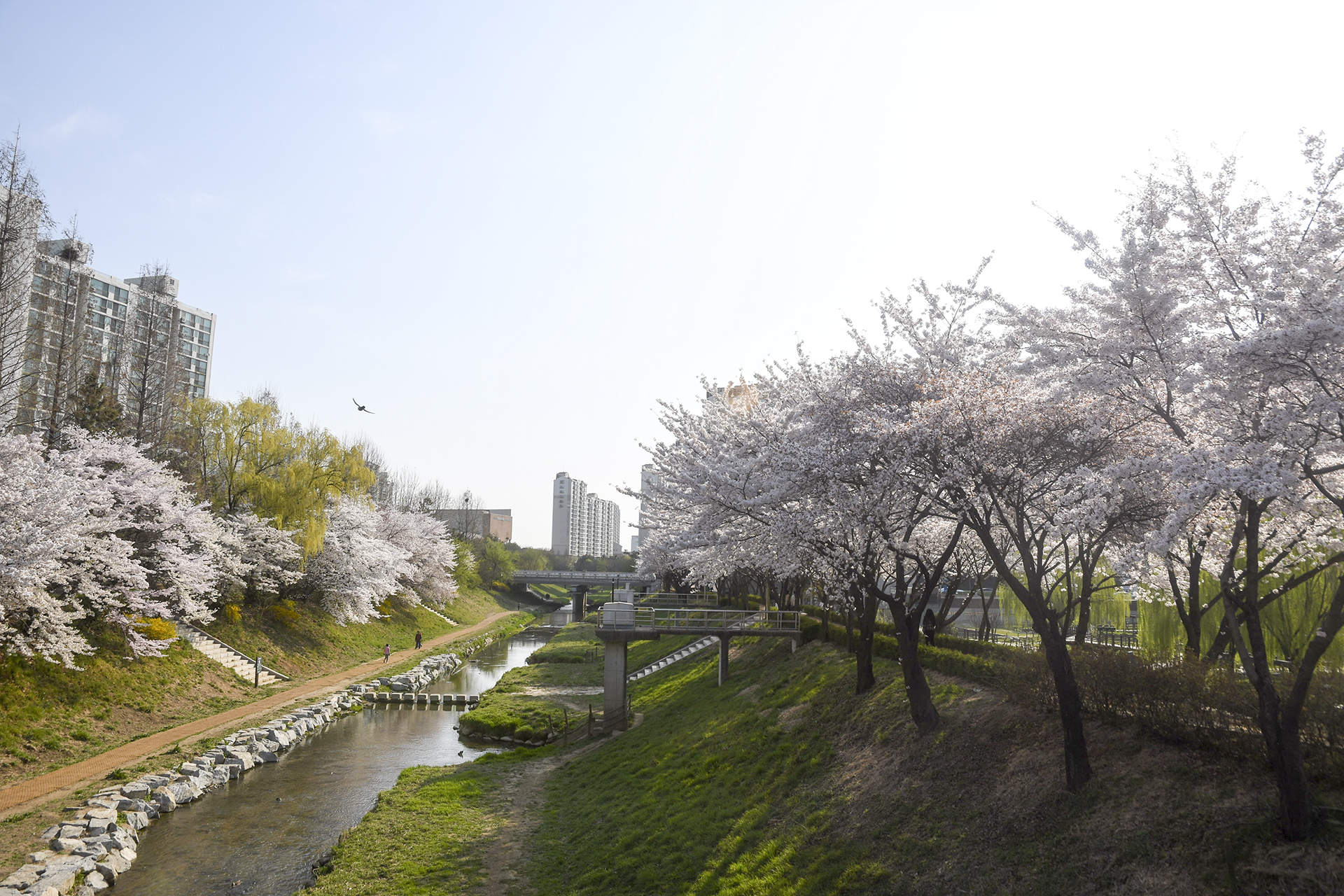 굴포천 벚꽃길은 부평 굴포누리 기후변화체험관에서 부평구청 아래 습지까지 이어진다.