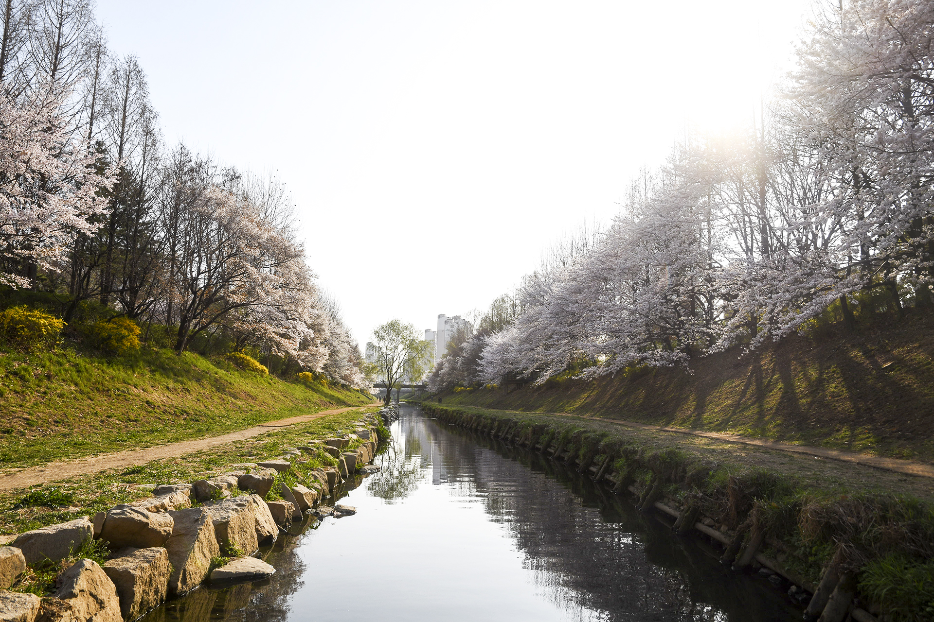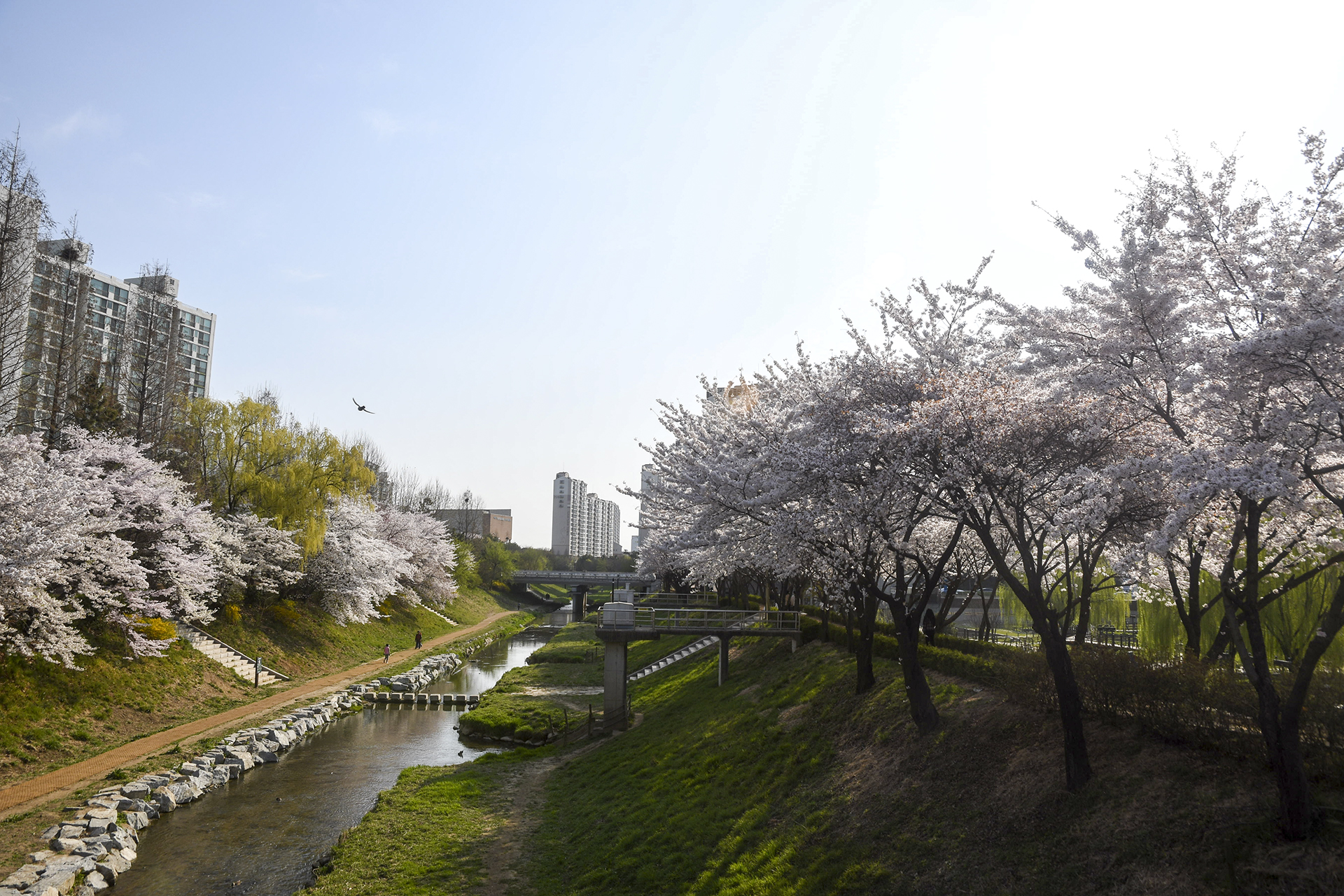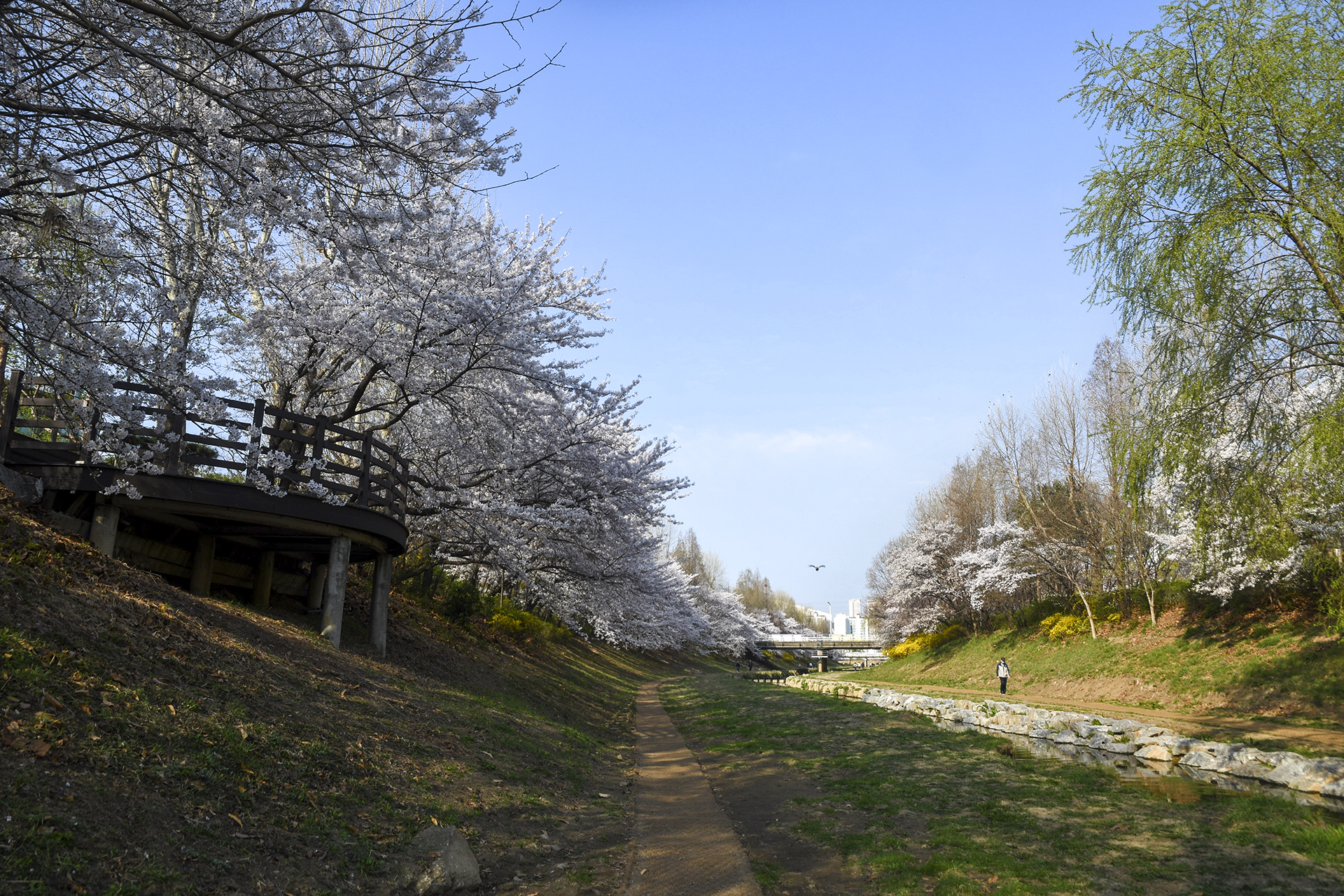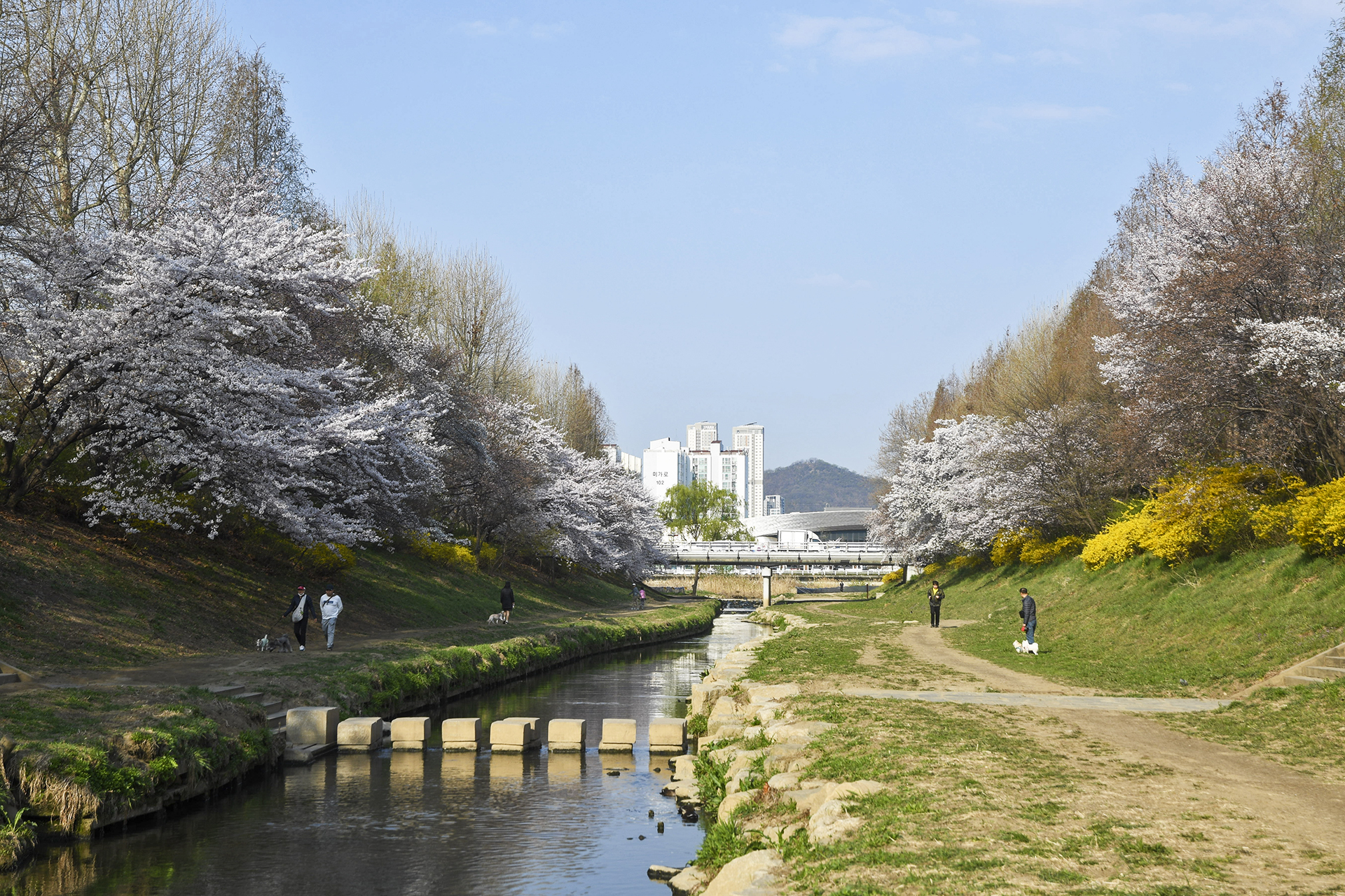 굴포천 벚꽃길은 부평 굴포누리 기후변화체험관에서 부평구청 아래 습지까지 이어진다.