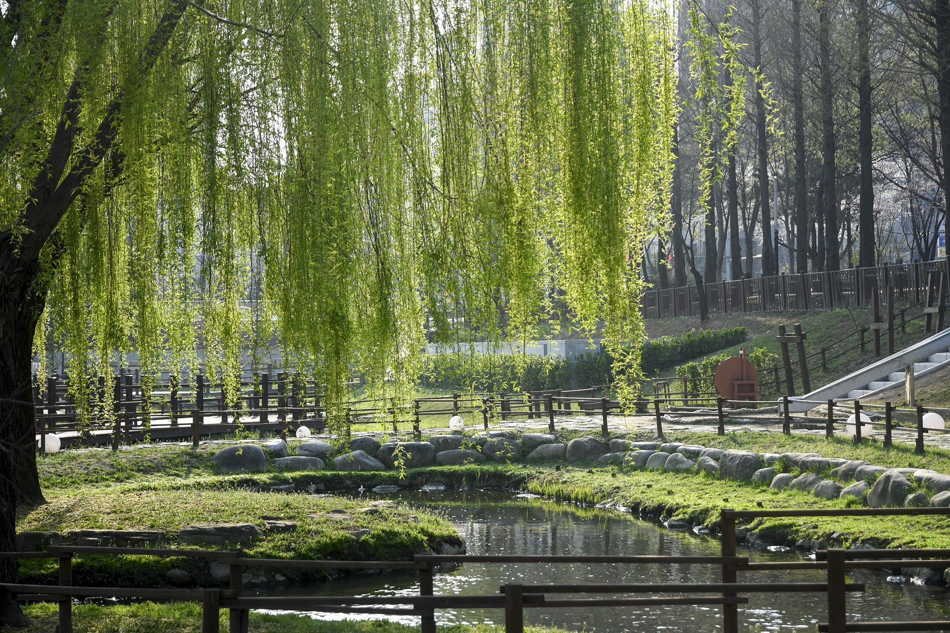 수양버들 한그루가 포인트가 되어주는 곳이다.