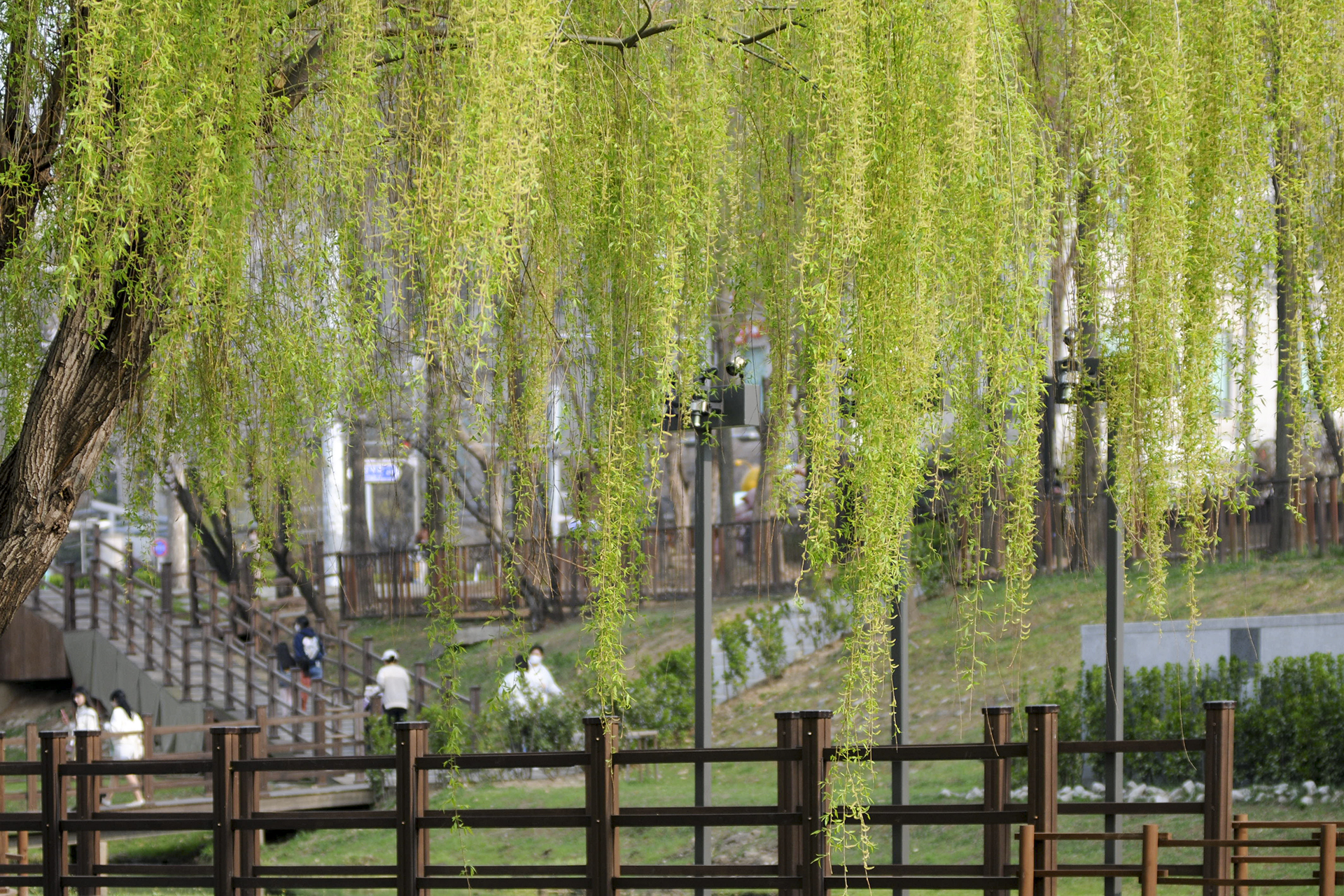 세그루의 수양버들이 멋지게 서있는 산책로로 야간에는 조명이 들어오는 곳이다.