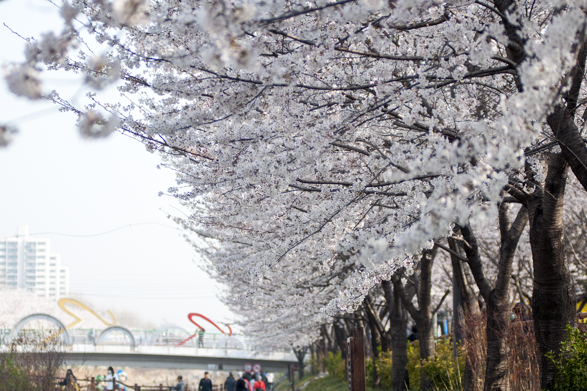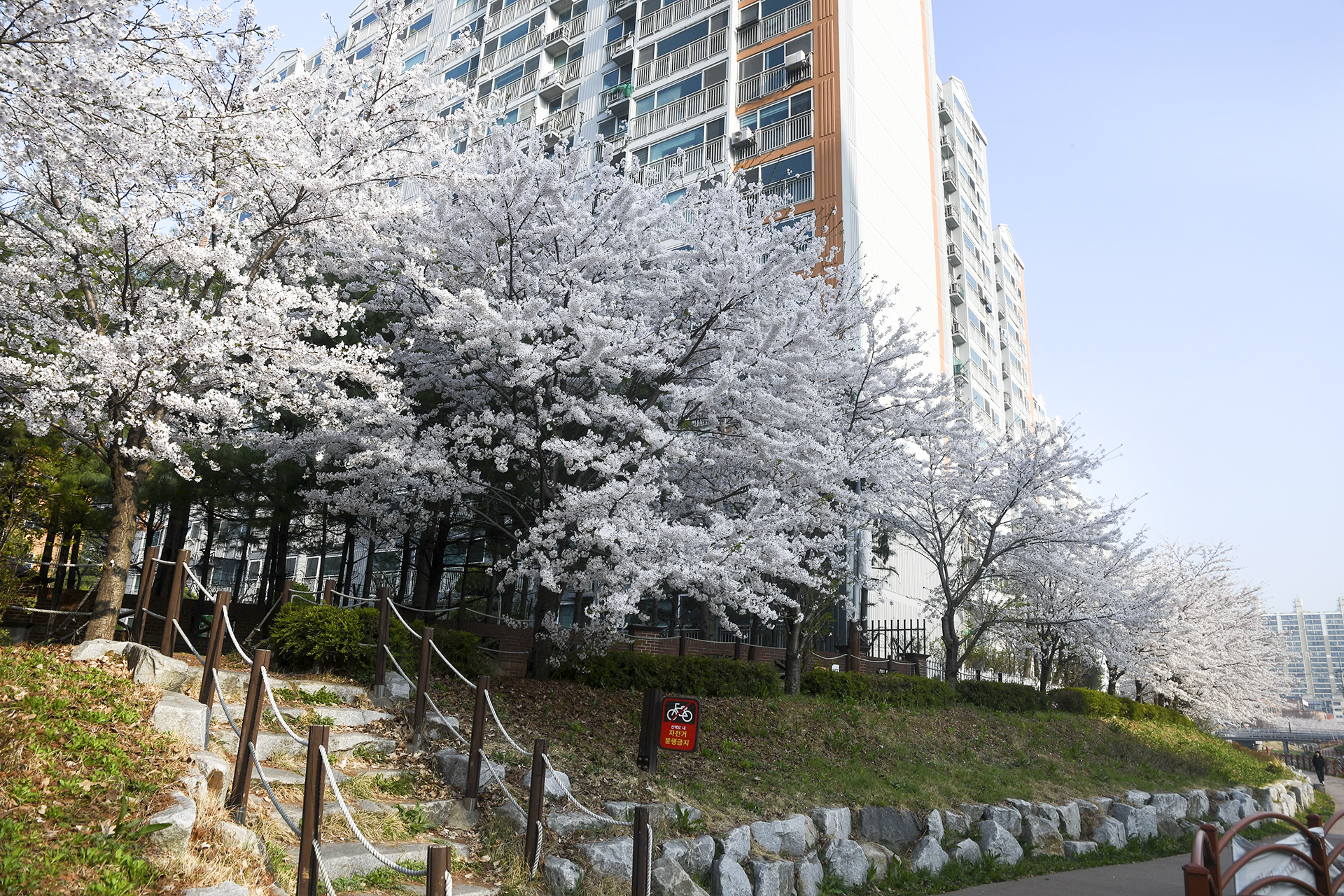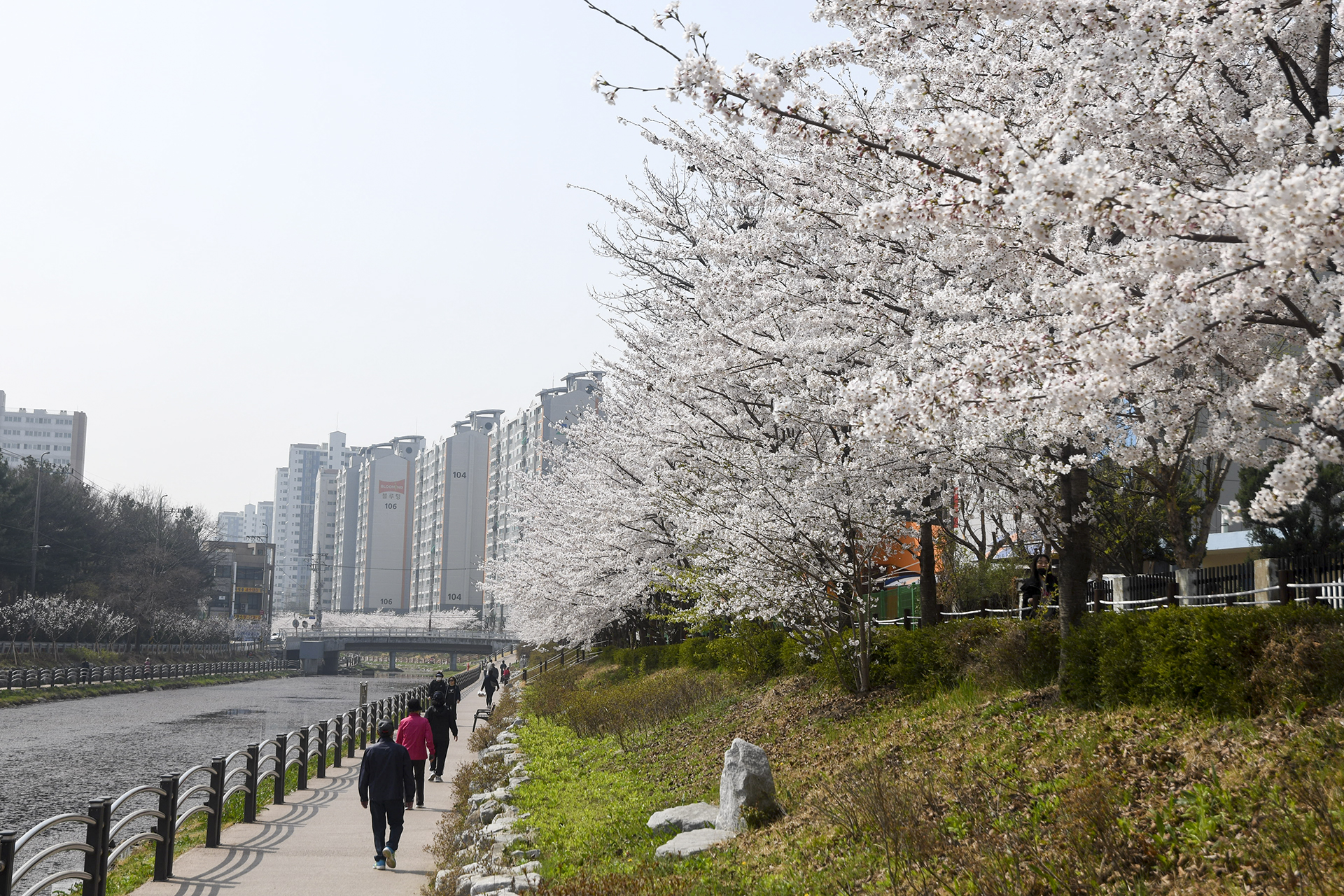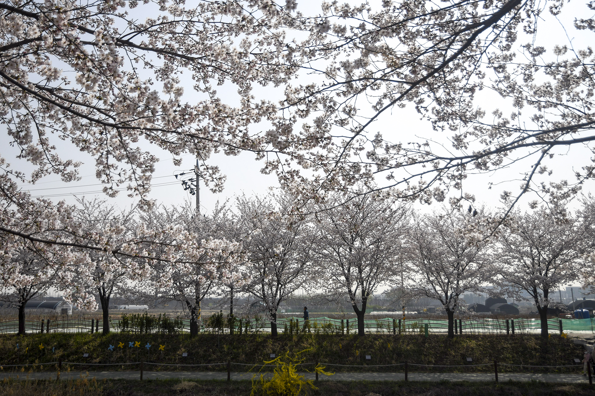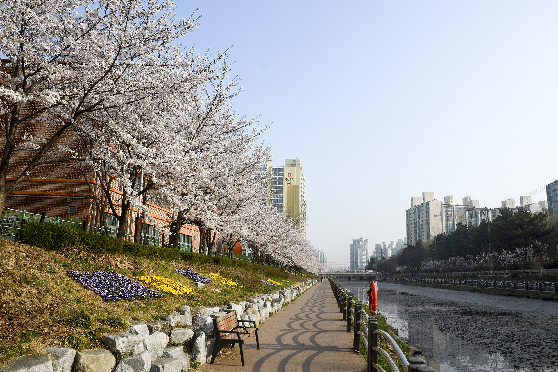 건너편 길에는 식재한지 얼마 되지않은 작은 벚나무들이 올망졸망 꽃을 피웠다.