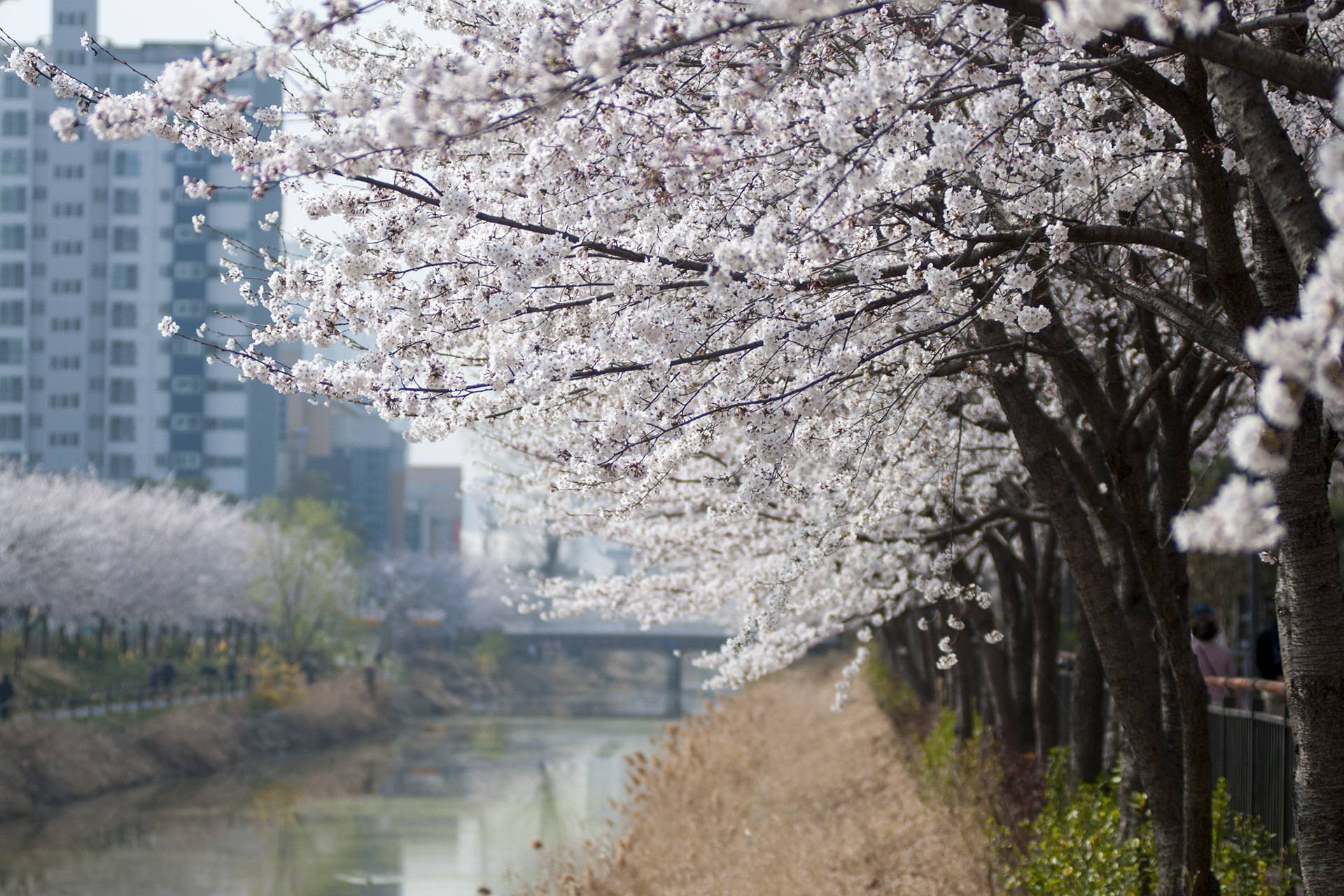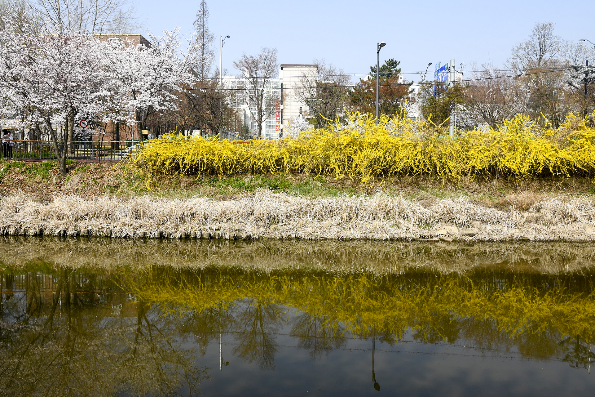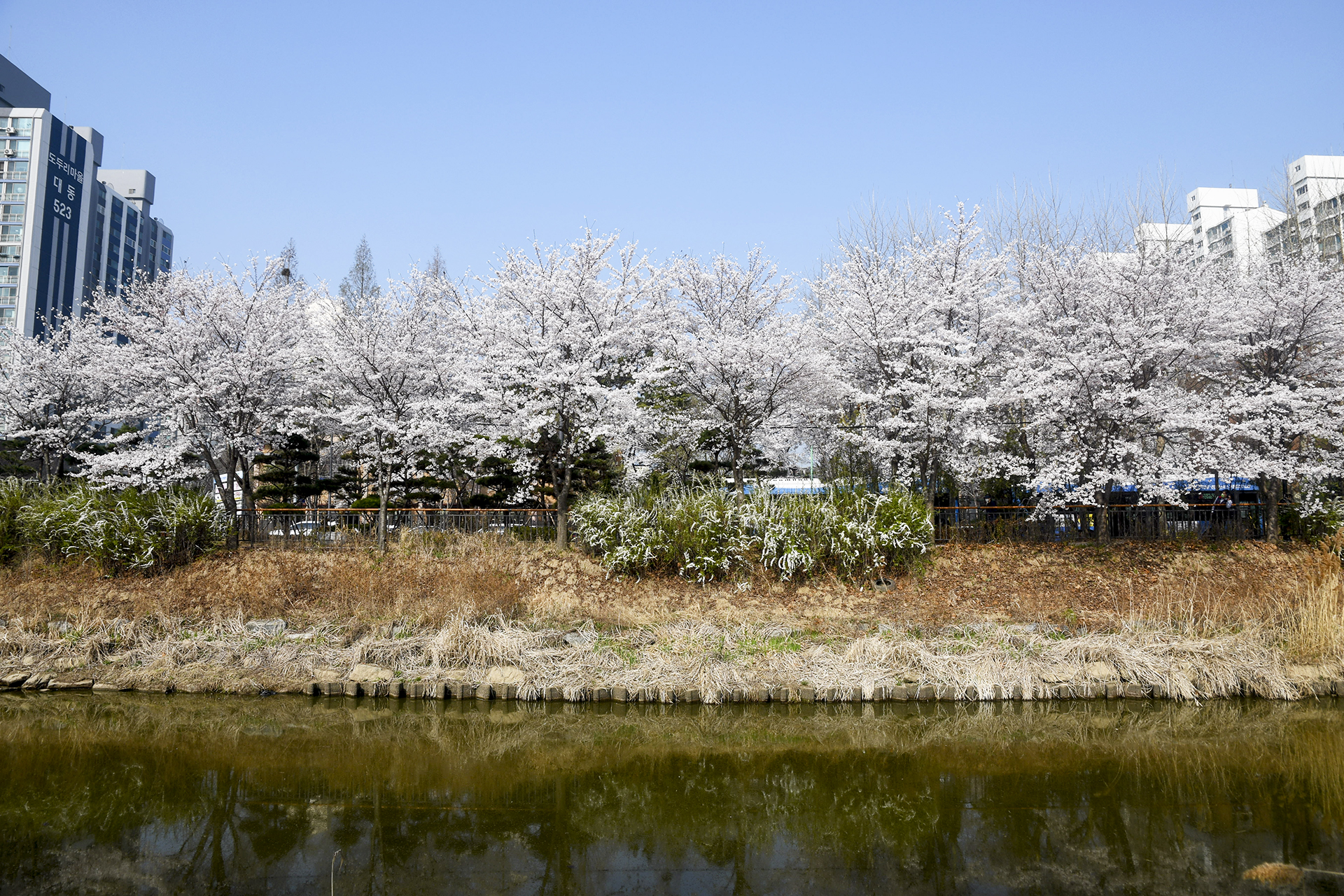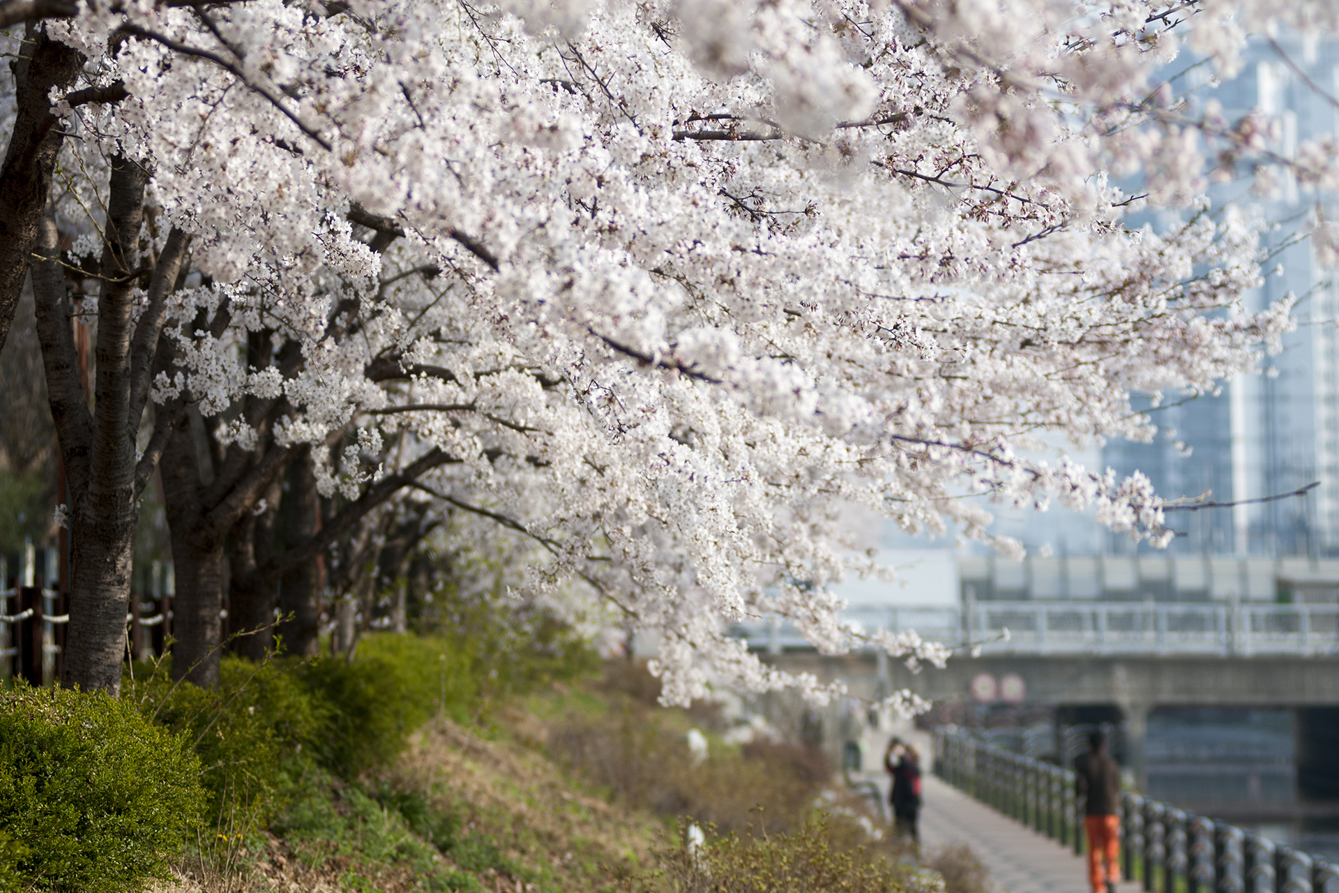 건너편 길에는 식재한지 얼마 되지않은 작은 벚나무들이 올망졸망 꽃을 피웠다.