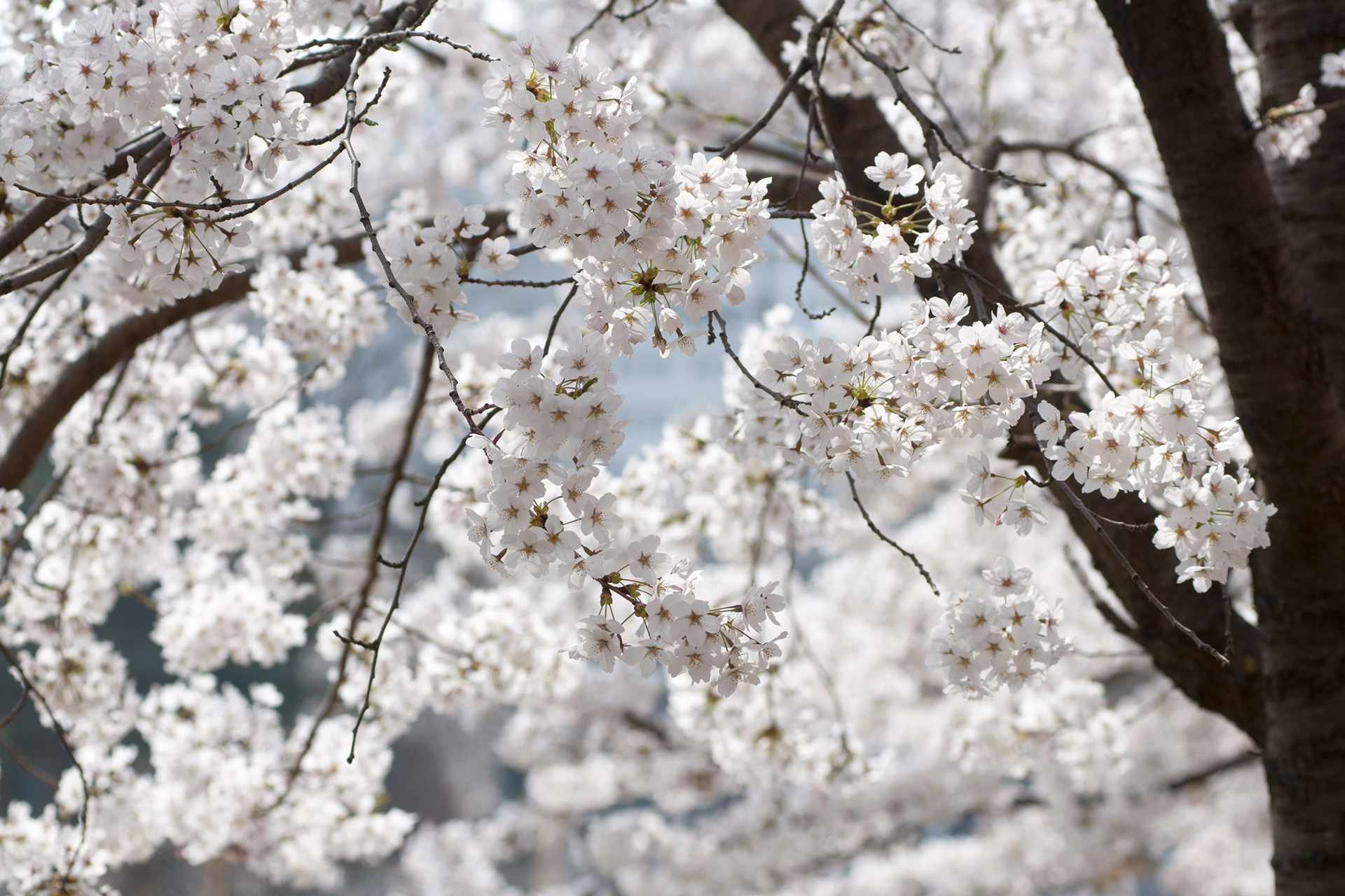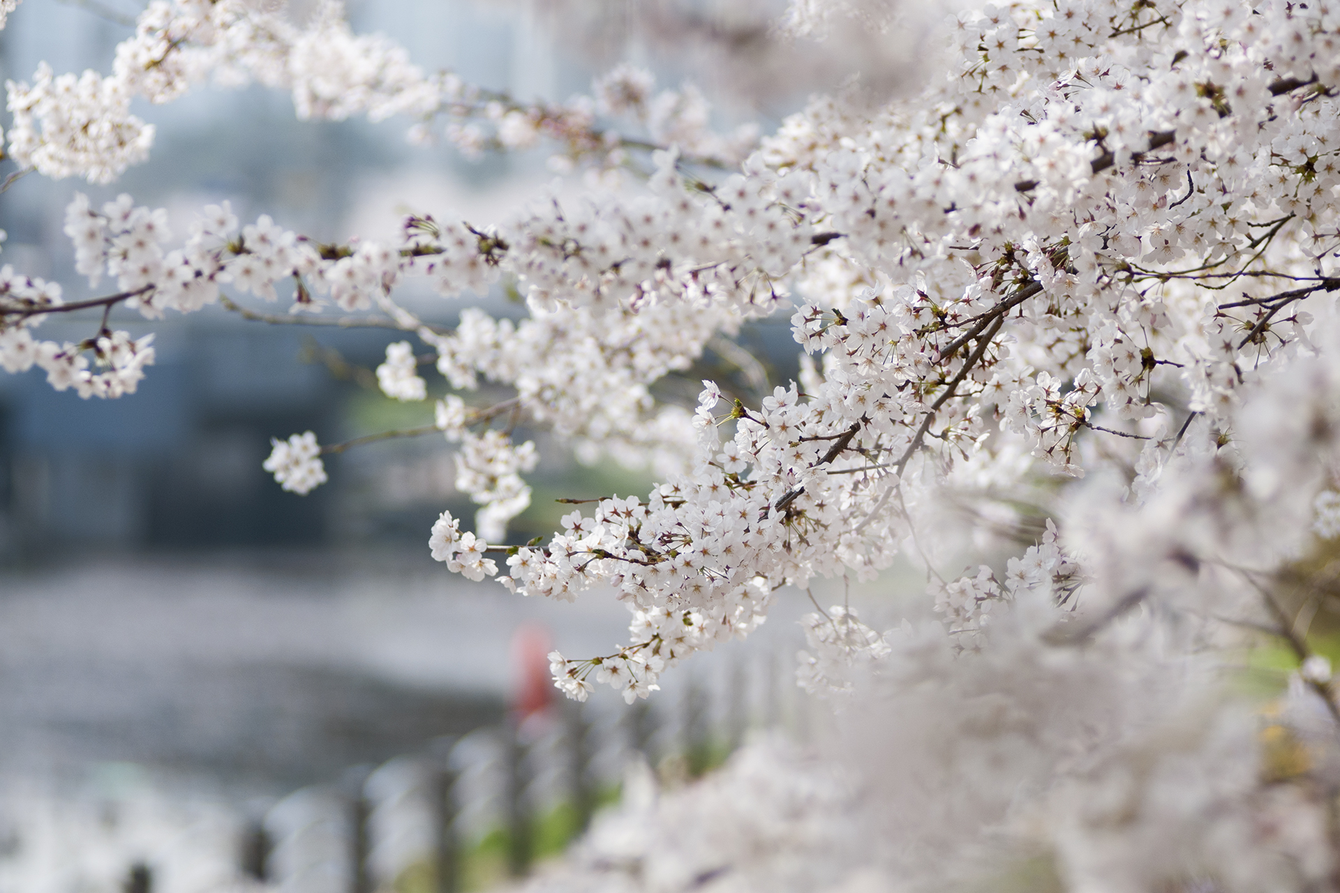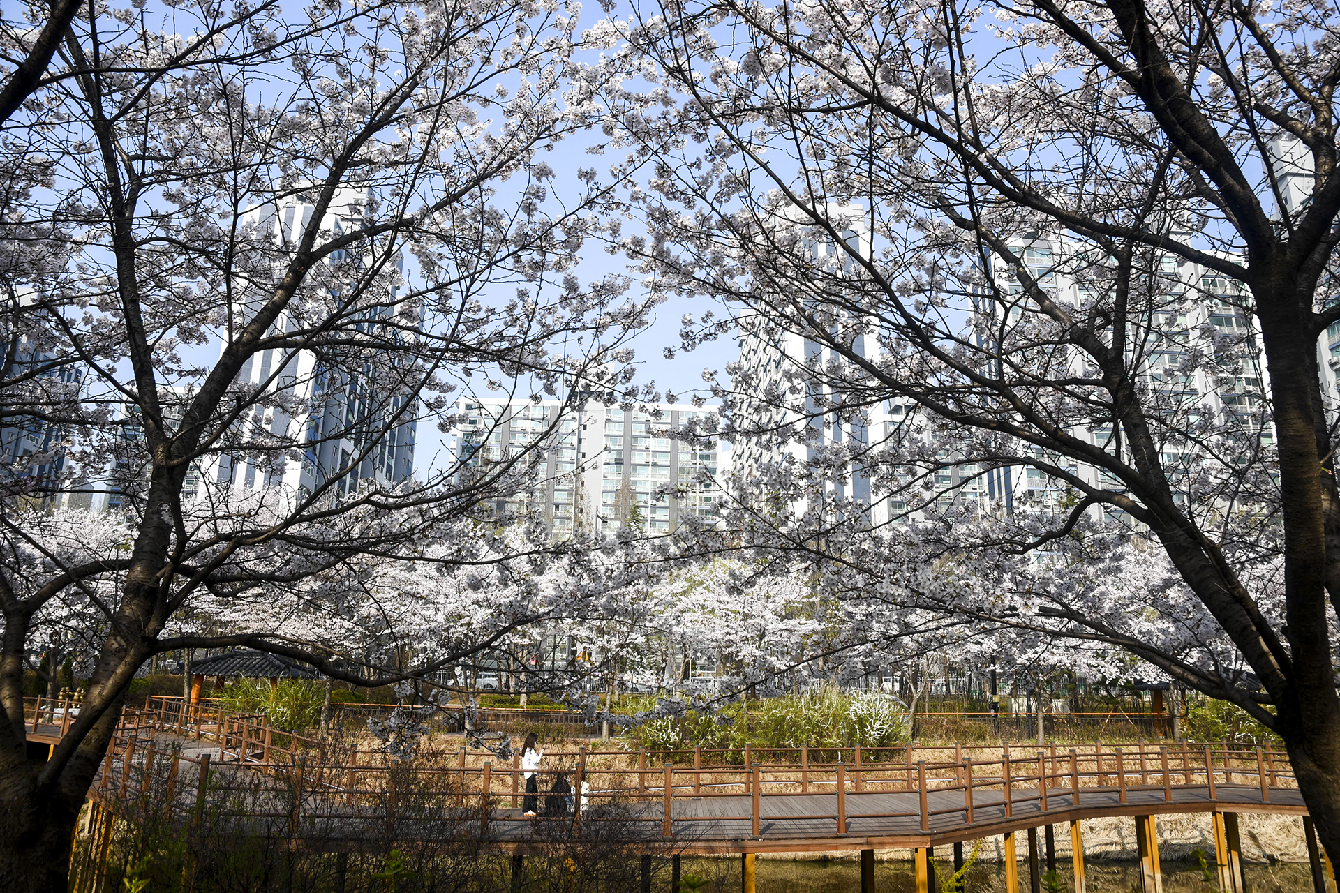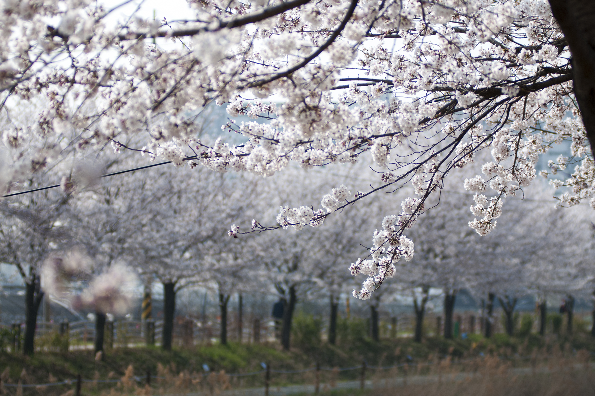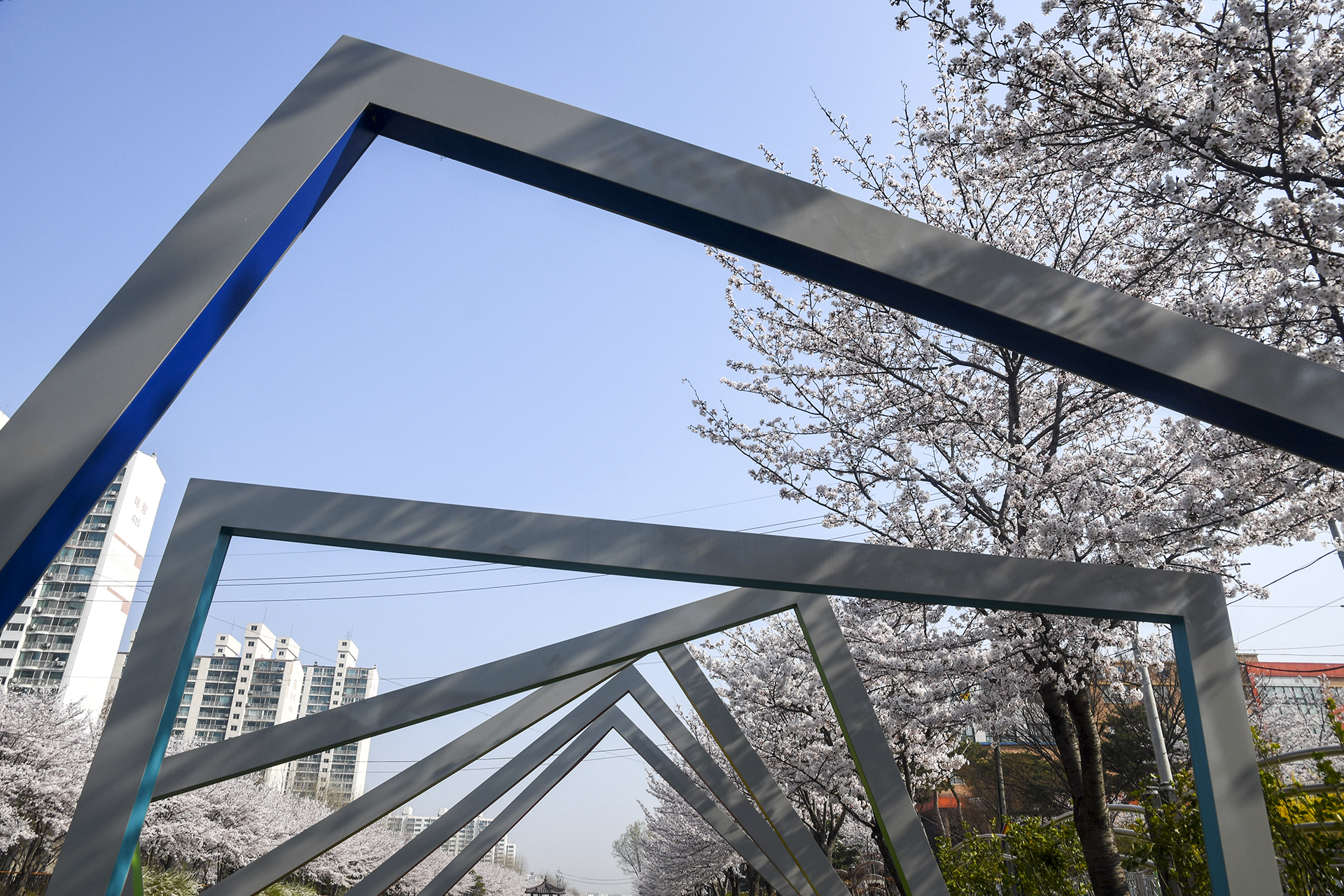 건너편 길에는 식재한지 얼마 되지않은 작은 벚나무들이 올망졸망 꽃을 피웠다.