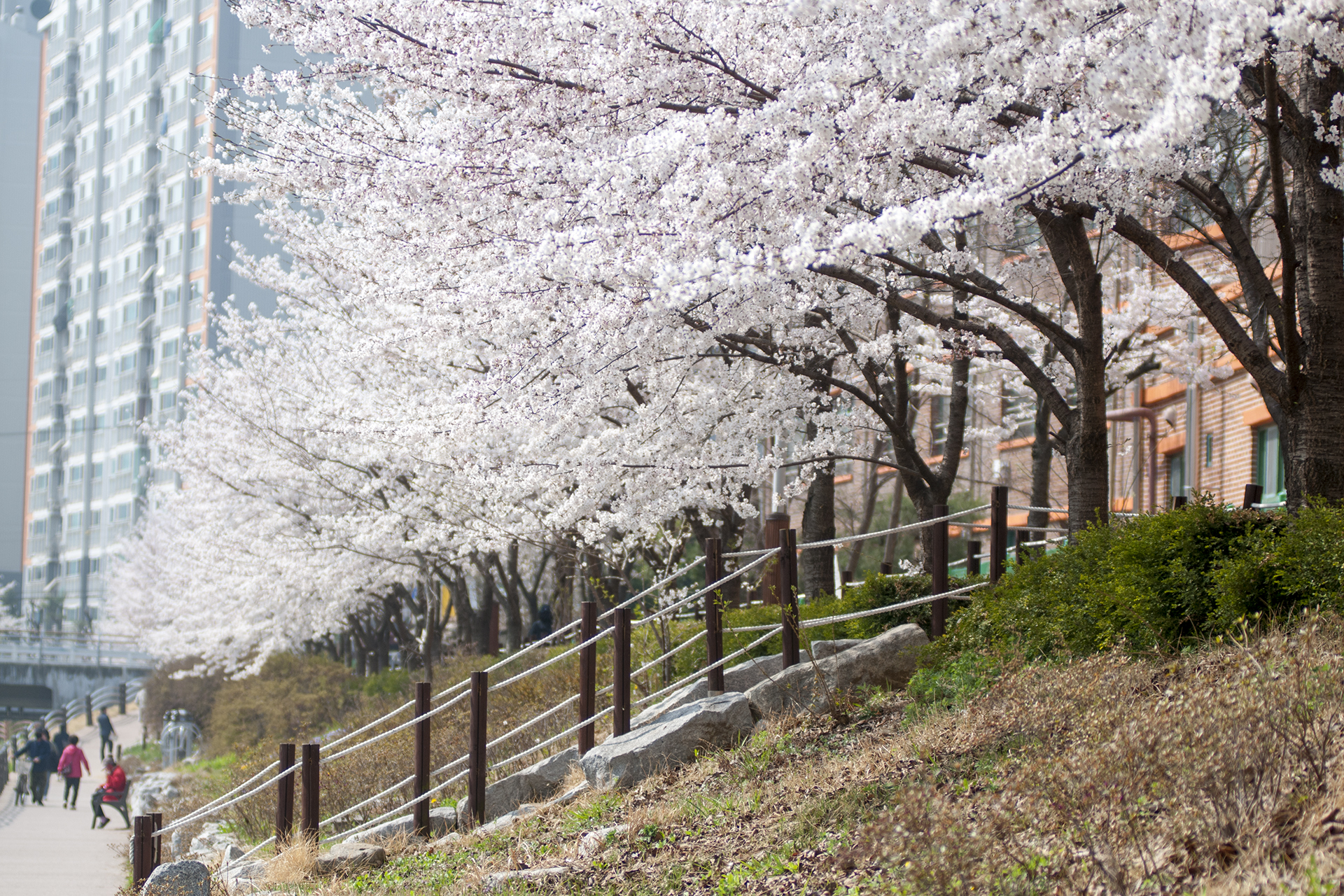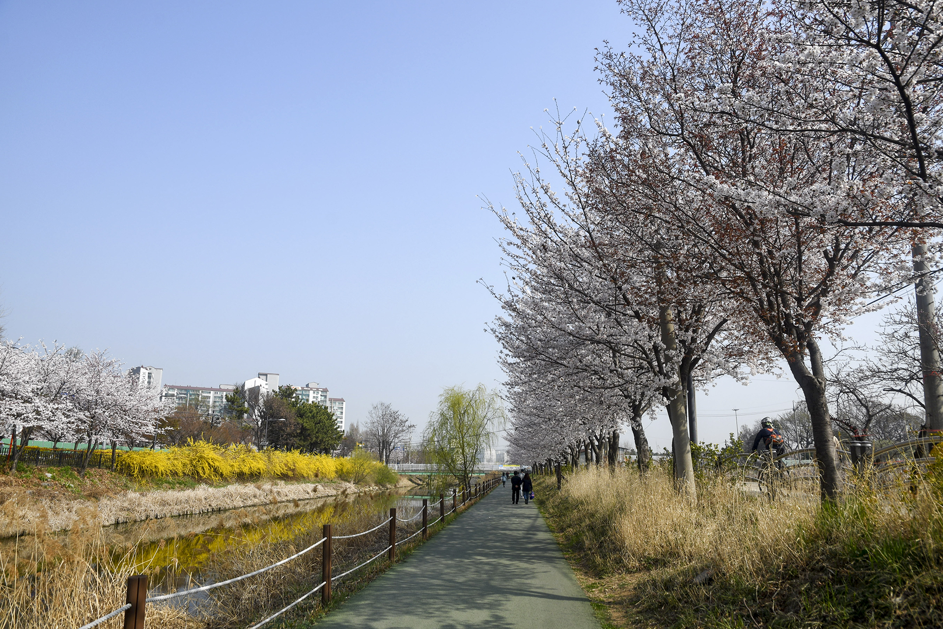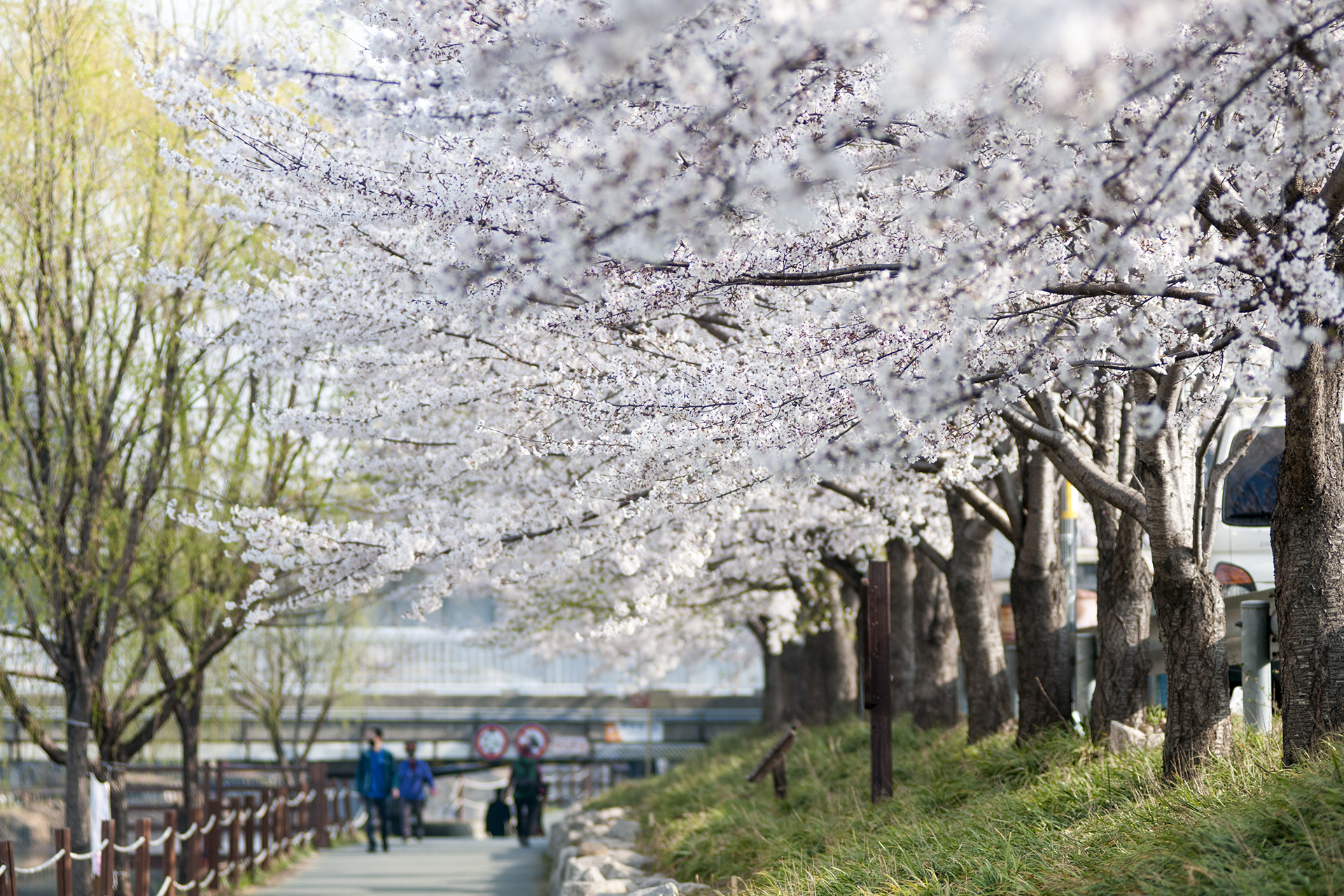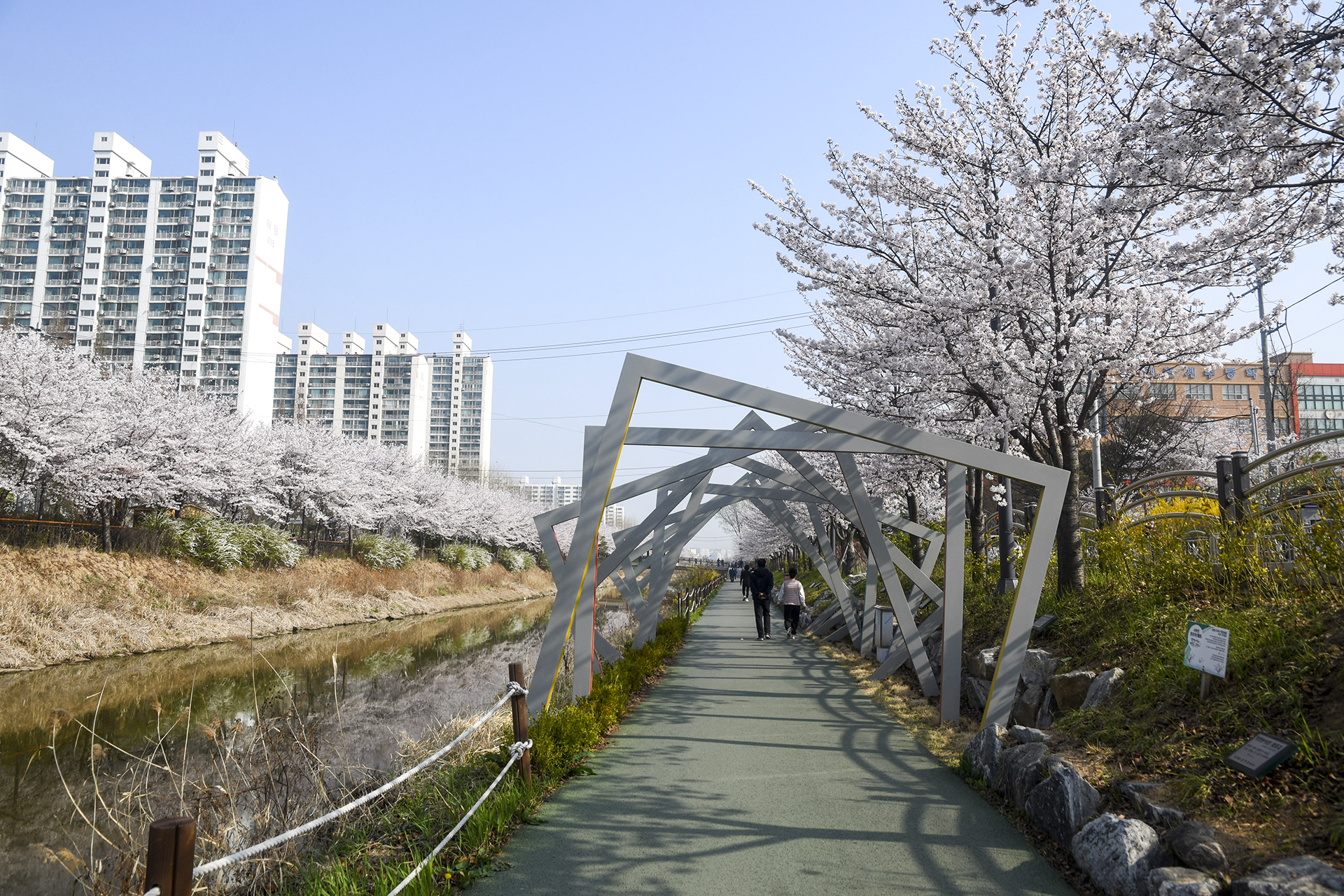 길게 뻗은 산책길은 동네 주민들의 산책코스로 인기있는 길이지만 3km 구간에 벚꽃이 피는 봄날이면 벚꽃 명소로 손꼽을 만큼 멋진 길이 된다.