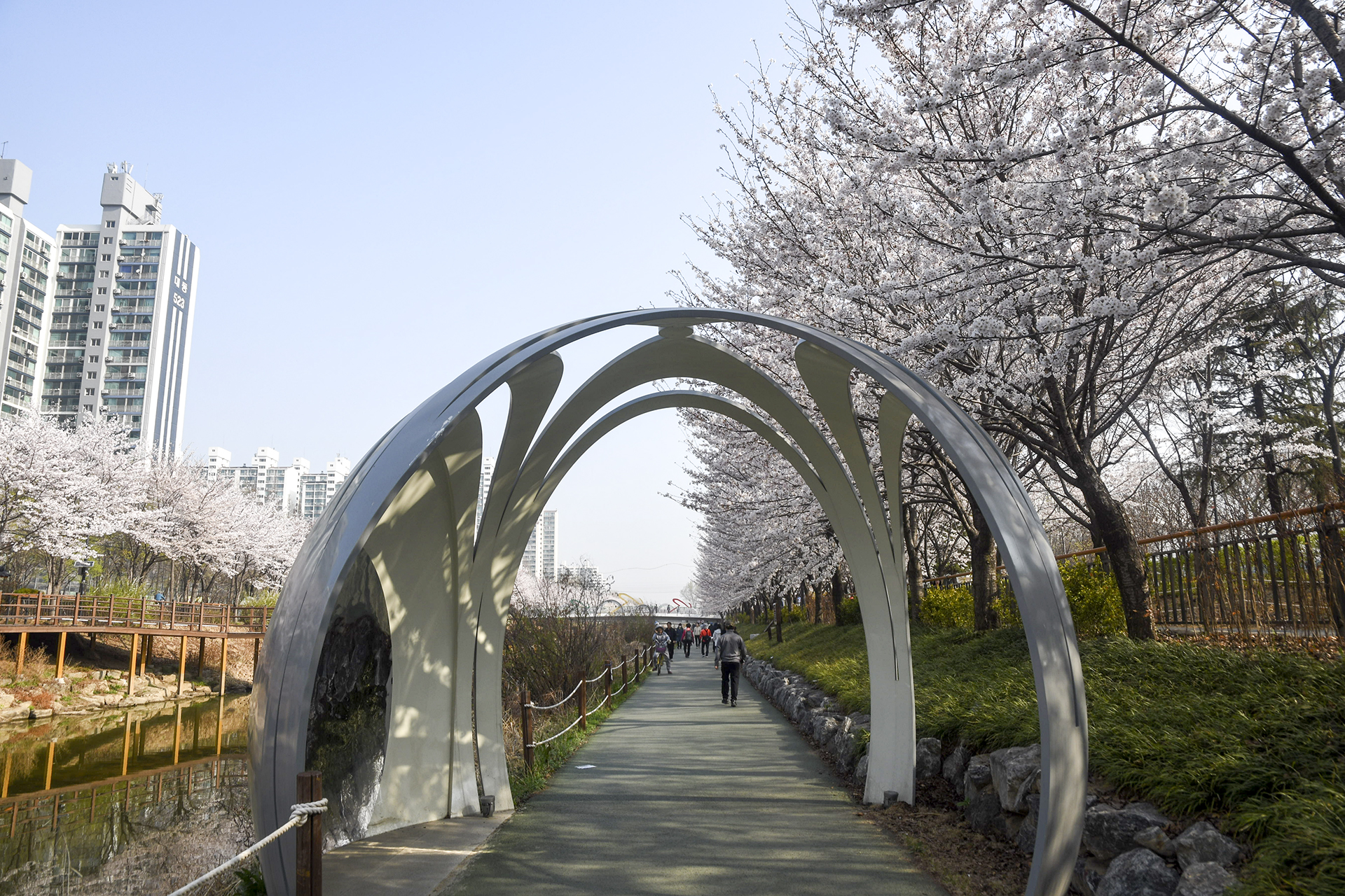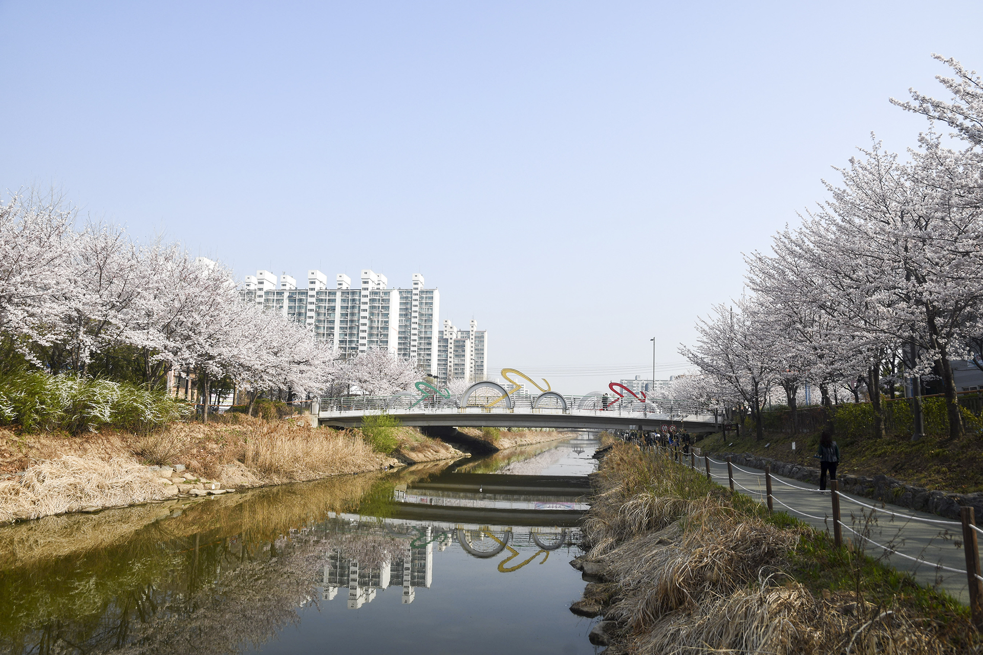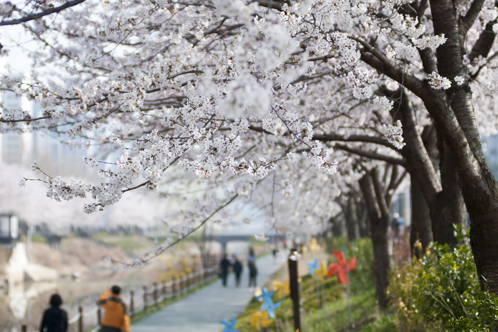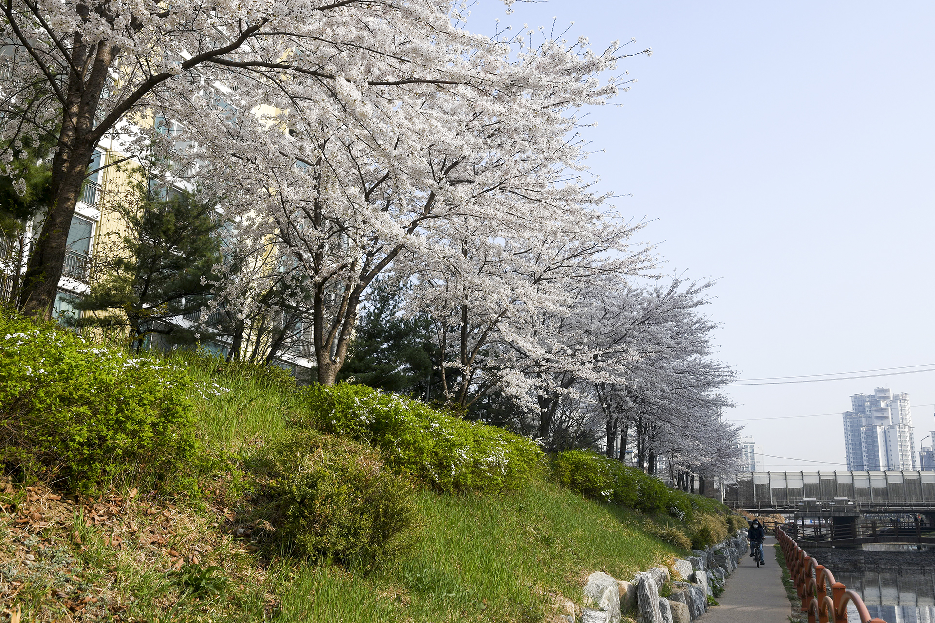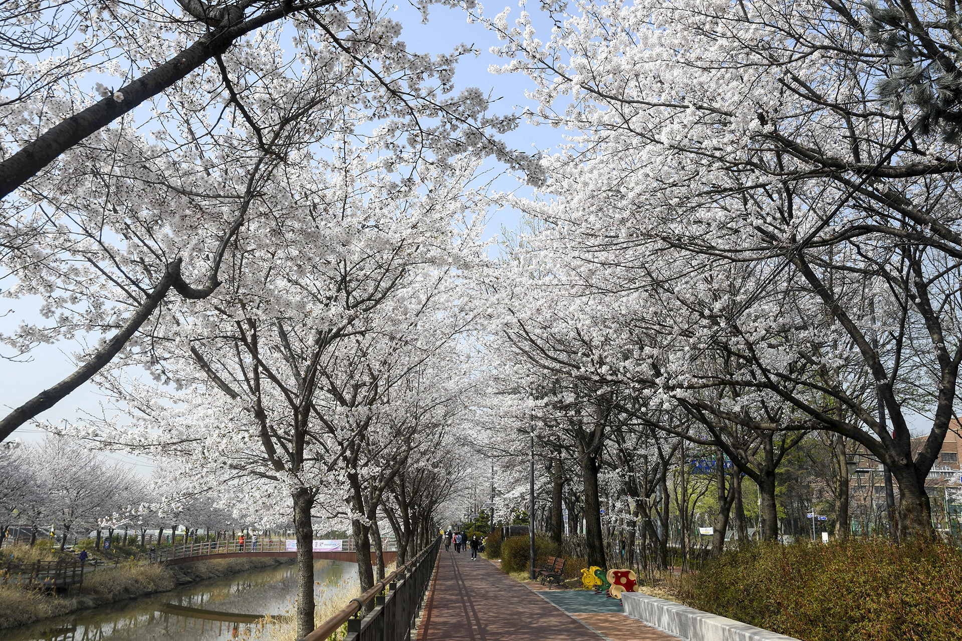 길게 뻗은 산책길은 동네 주민들의 산책코스로 인기있는 길이지만 3km 구간에 벚꽃이 피는 봄날이면 벚꽃 명소로 손꼽을 만큼 멋진 길이 된다.
