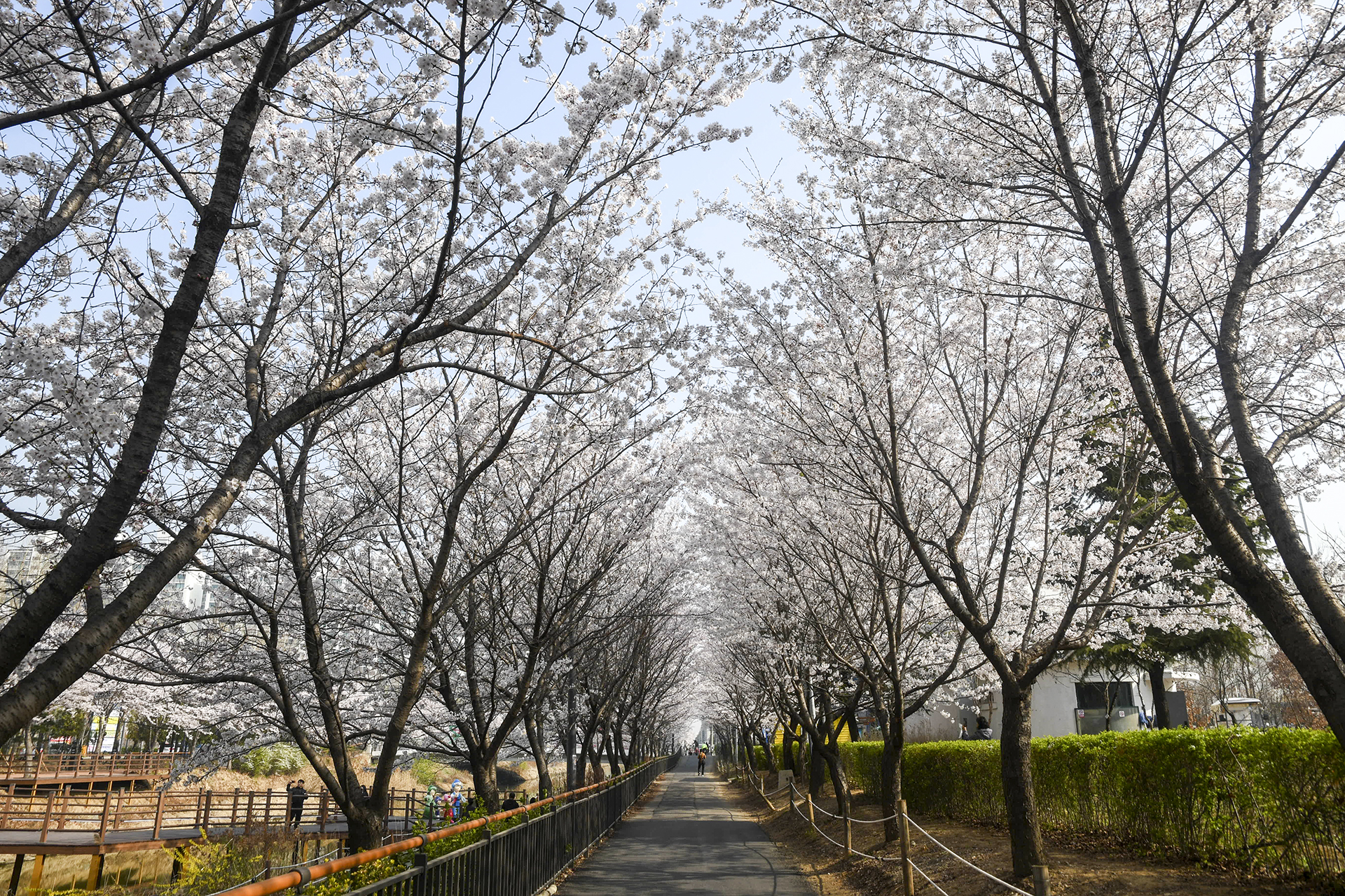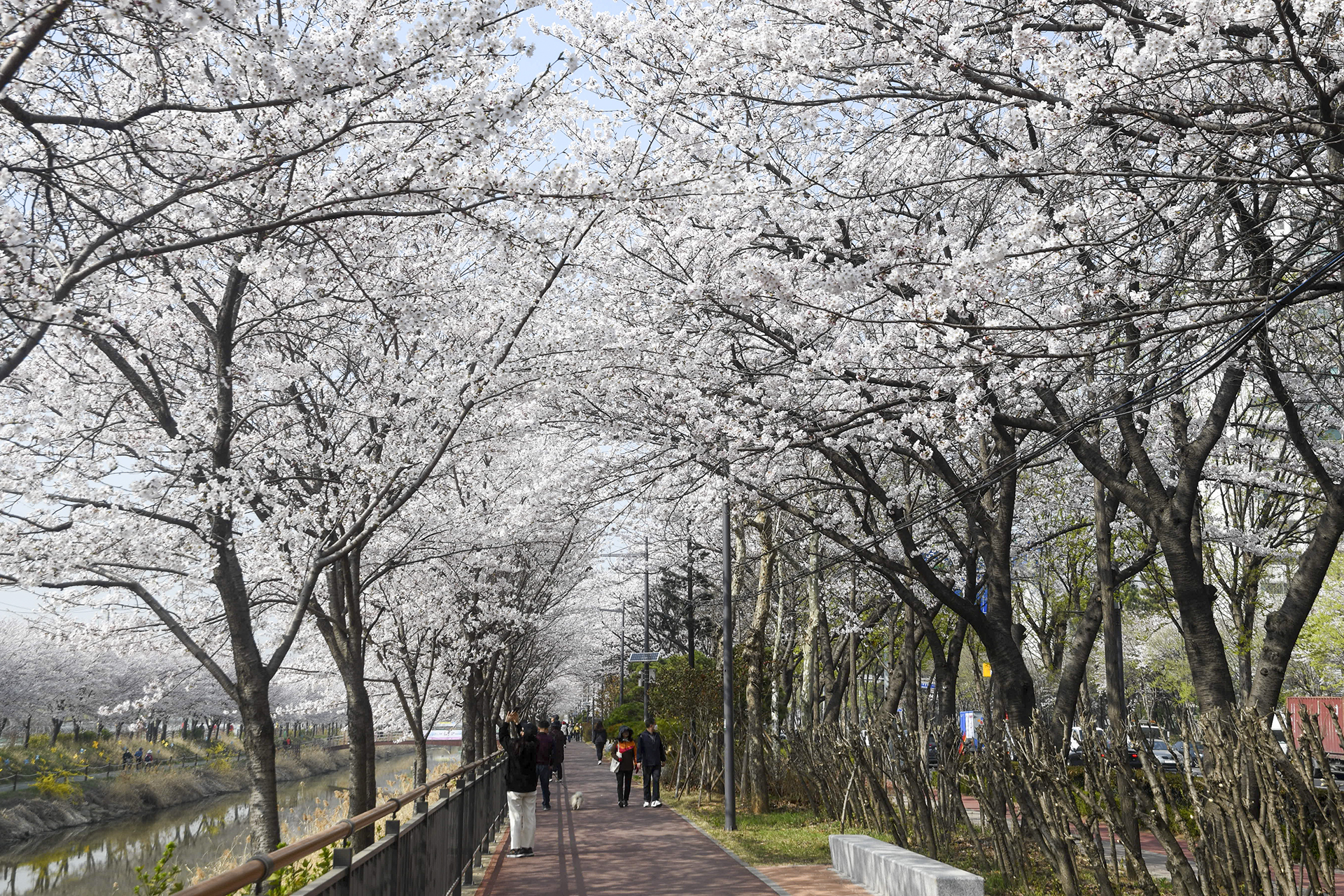 벚꽃이 터널을 만들어주어 장관을 이룬다.