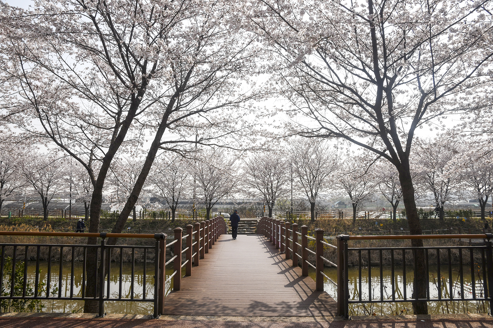10분 정도 걷다가 한번더 다리를 건너 벚꽃 아래로 걷는다.