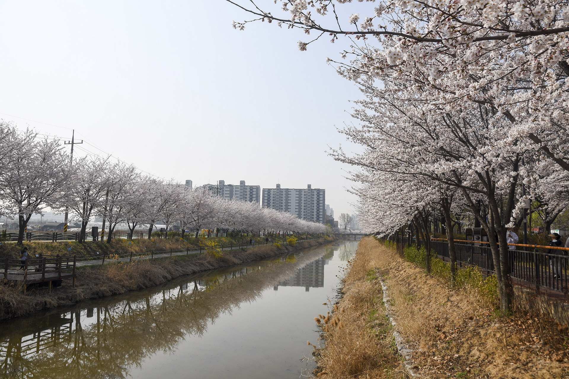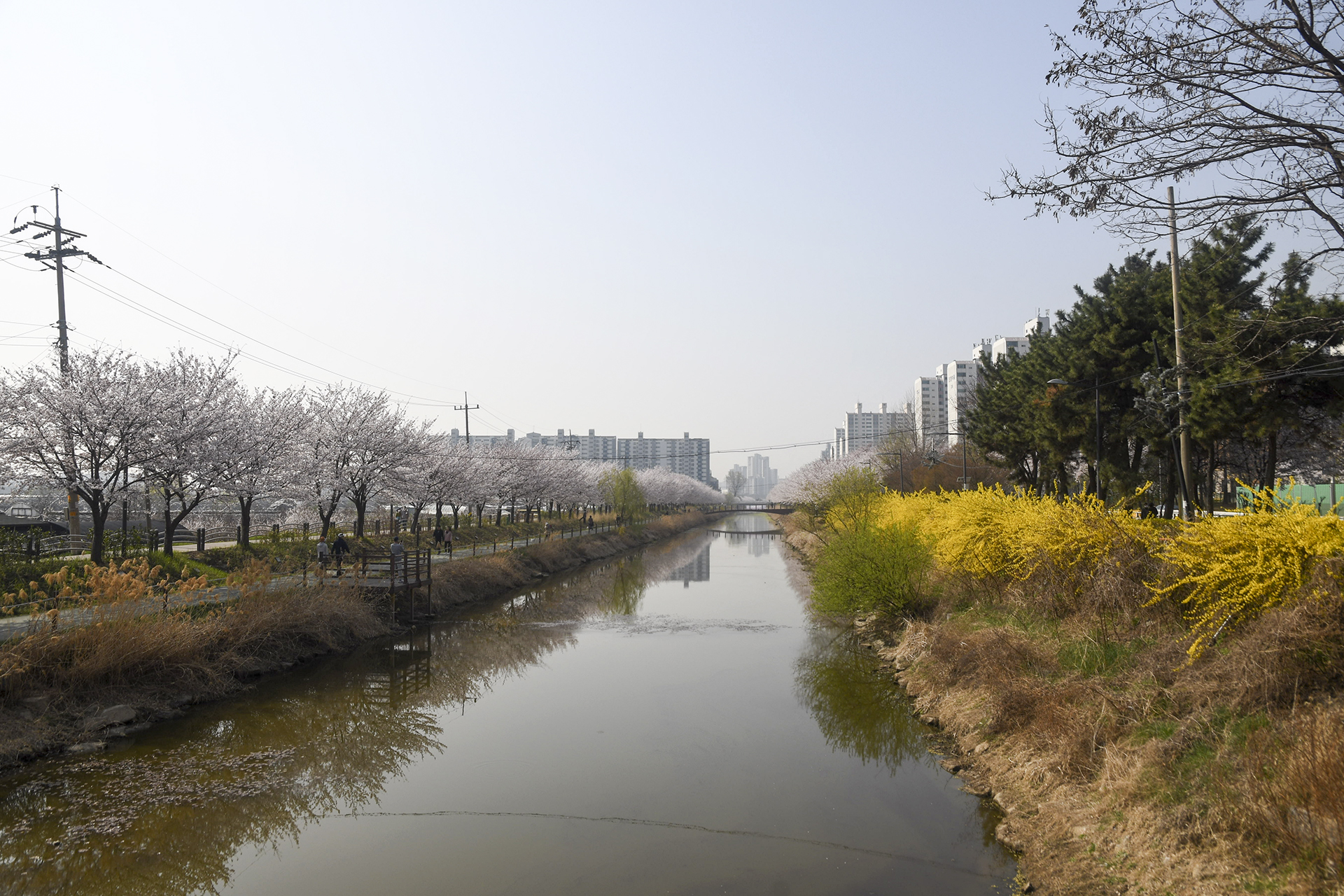 서부천 벚꽃길은 하천을 따라 직선으로 갔다가 건너편으로 다시 돌아오는 단순한 코스다.