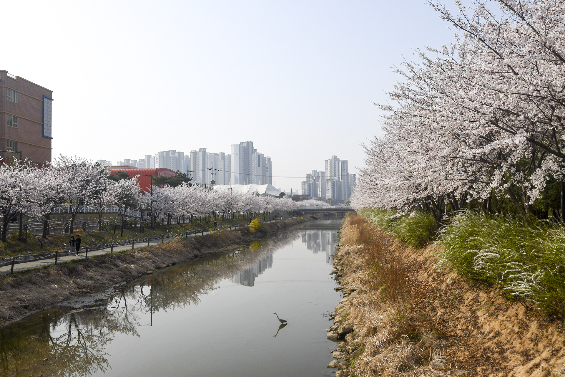 서부간선수로인 서부천에 벚꽃이 만개했다.