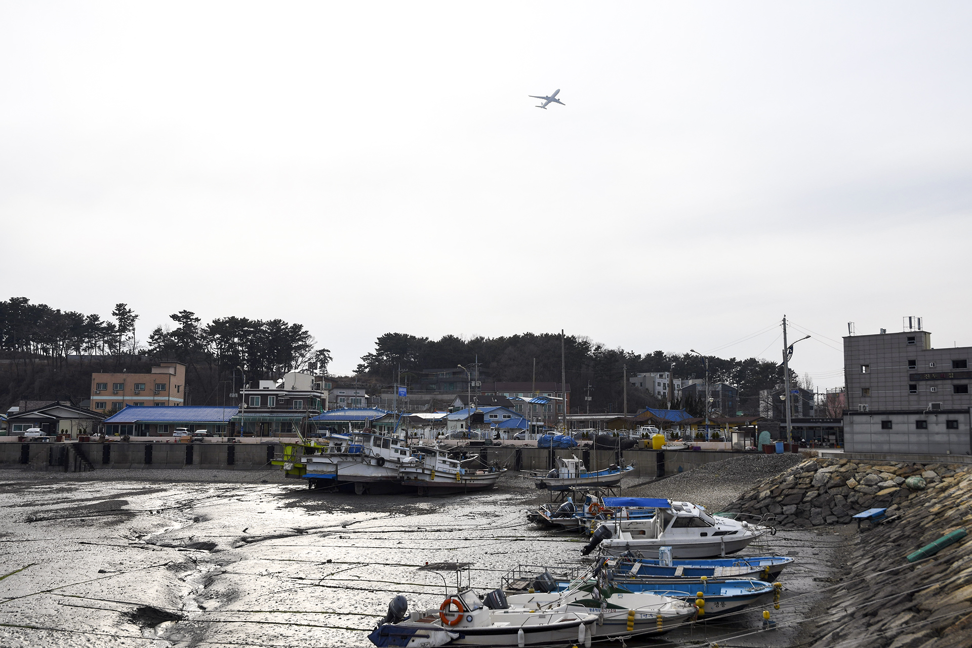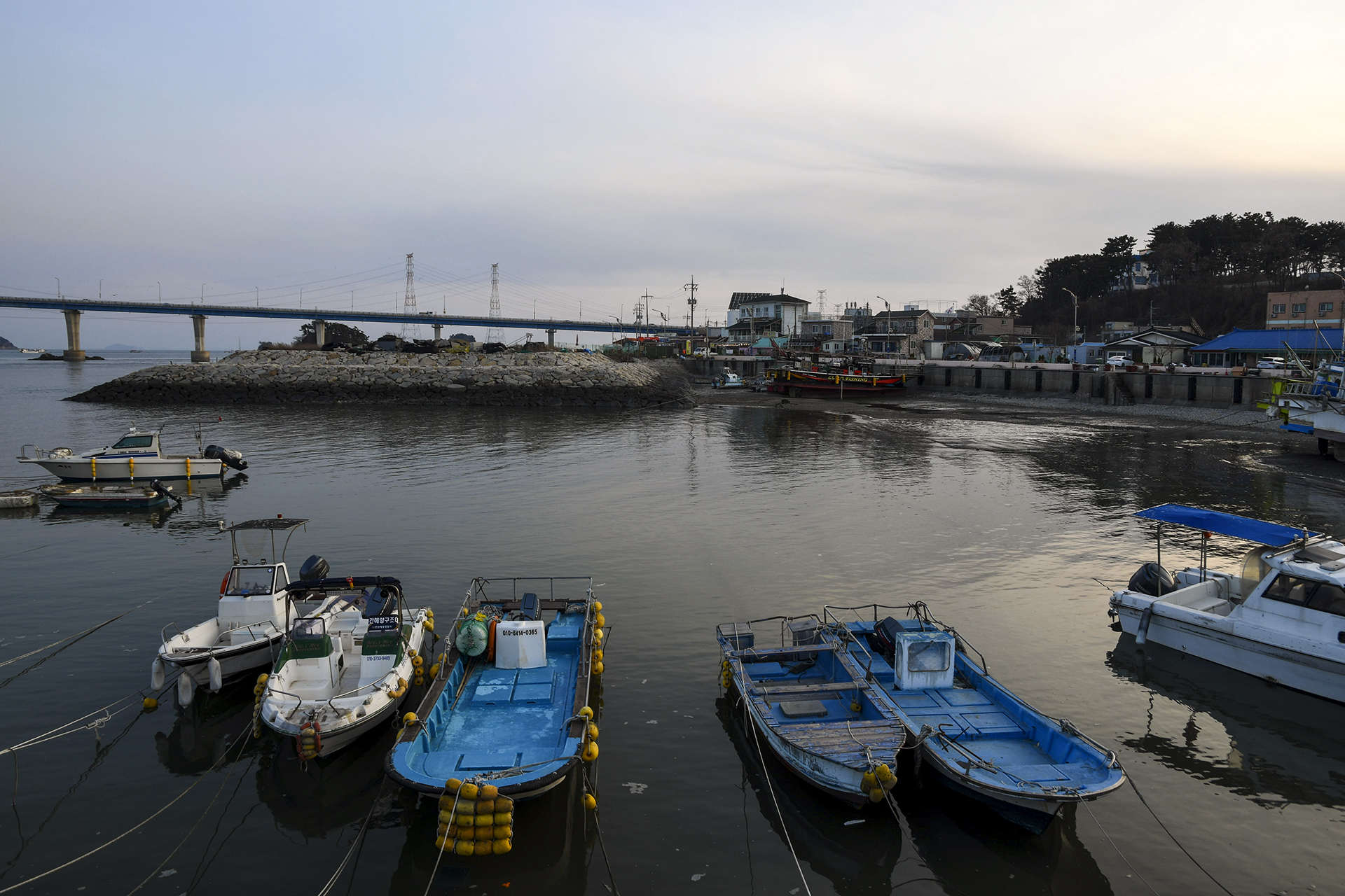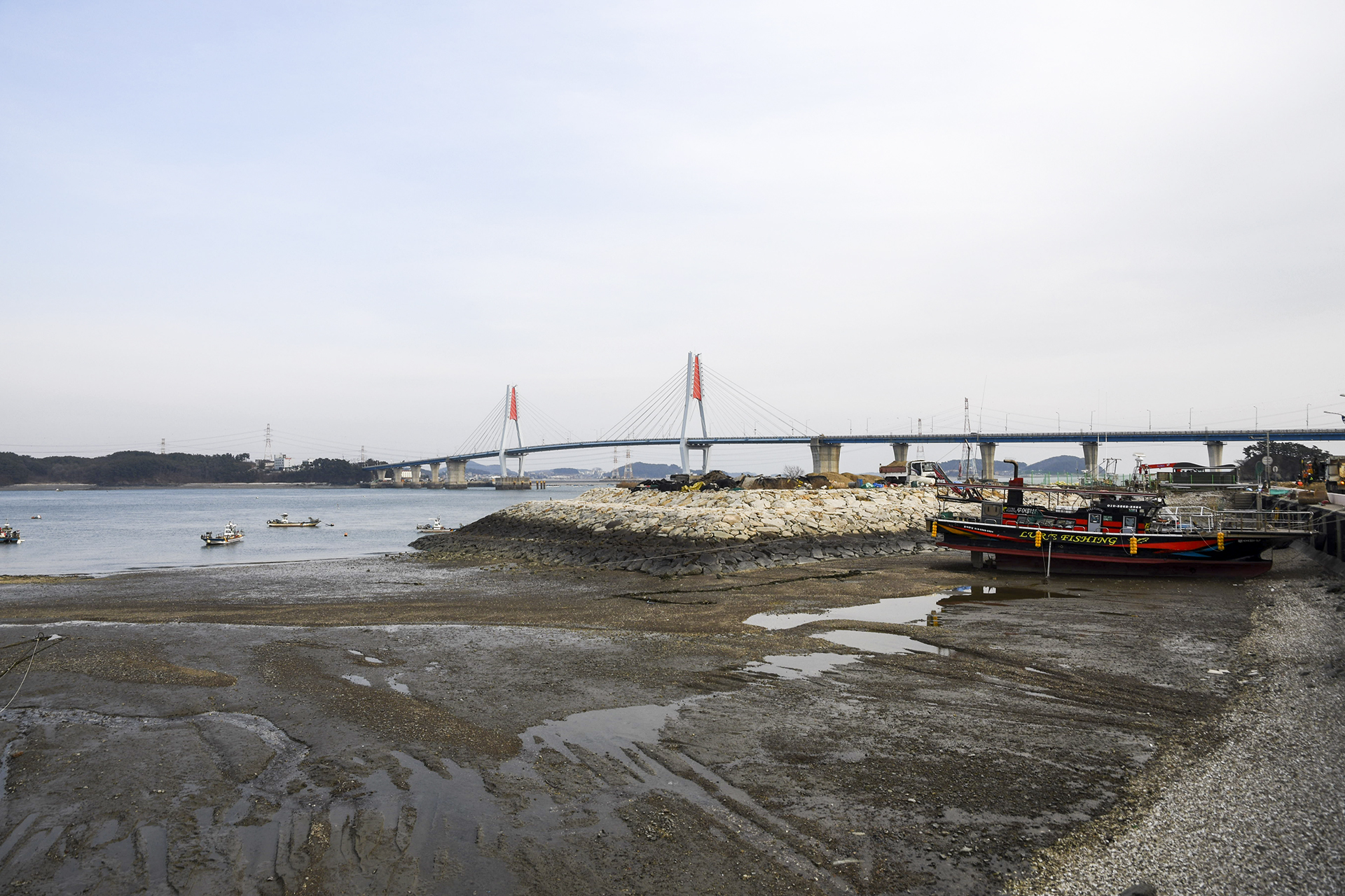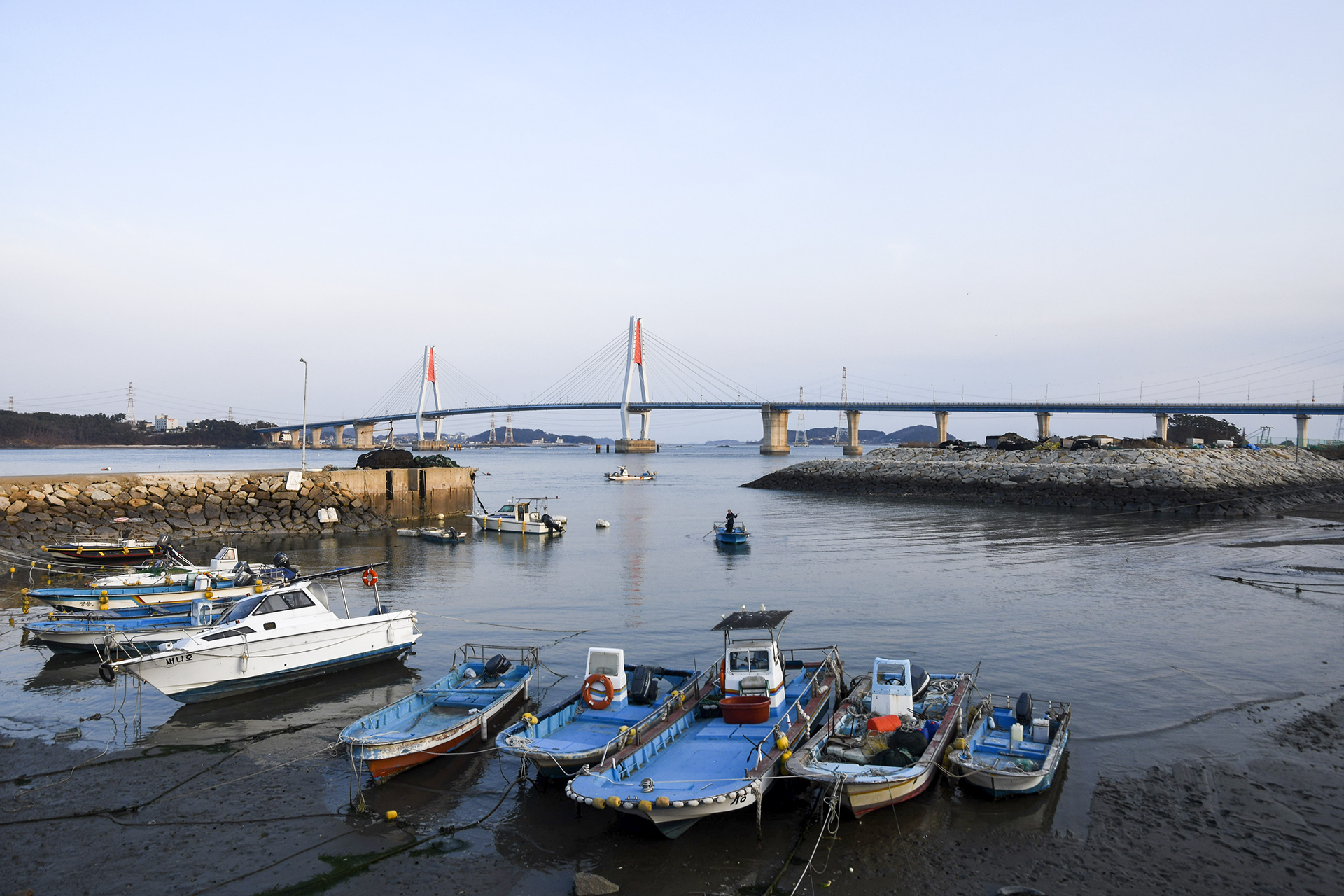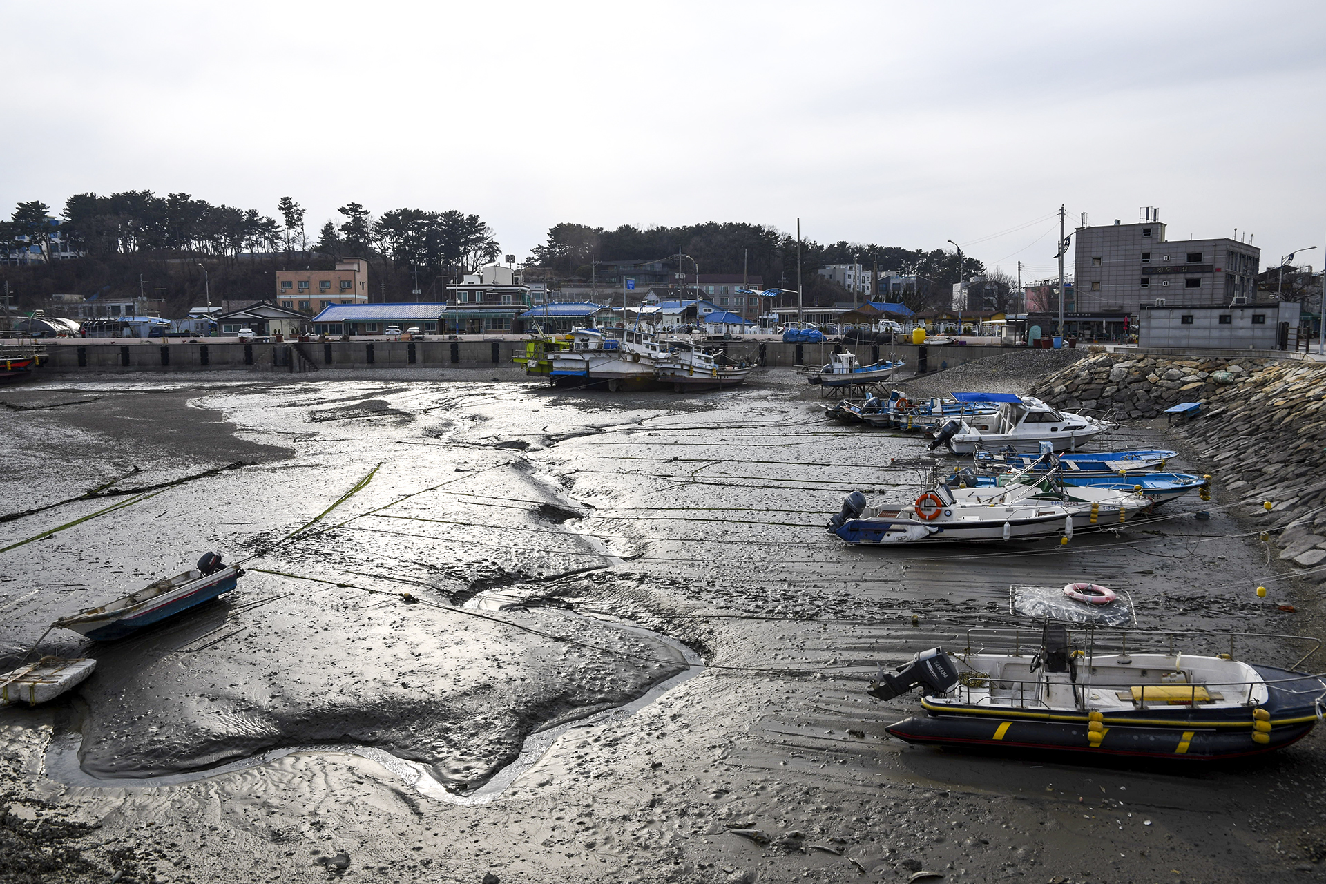 마을 앞 갯벌에 정박중인 배들