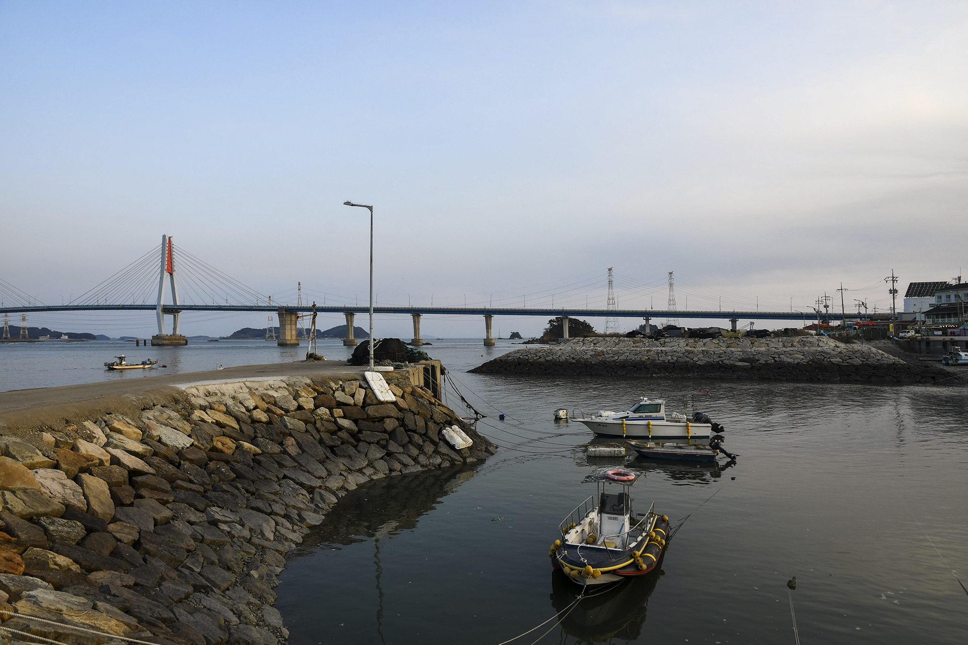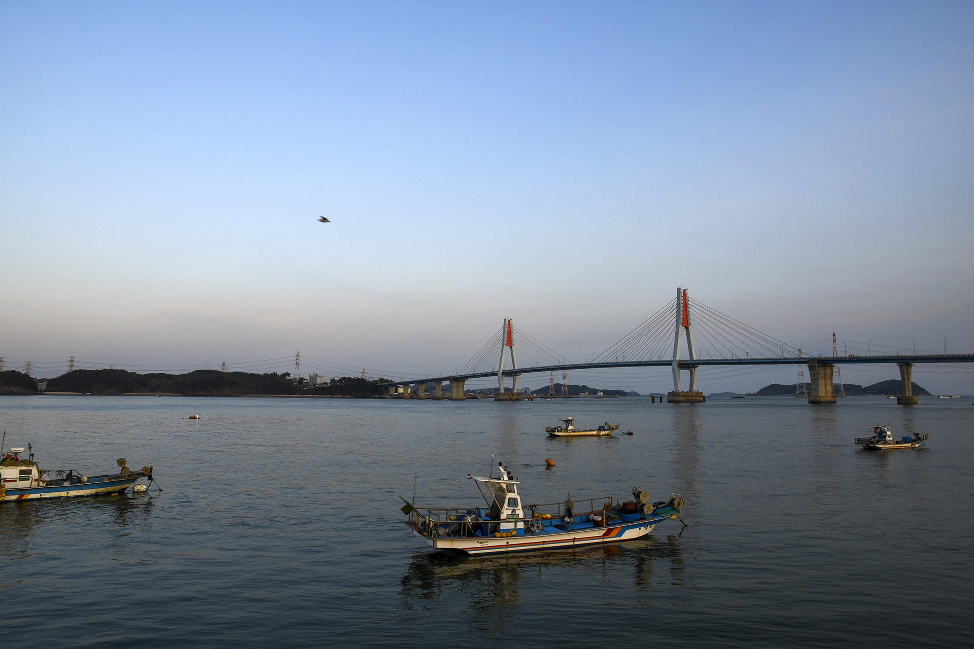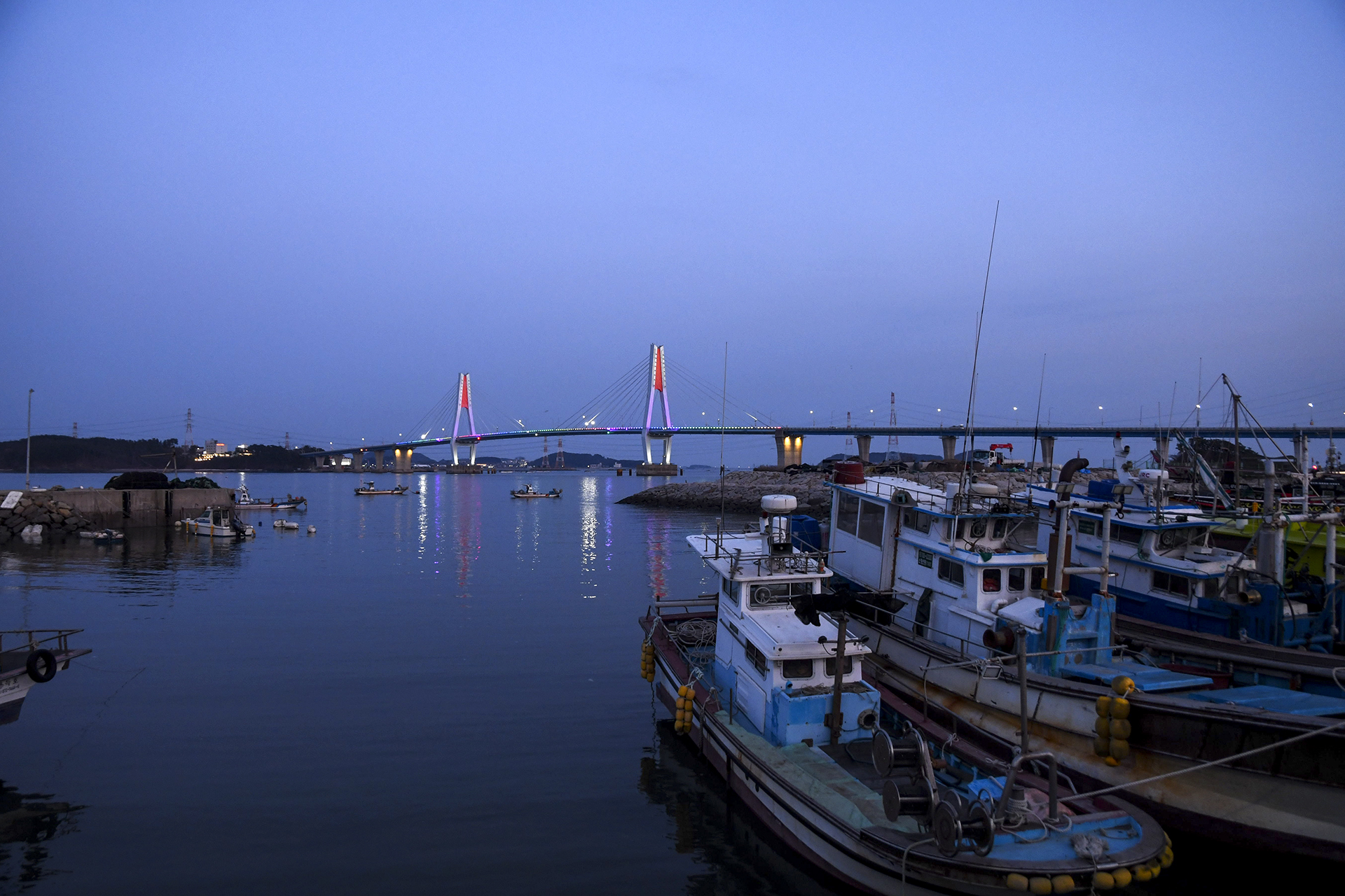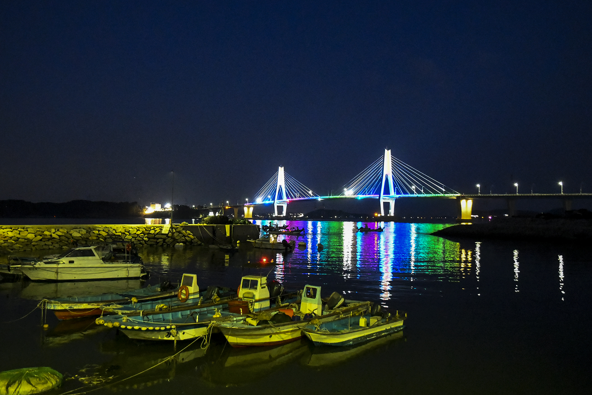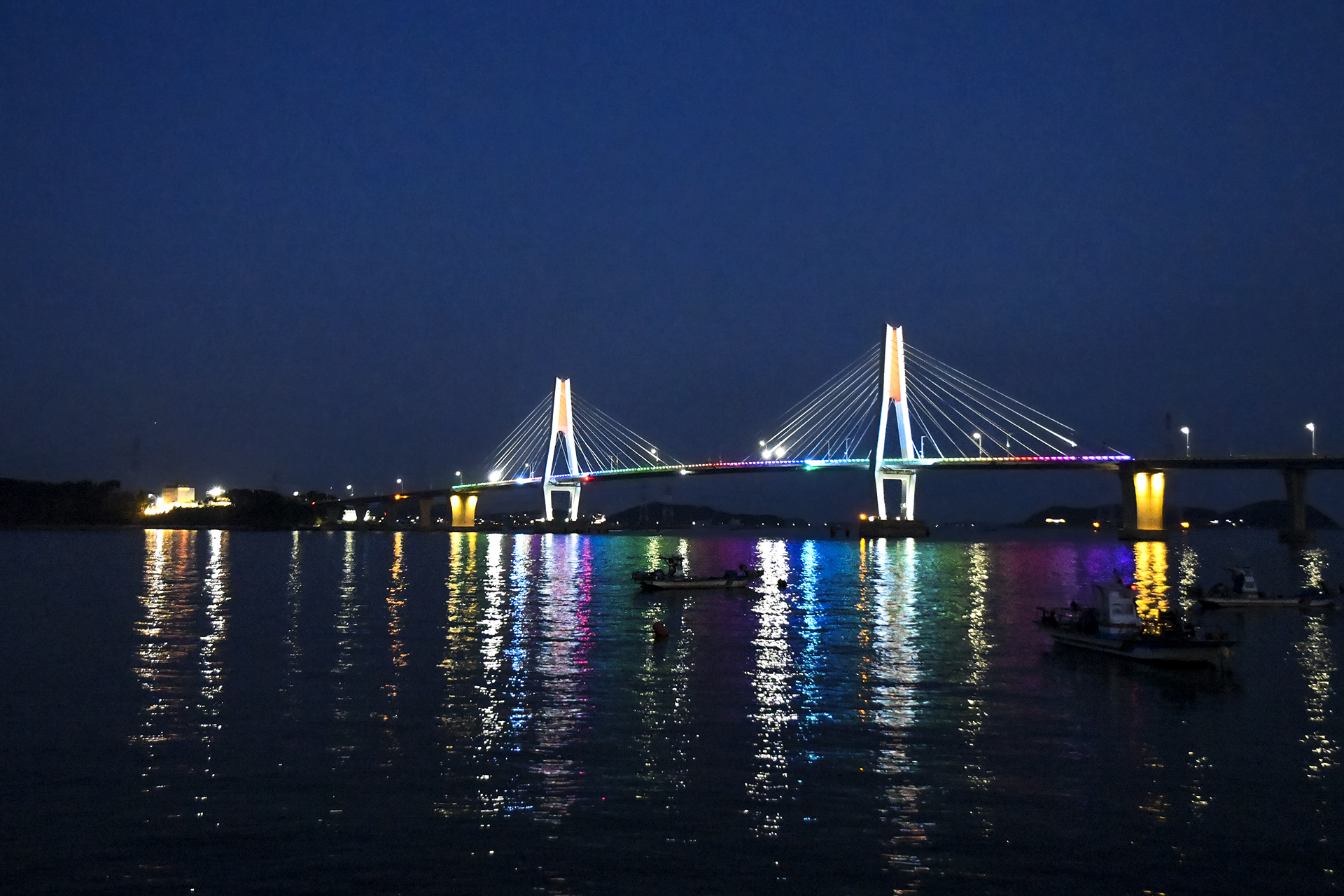 저녁 7시가 되니 영흥대교에 야간 조명이 들어왔다.