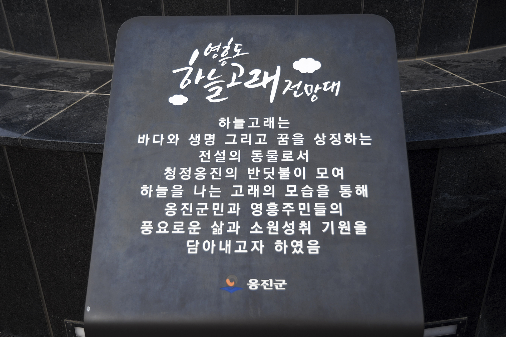 영흥 주민들의 풍요로운 삶과 소원성취의 기원을 담아내고자 하였다는 안내문처럼 하늘고래는 마을을 향해 헤엄치는듯 하다.