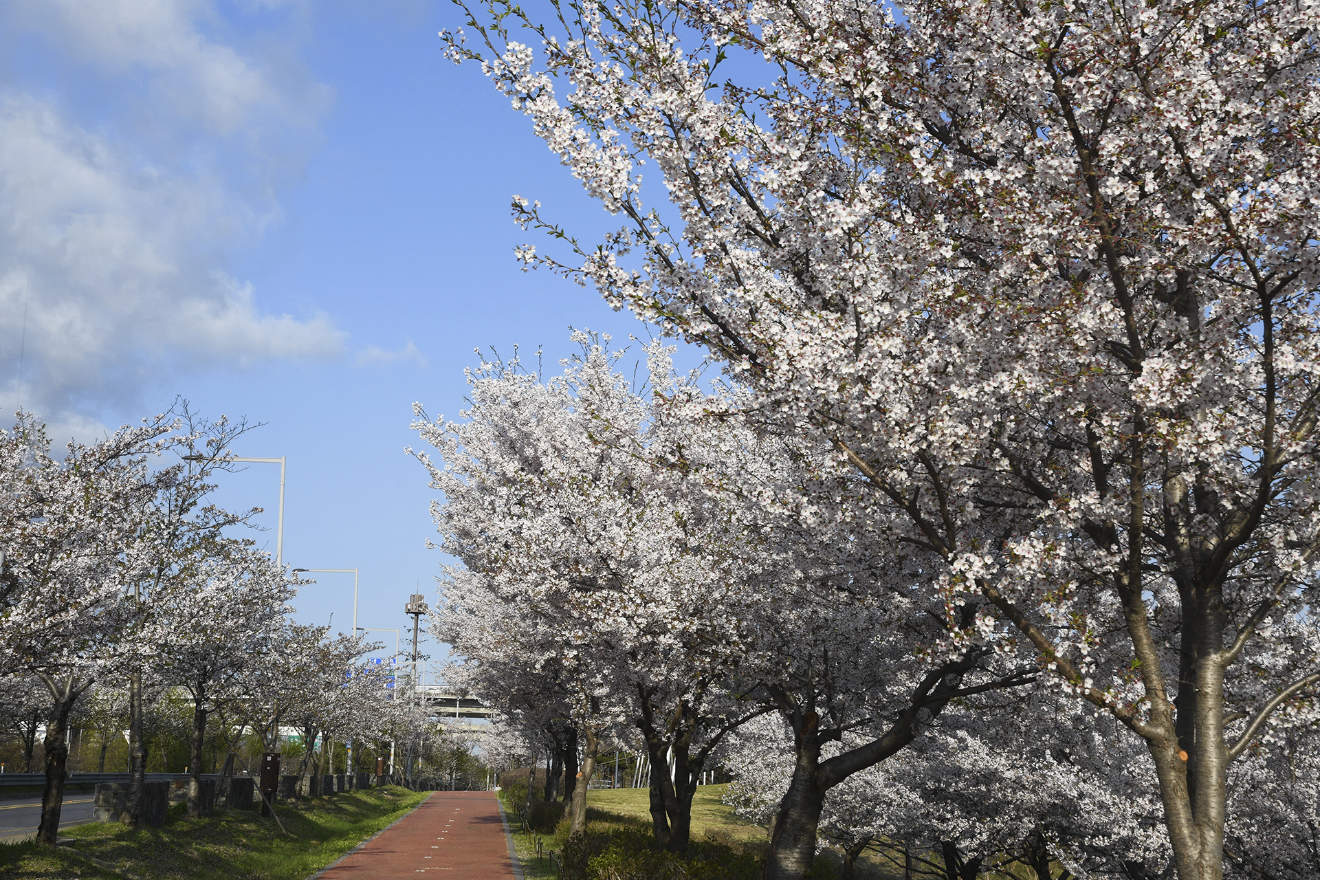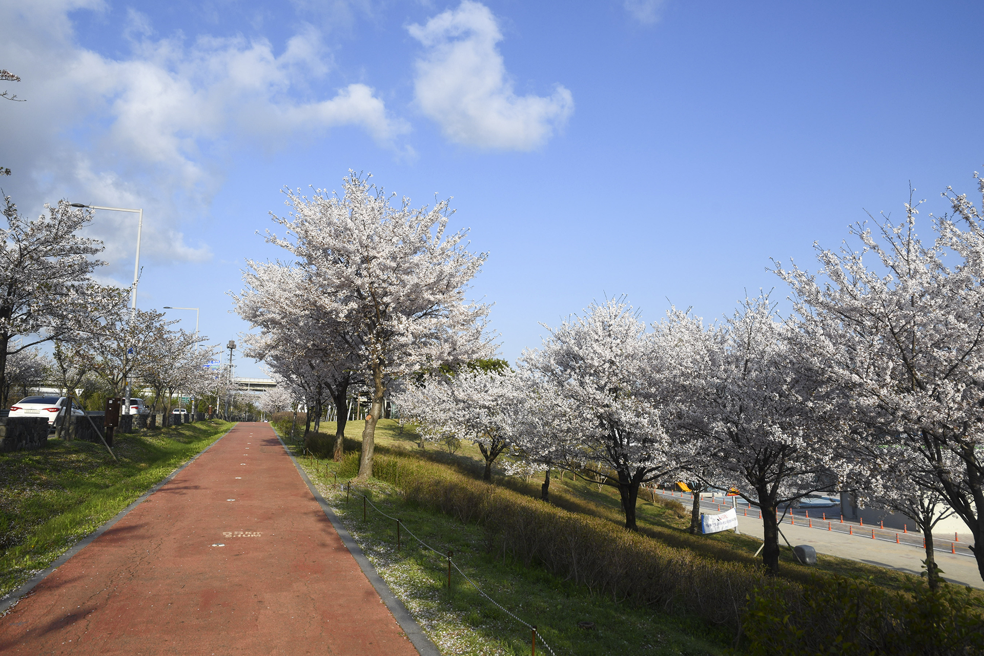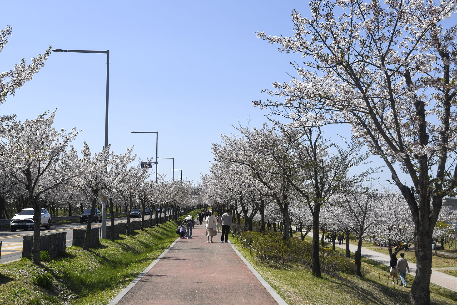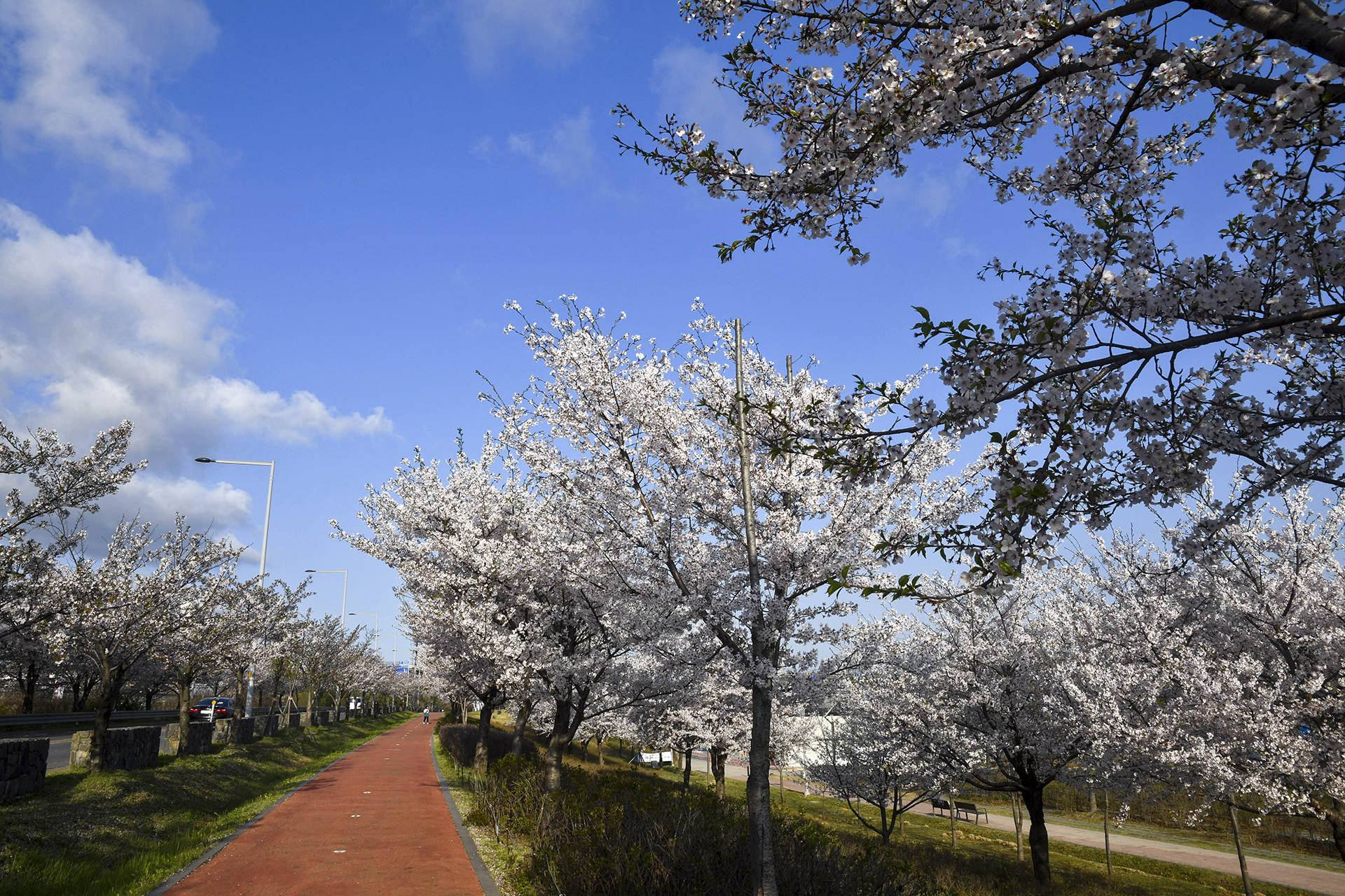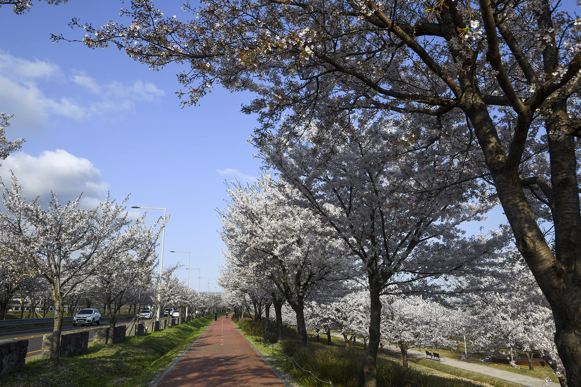 도로에 줄지어 서있는 벚꽃들은 멋진 드라이브를 선사해 준다.