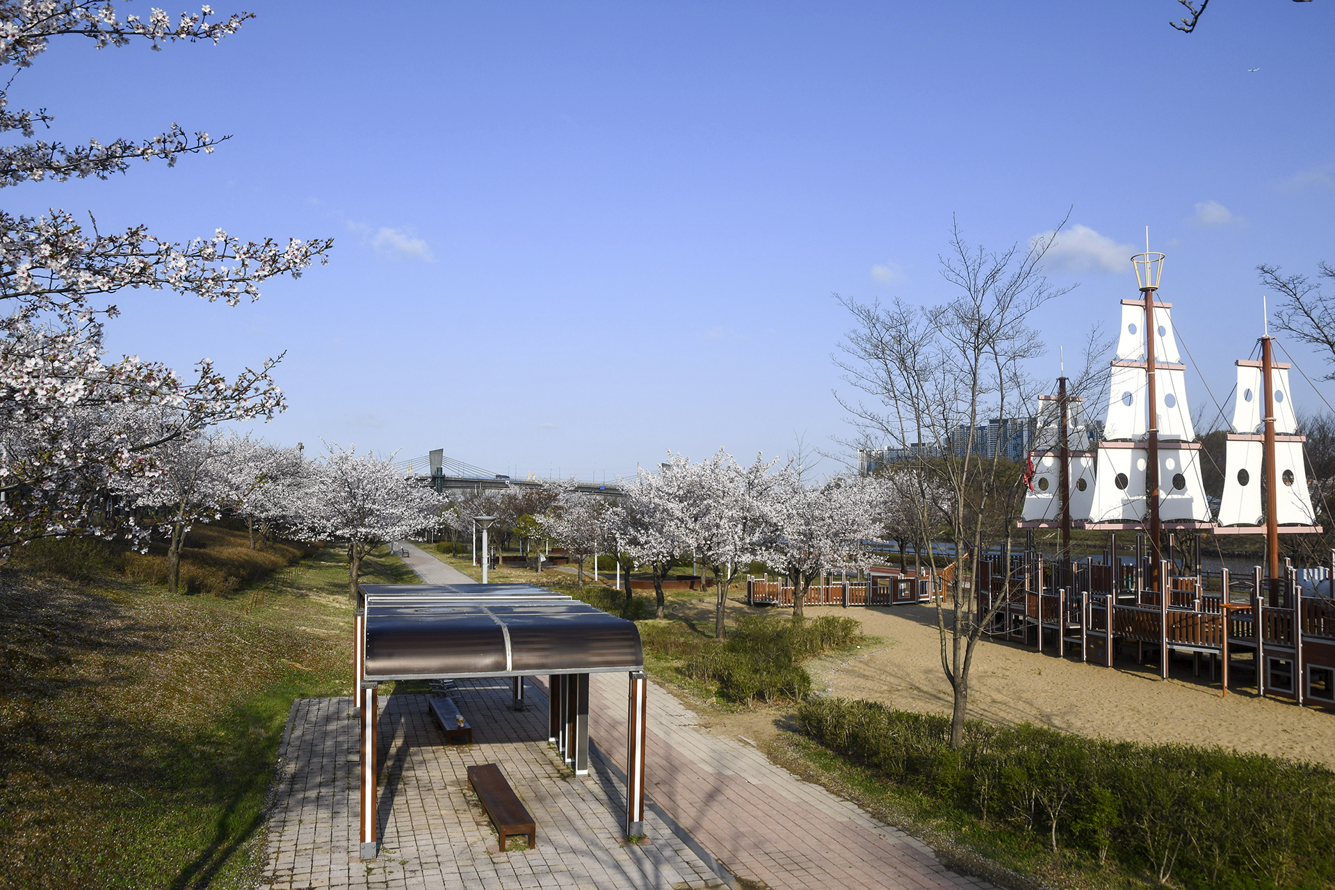 시천나루 벚꽃은 아라벚꽃길의 일부 구간으로 다른 구간보다는 꽃송이가 풍성해 벚꽃 즐기기에 손색이 없다.