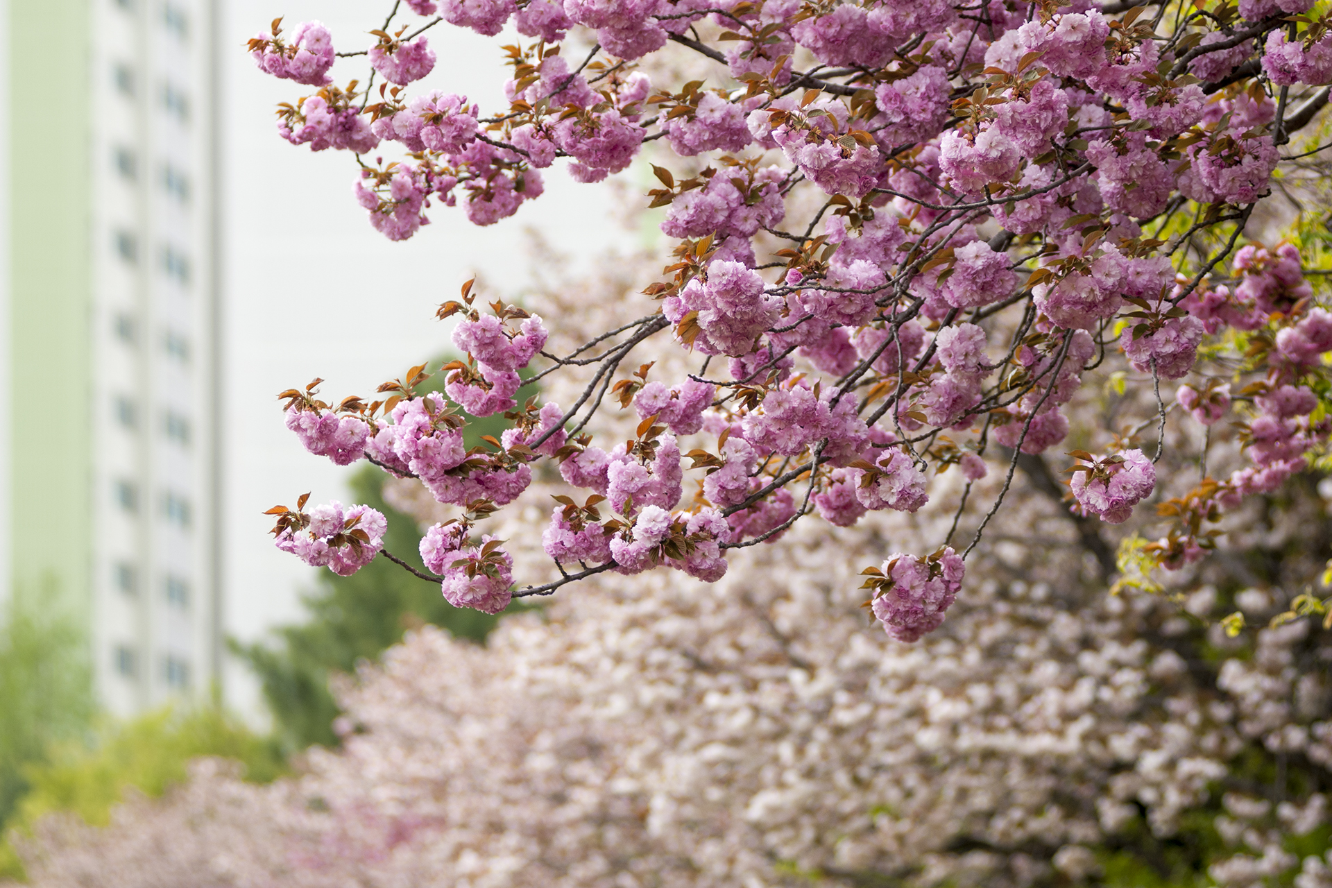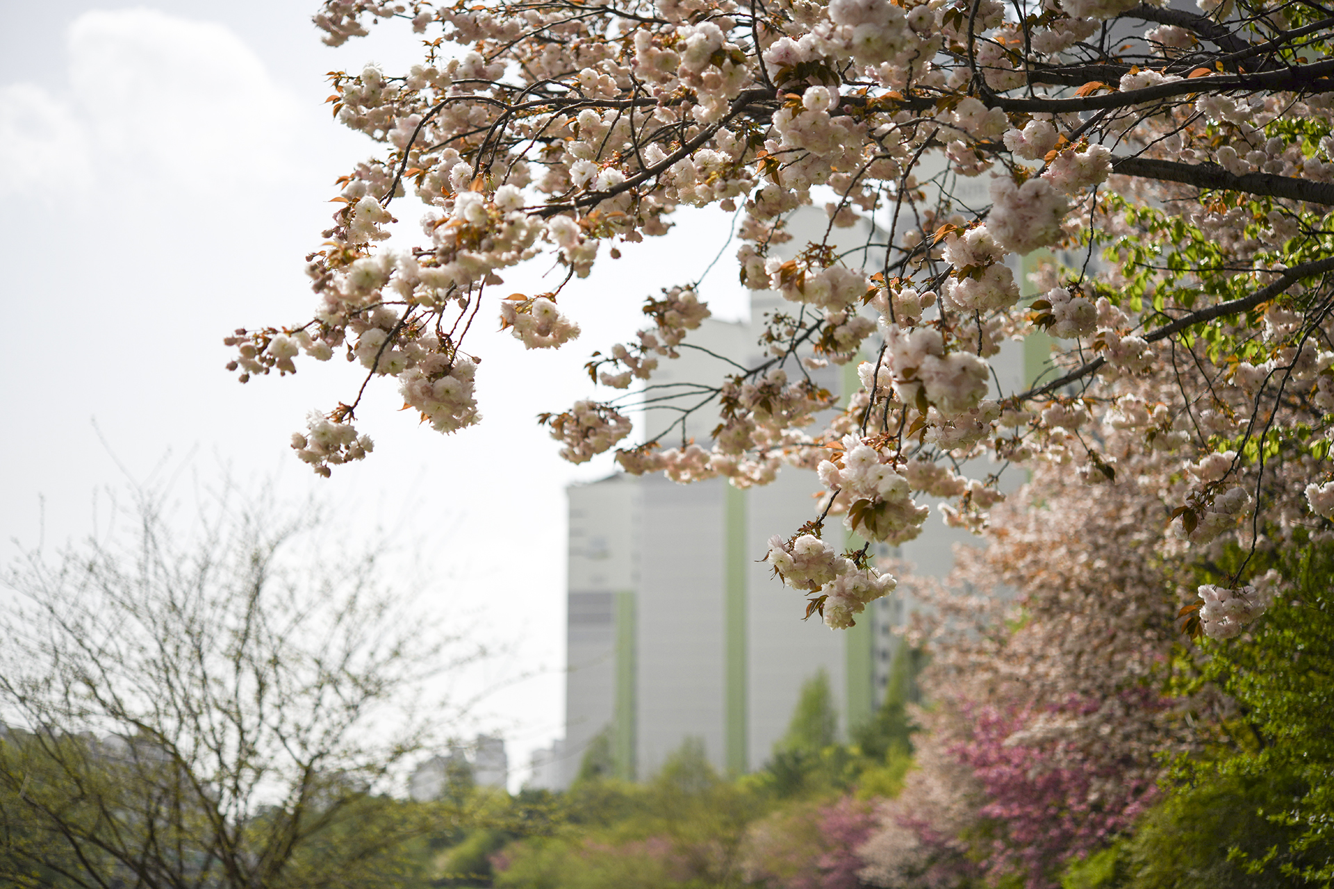 요즘 부평 굴포천에 겹벚꽃이 한창이다.