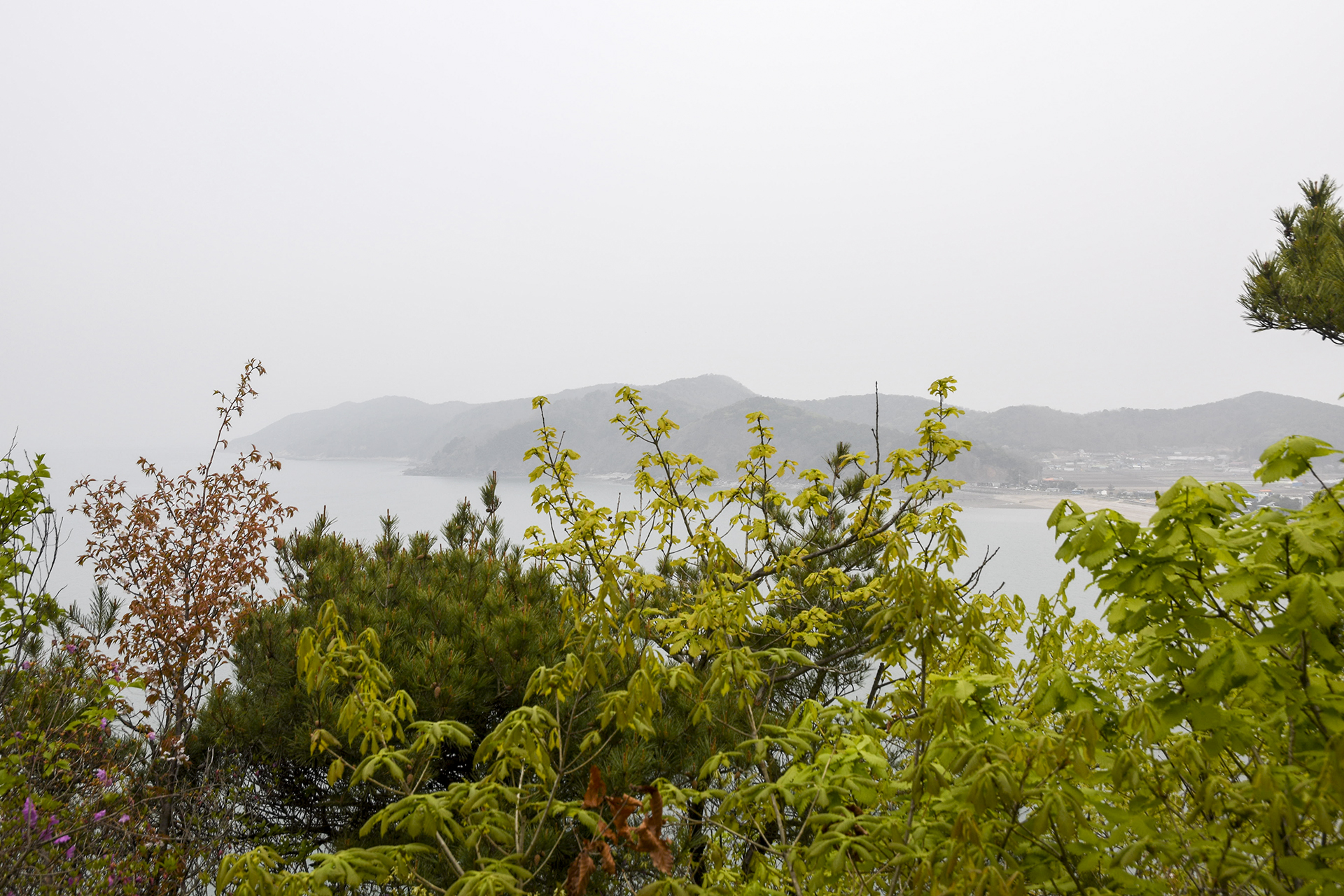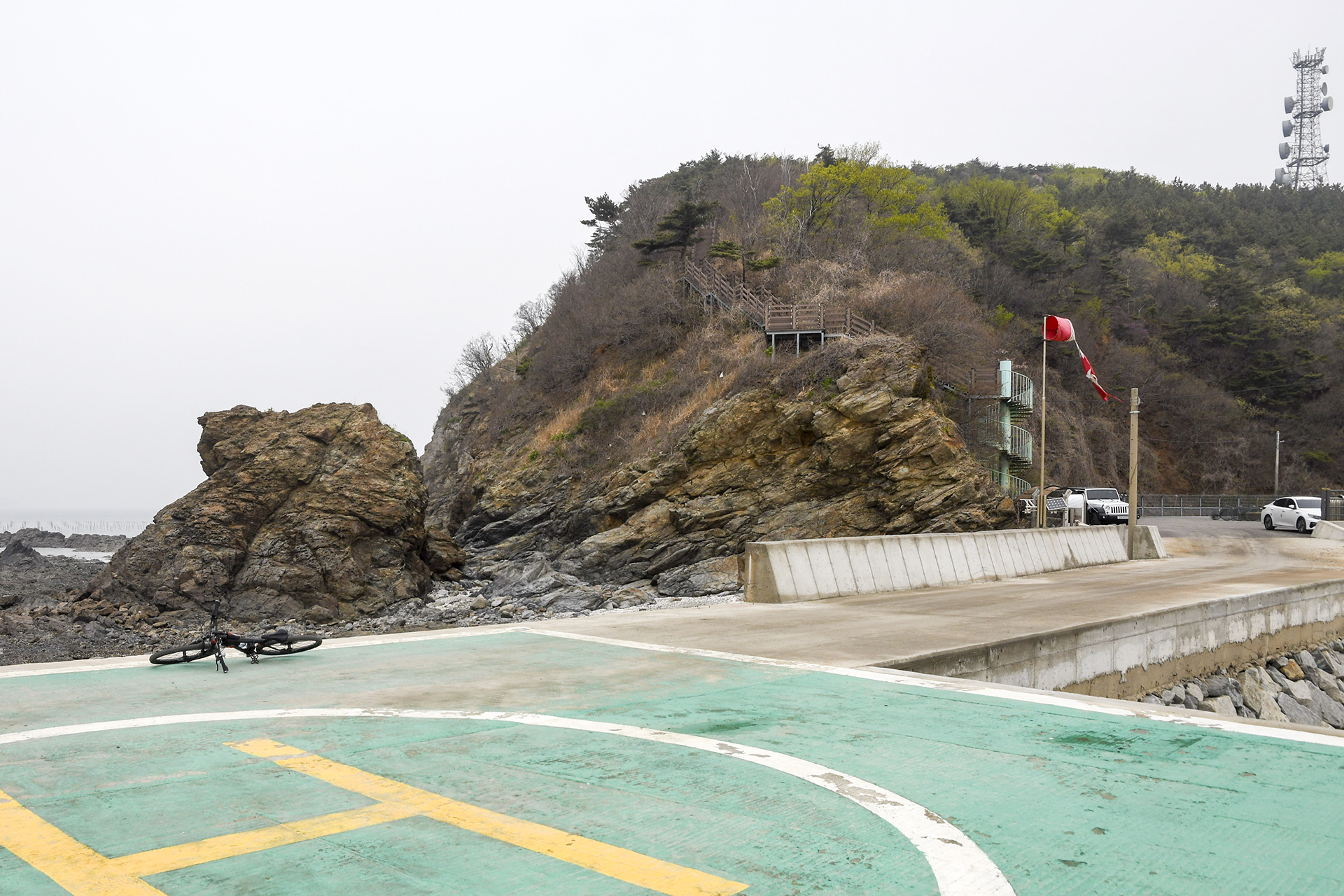 나무가 우거져 해안 아래쪽으로는 볼수가 없고, 우측 끝에는 건어장해변이 보인다.