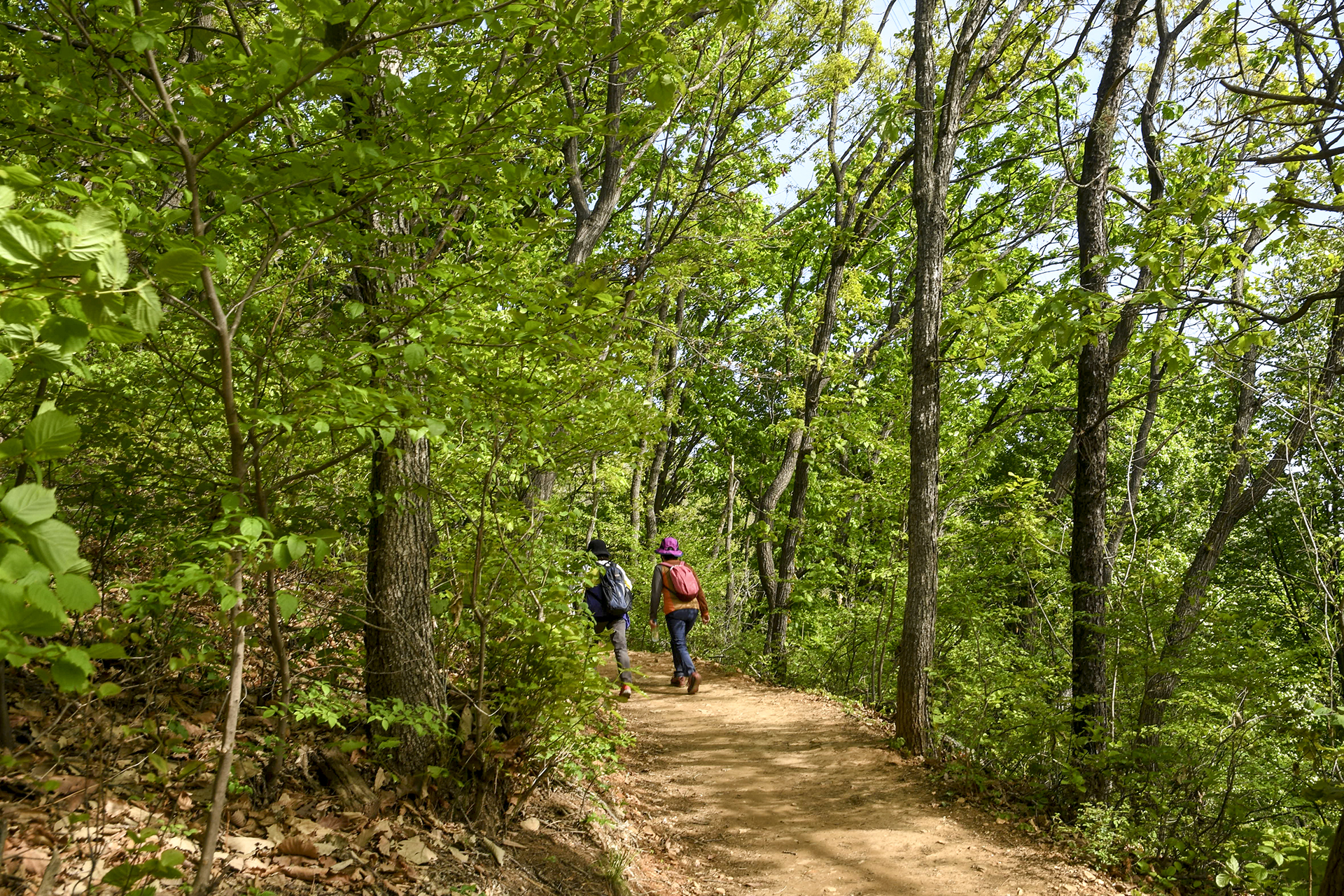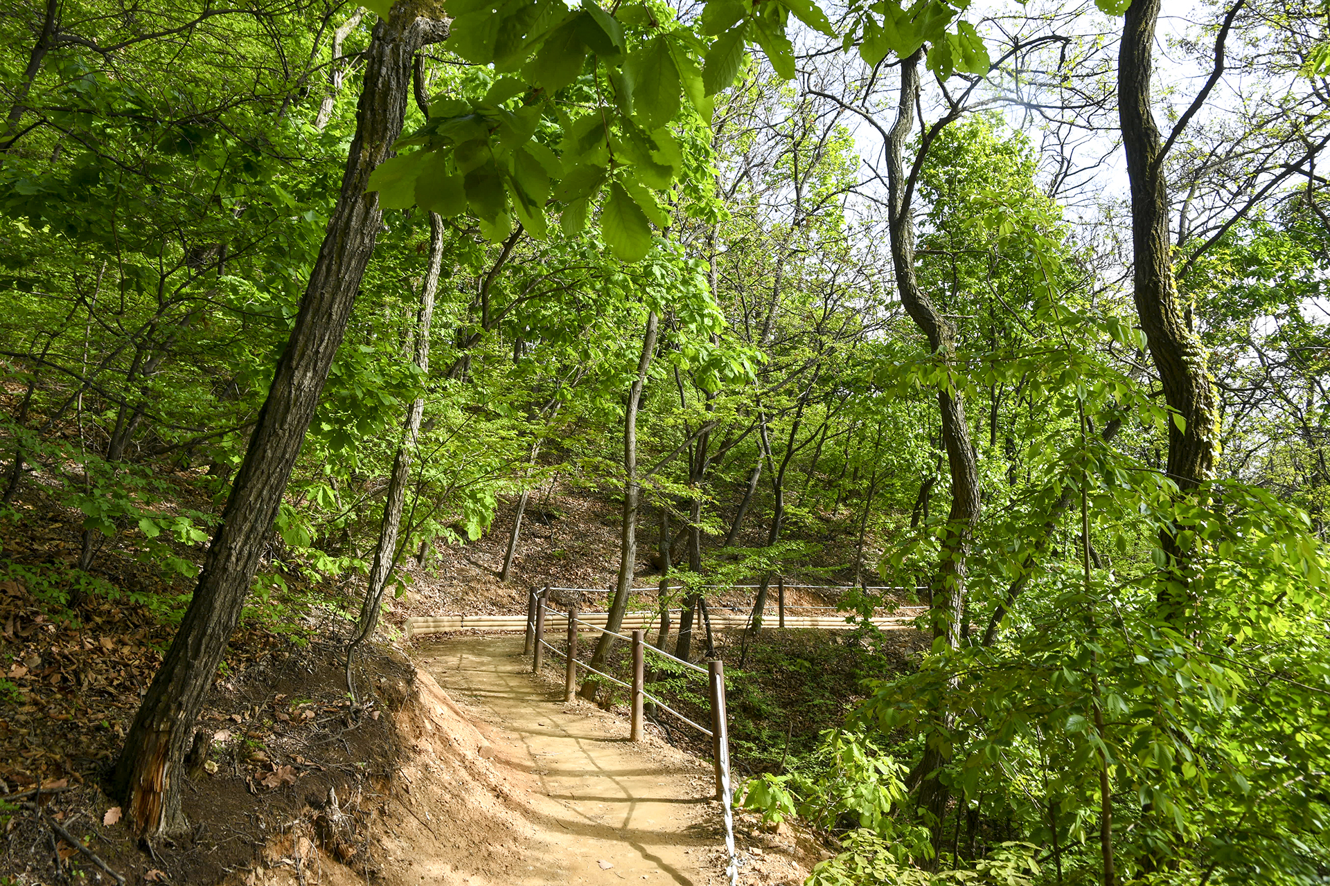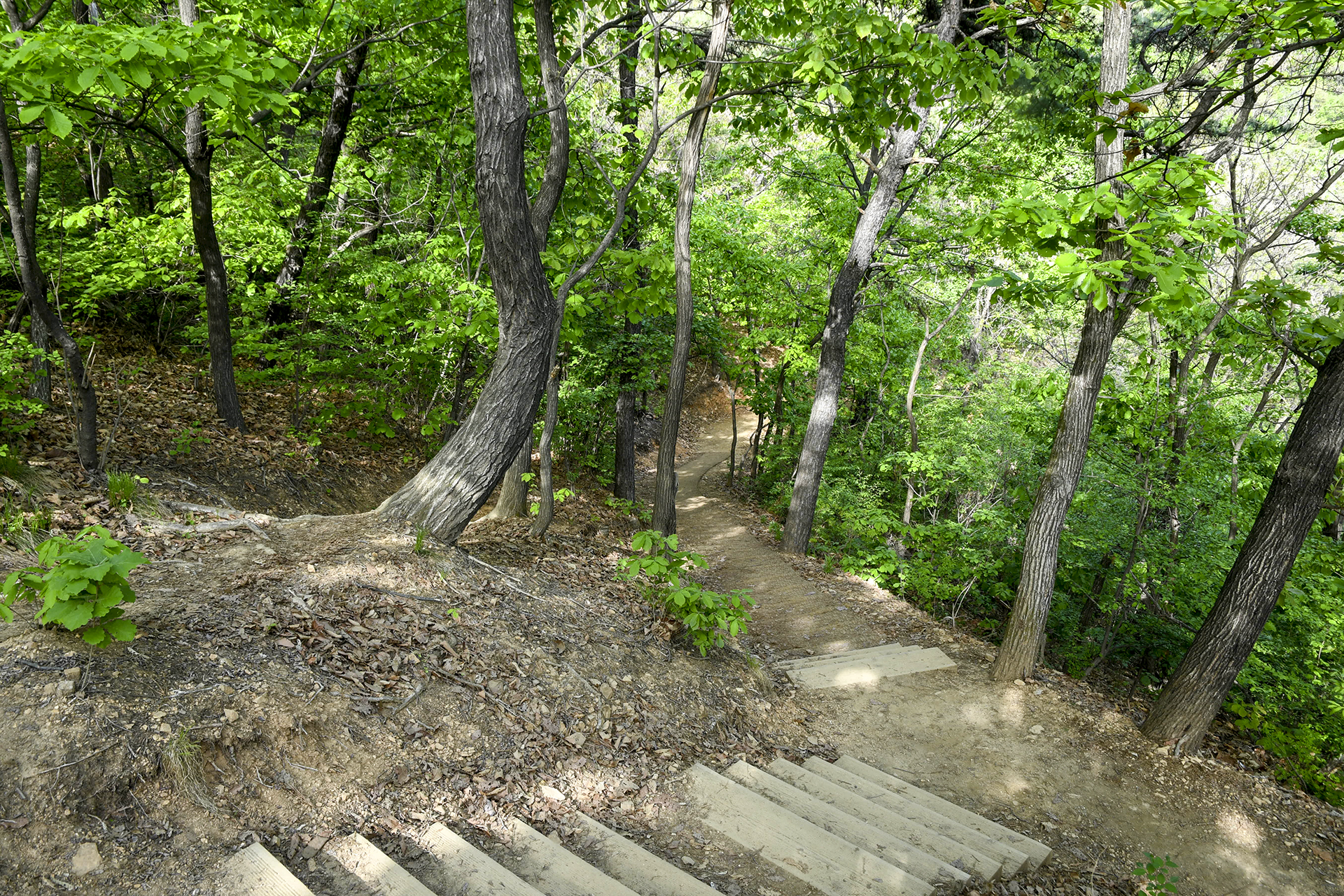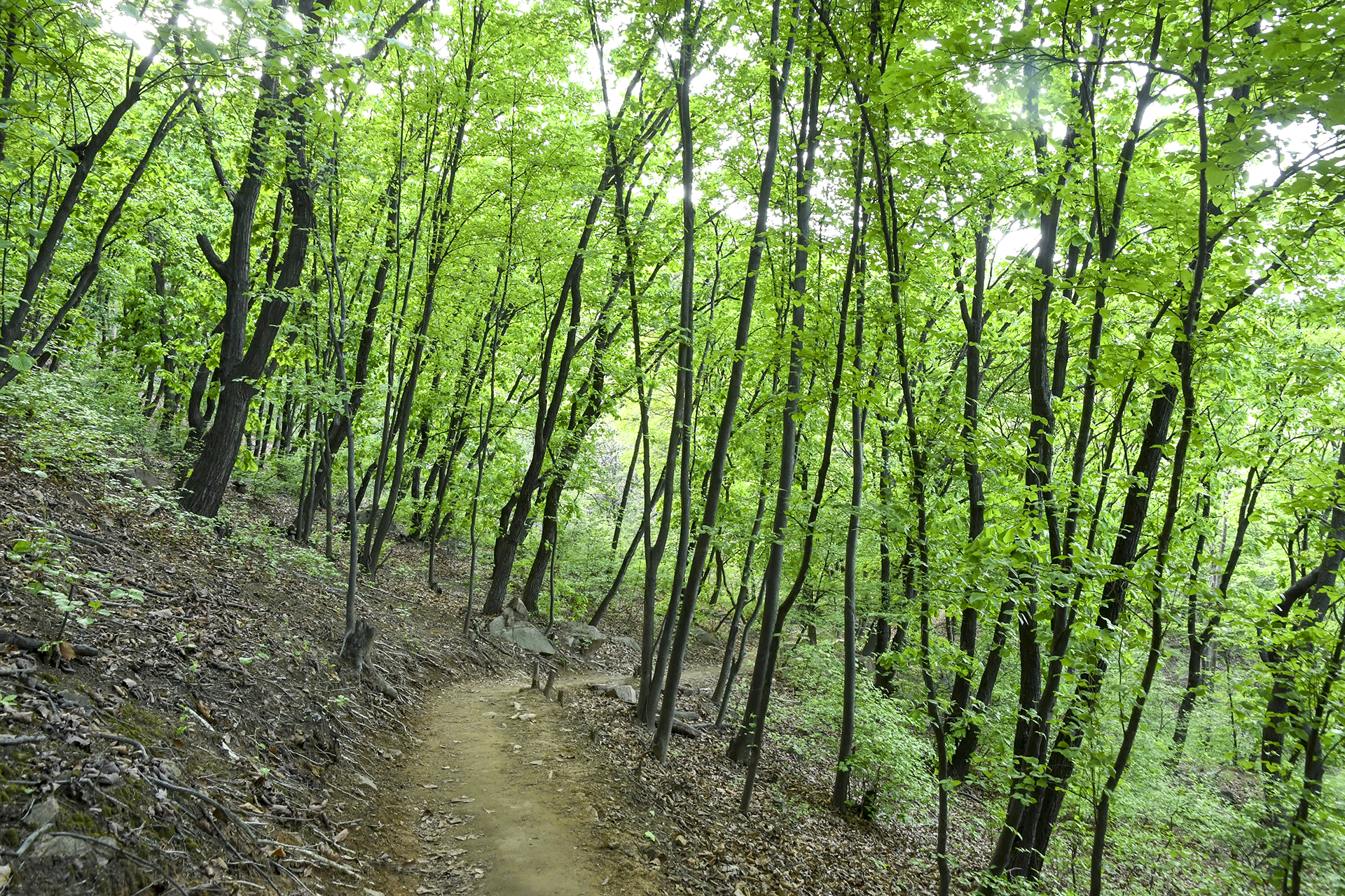 좁은 길이지만 숲을 걷는 기분이 좋다.