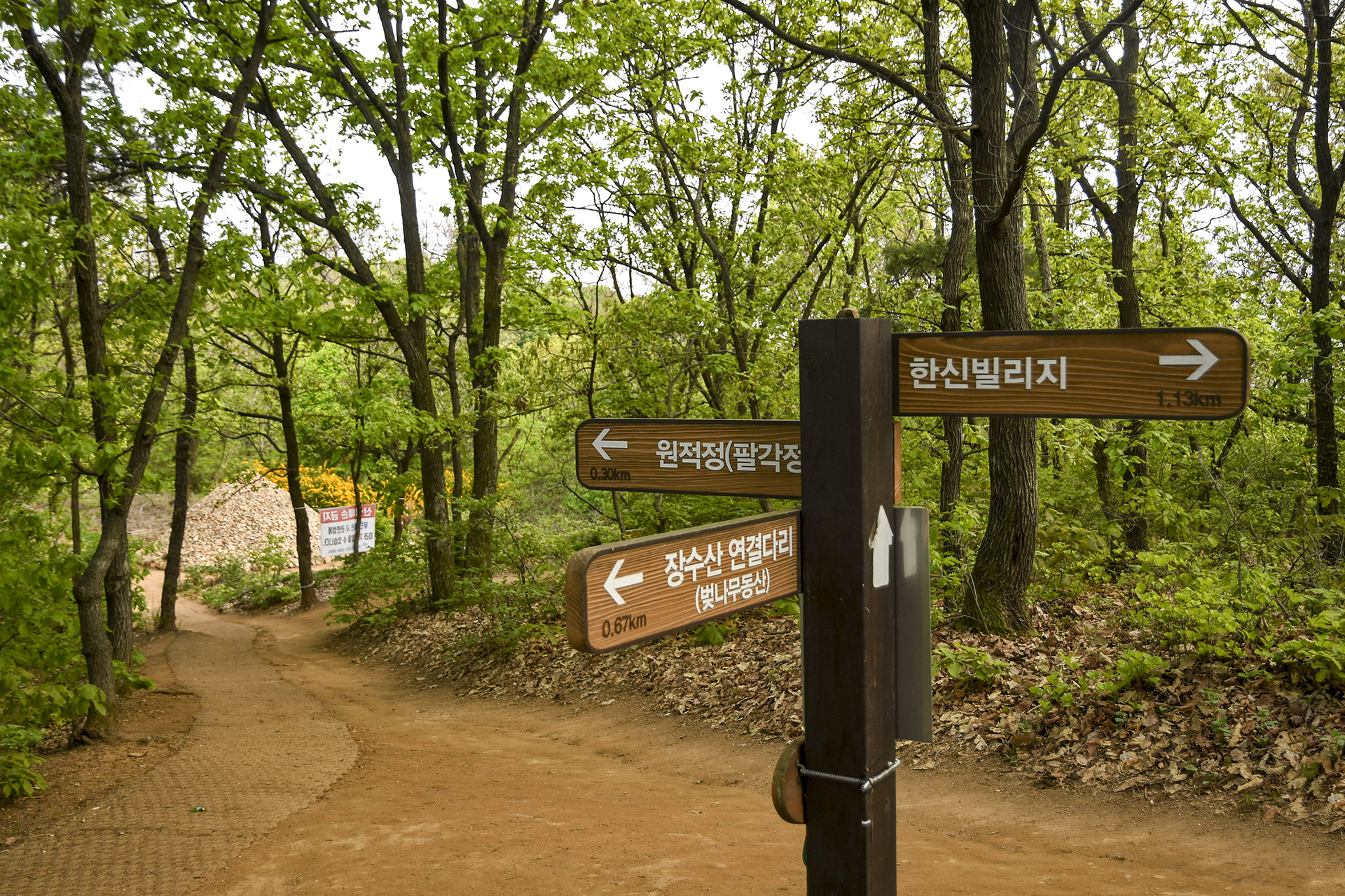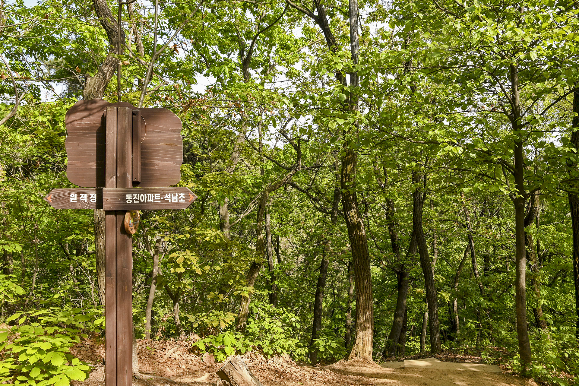 이정표 방향의 길과 크로스 되는 정면 방향으로 계속 걸으면 된다.