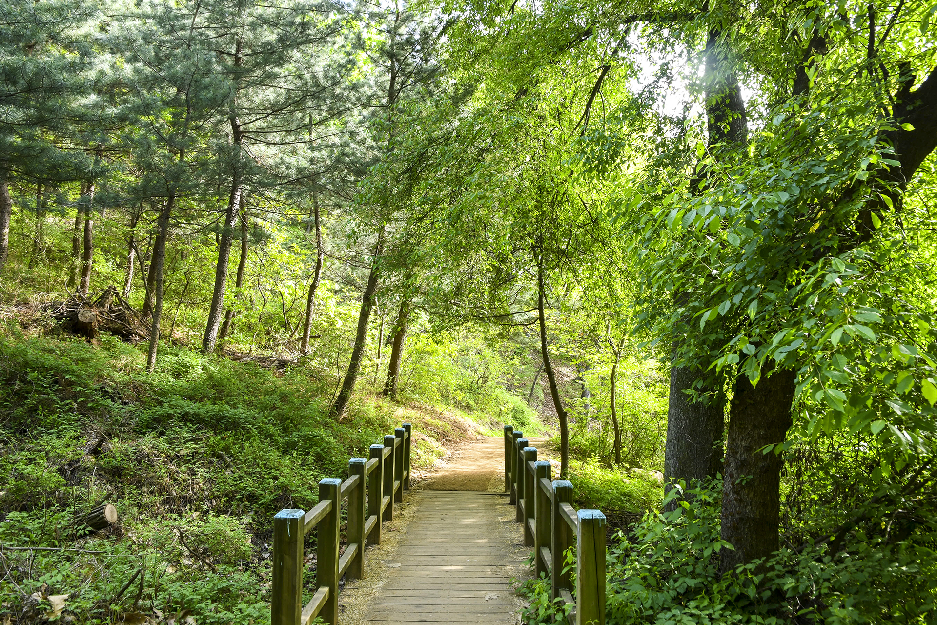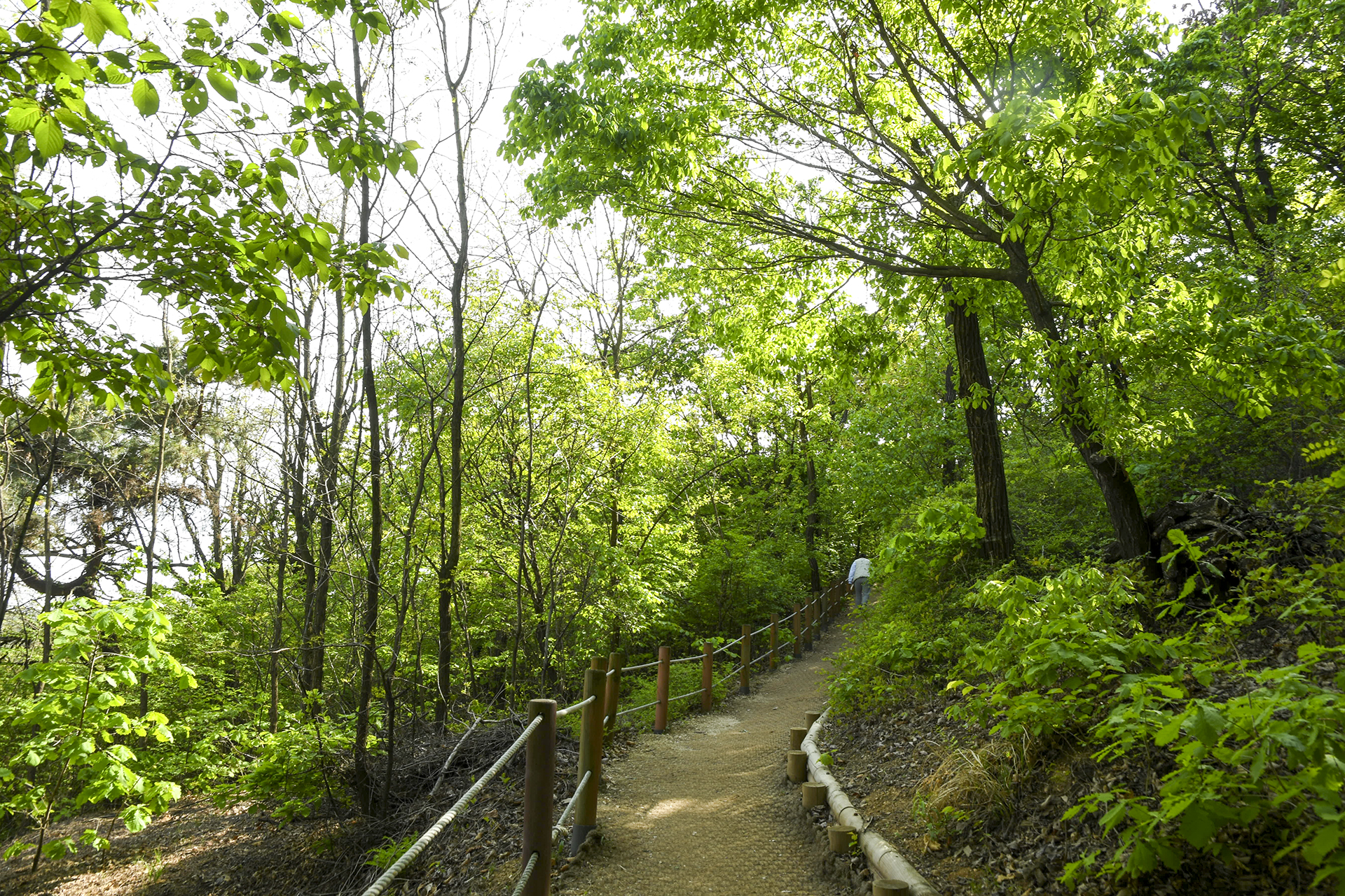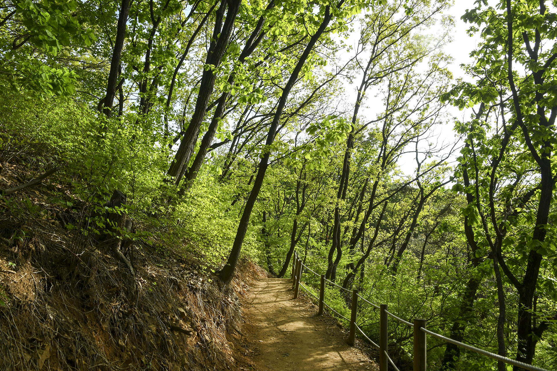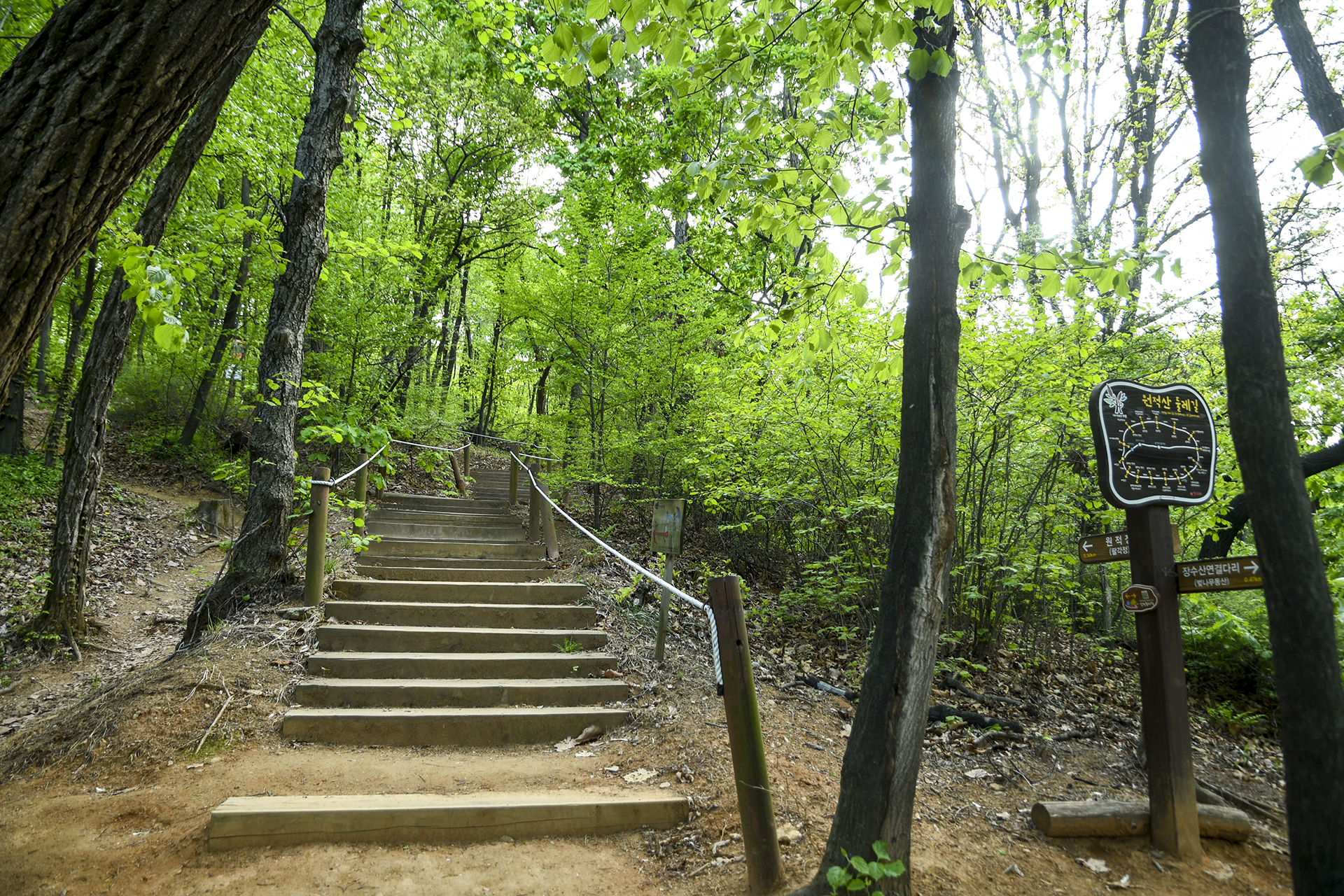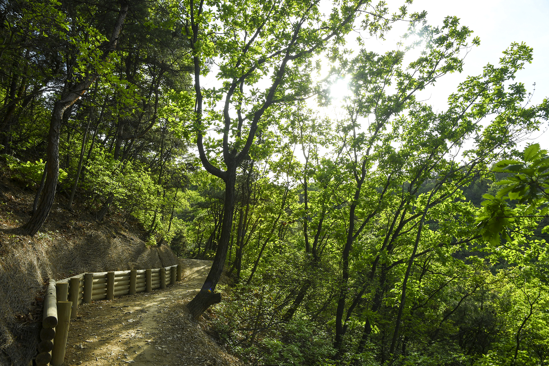 원적산 둘레길은 고도차가 거의 없는 숲길이기 때문에 누구나 쉽게 걸을 수 있다.
