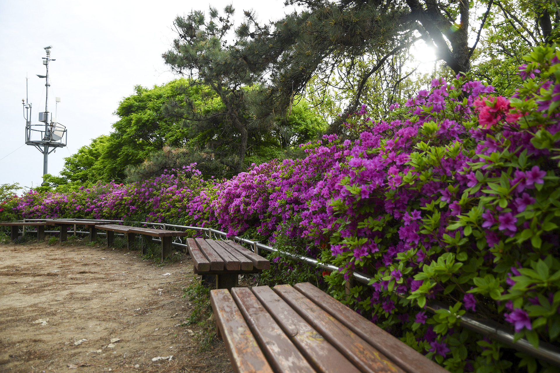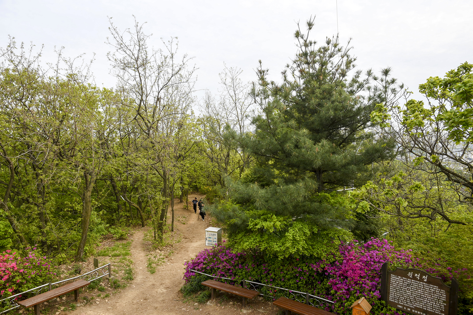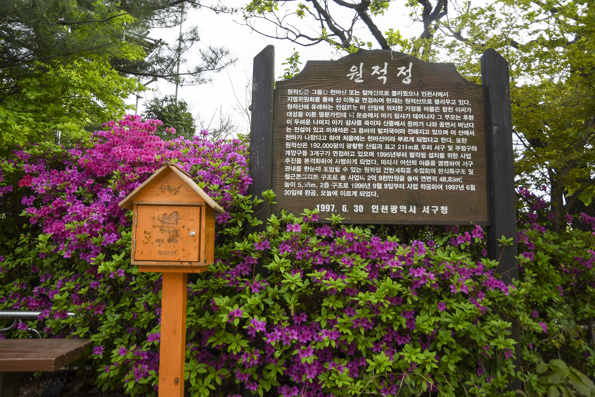철쭉이 사방으로 울타리 역할을 하고 있는 원적정은 인천둘레길 3코스 인증장소이기도 하다.